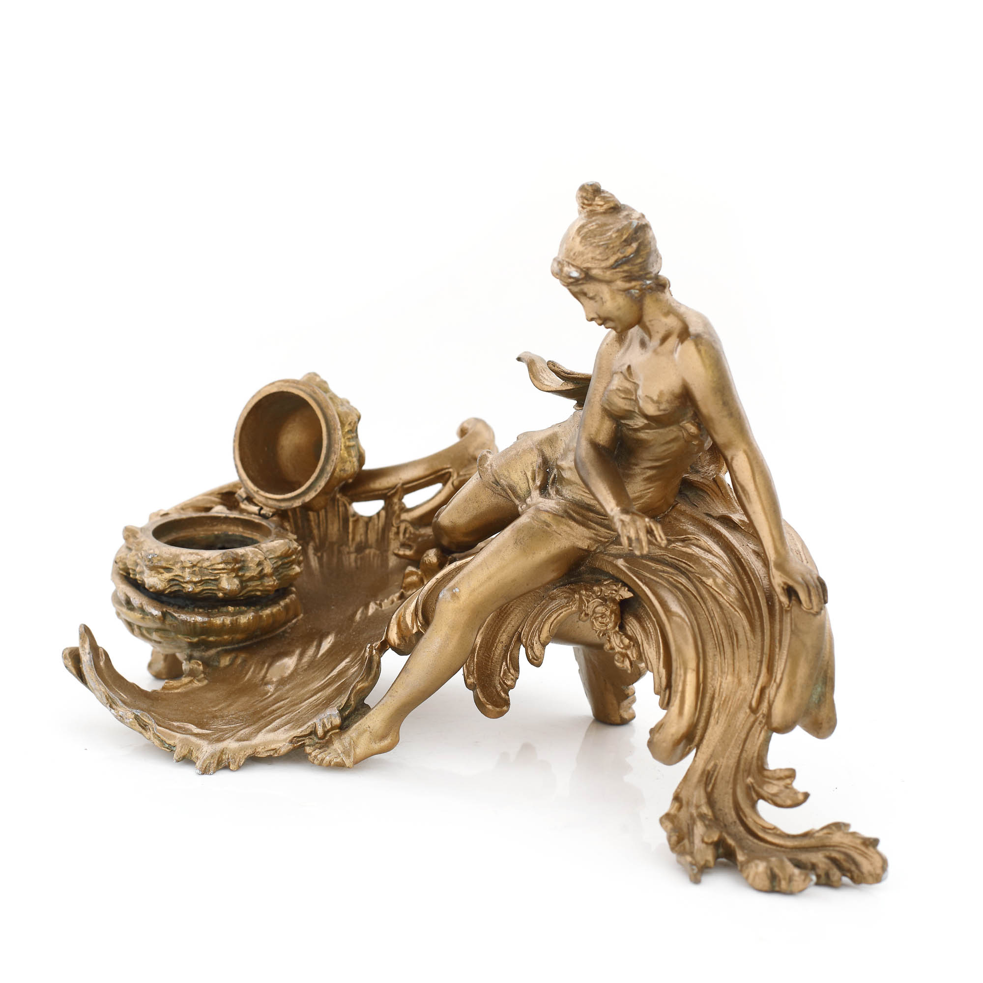 7. "Nimfă la malul mării" - encrieră din bronz doré, autor Charles Georges Ferville-Suan, cca. 1900, piesă de colecție