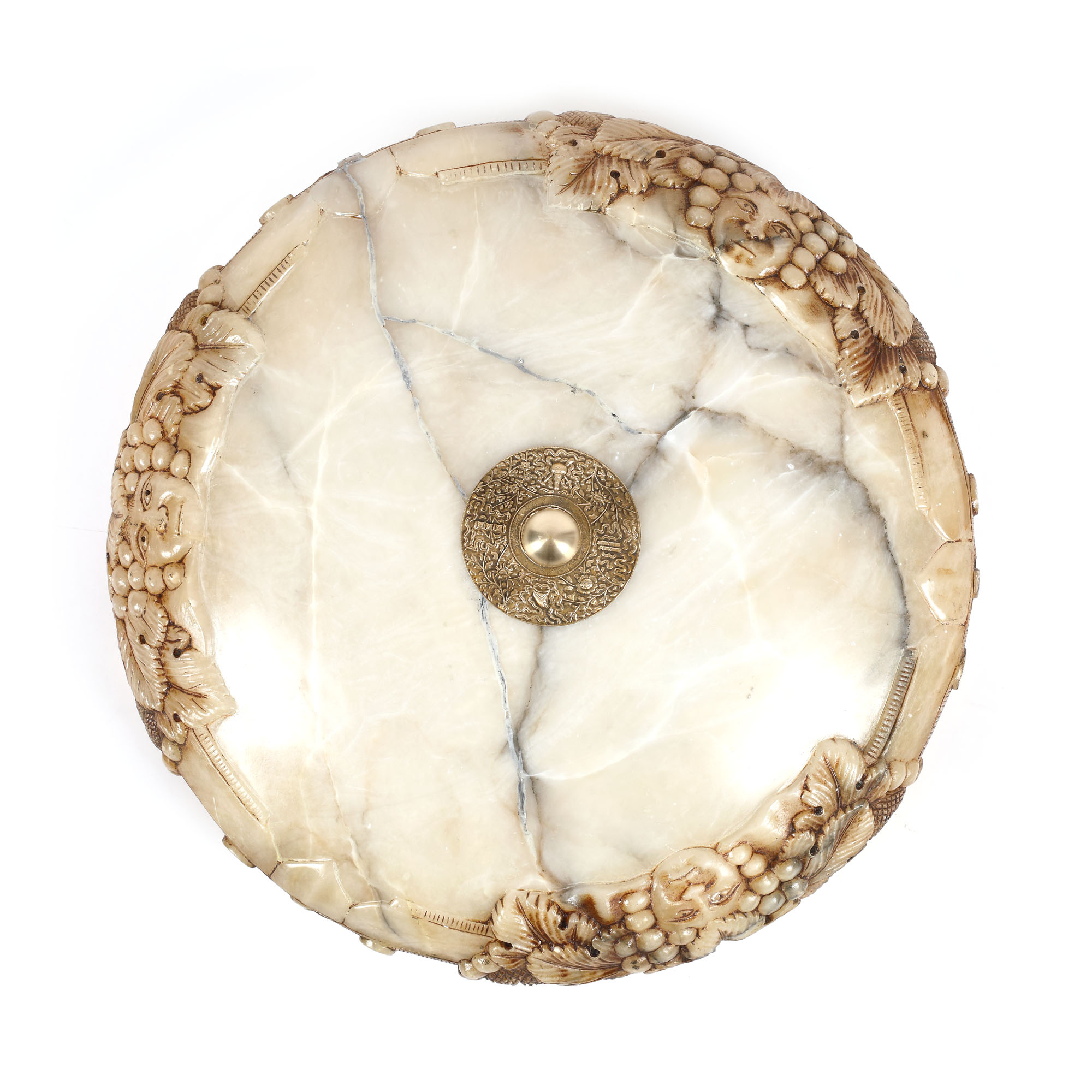 45. Plafonieră Art Nouveau, din alabastru și bronz aurit, cu decor inspirat de lucrările lui Michael Powolny, cca. 1900-1910