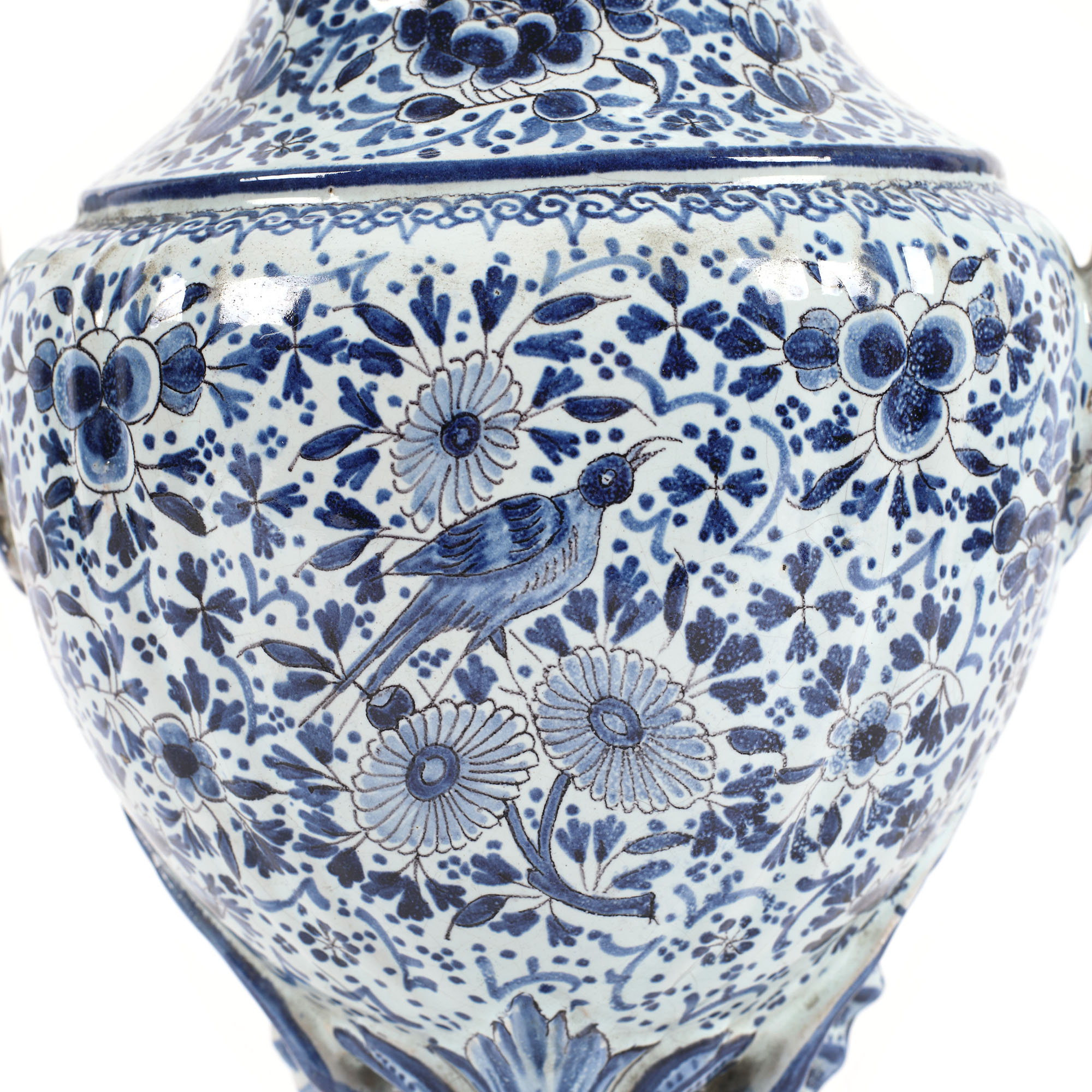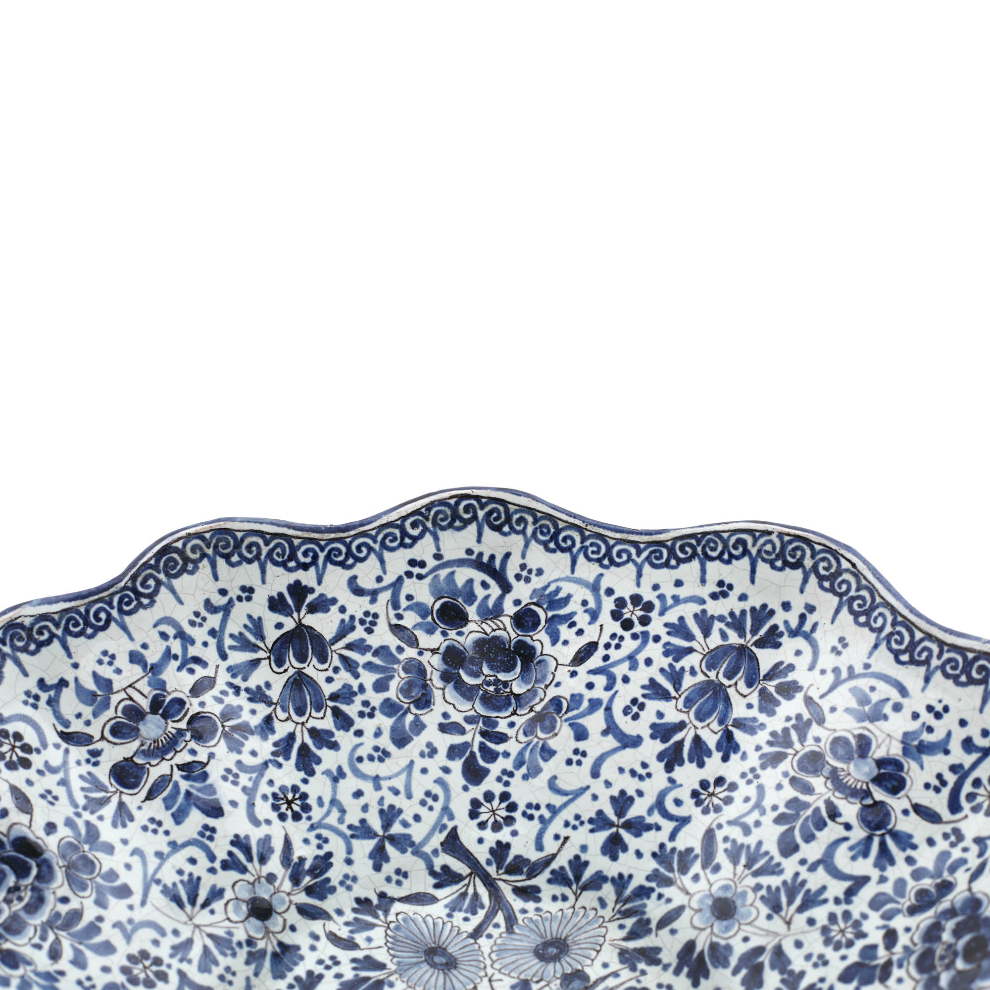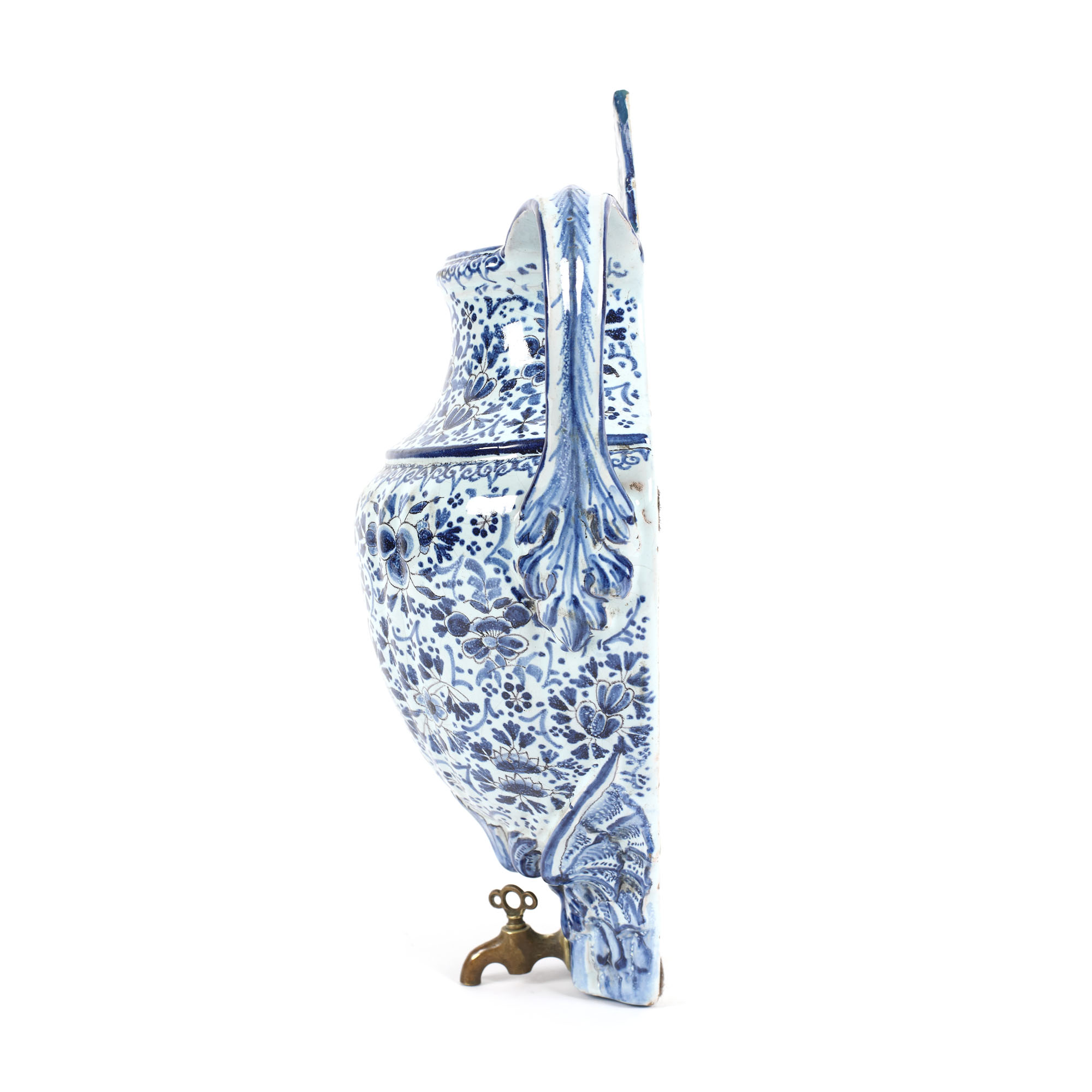 30. Set Delft, realizat în manufactura "De Klaauw", compus din fântână și bazin, decorată cu motive crizanteme și păsări, pește fantastic și scoică de mari dimensiuni în reprezentare barocă, cca. 1680-1700, piesă de colecție