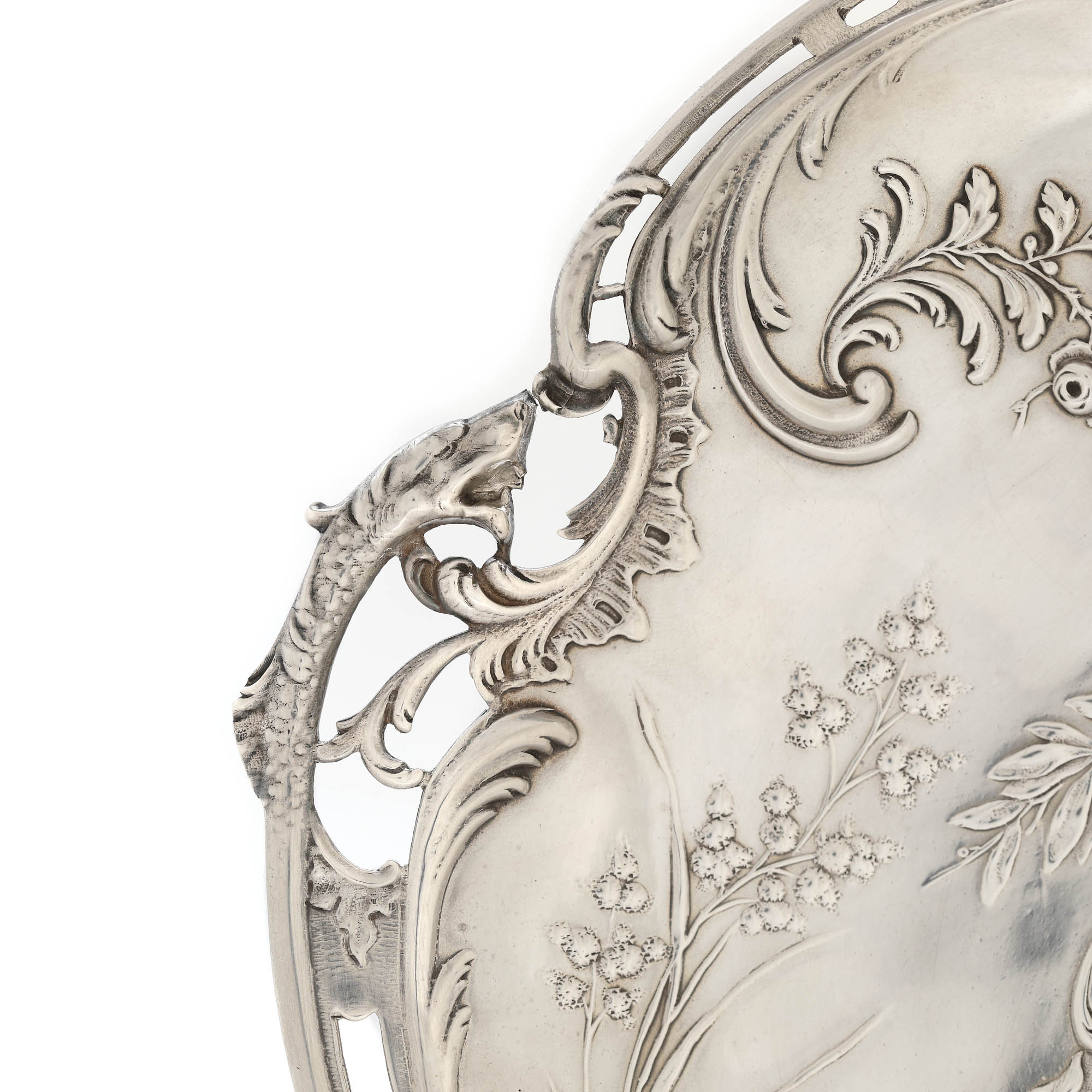 20. Splendid platou Belle Époque din argint, decorat cu pești fantastici și trandafiri, comandă pentru Maison Lapparra, cca. 1895