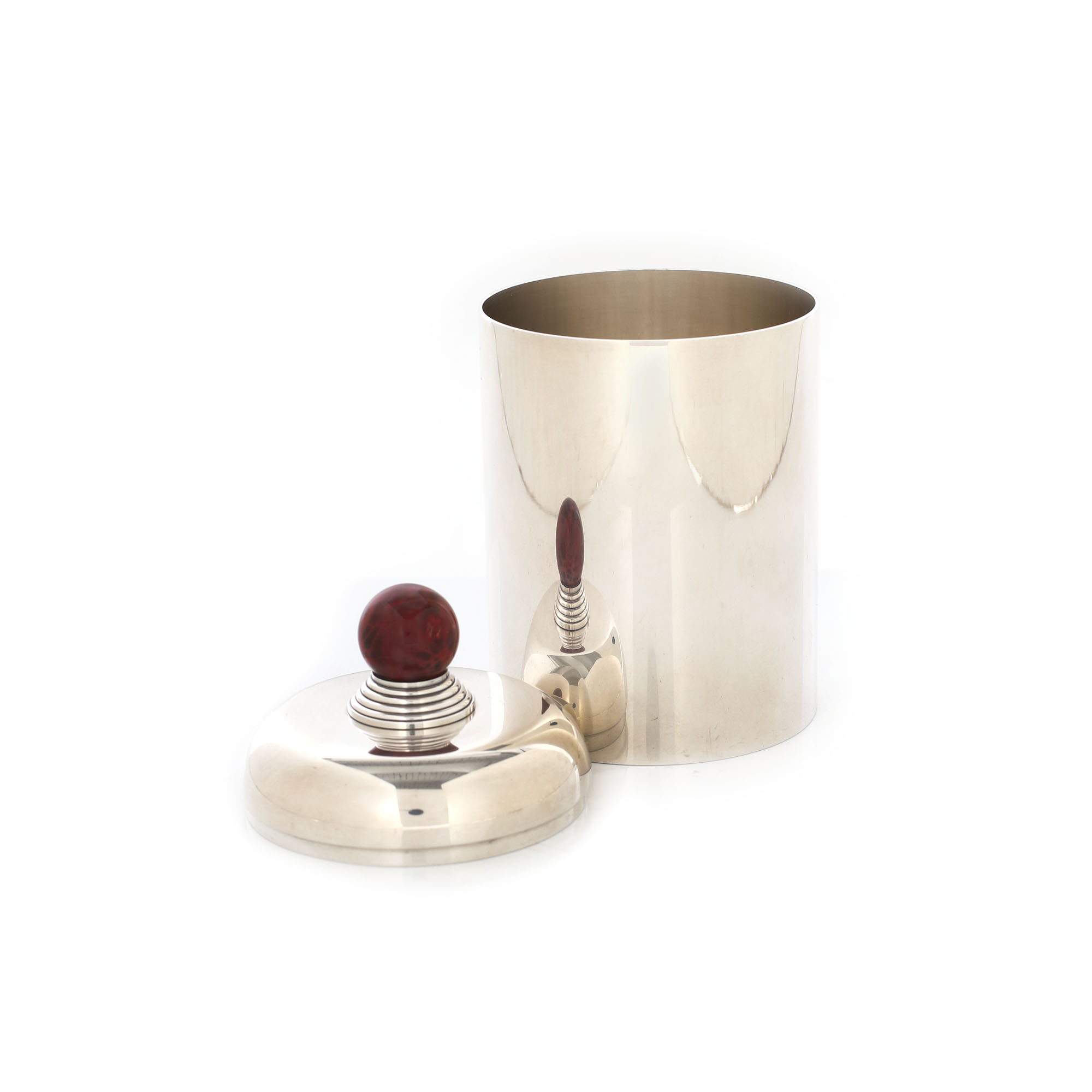 11. Tea caddy Art Deco, design Jean-Émile Puiforcat, cu capacul surmontat de jasp șlefuit caboșon, cca. 1930, piesă de colecție