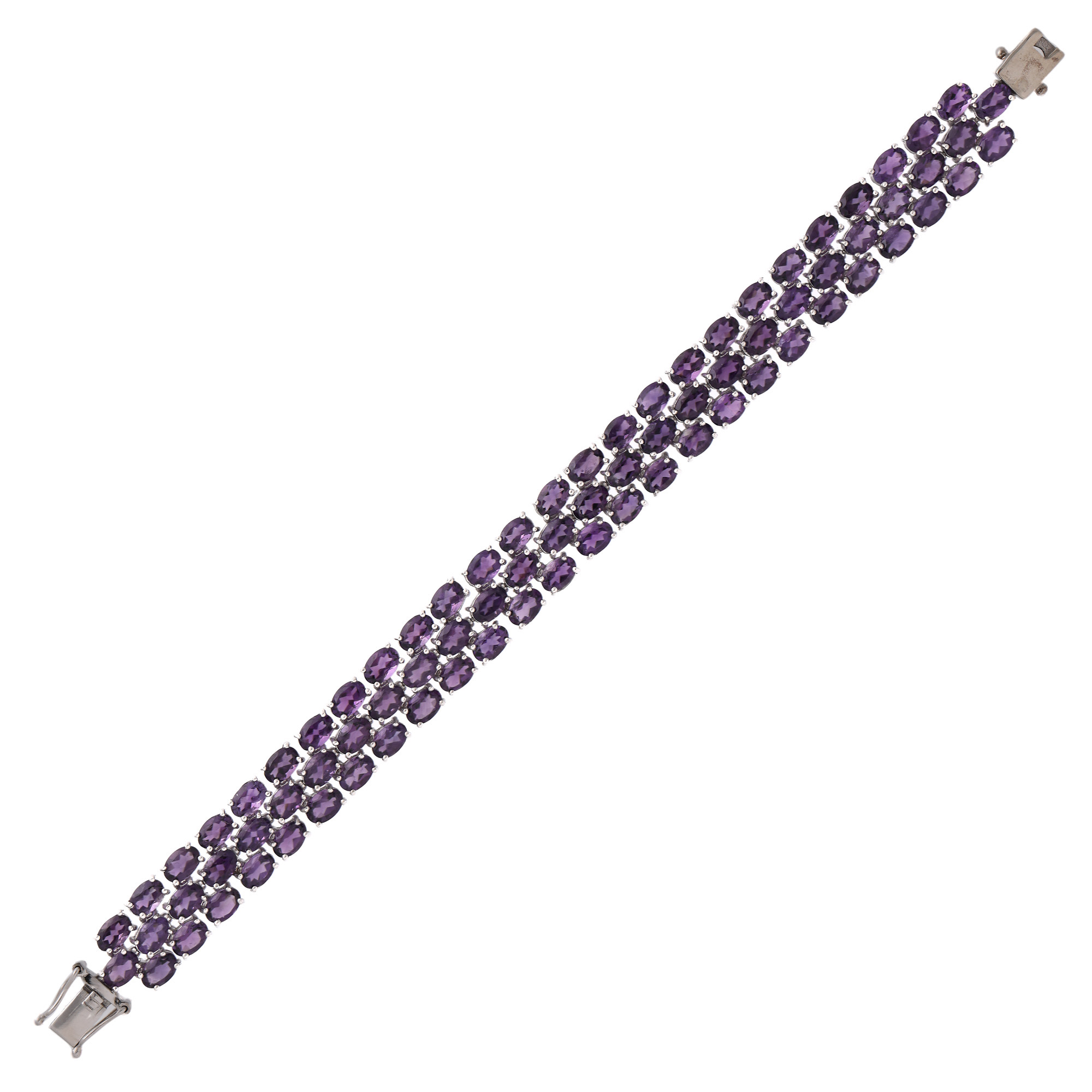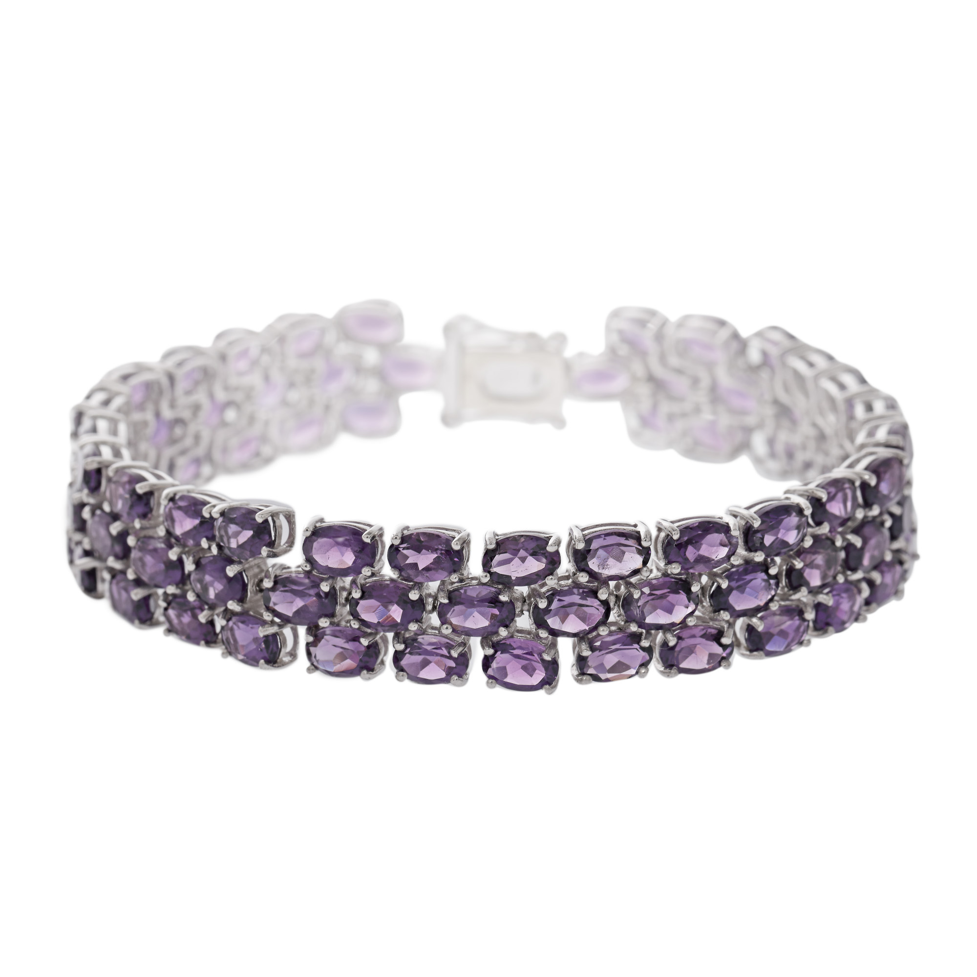 38. Brățară din argint, ornată cu trei rânduri de ametiste, însoțită de certificat gemologic