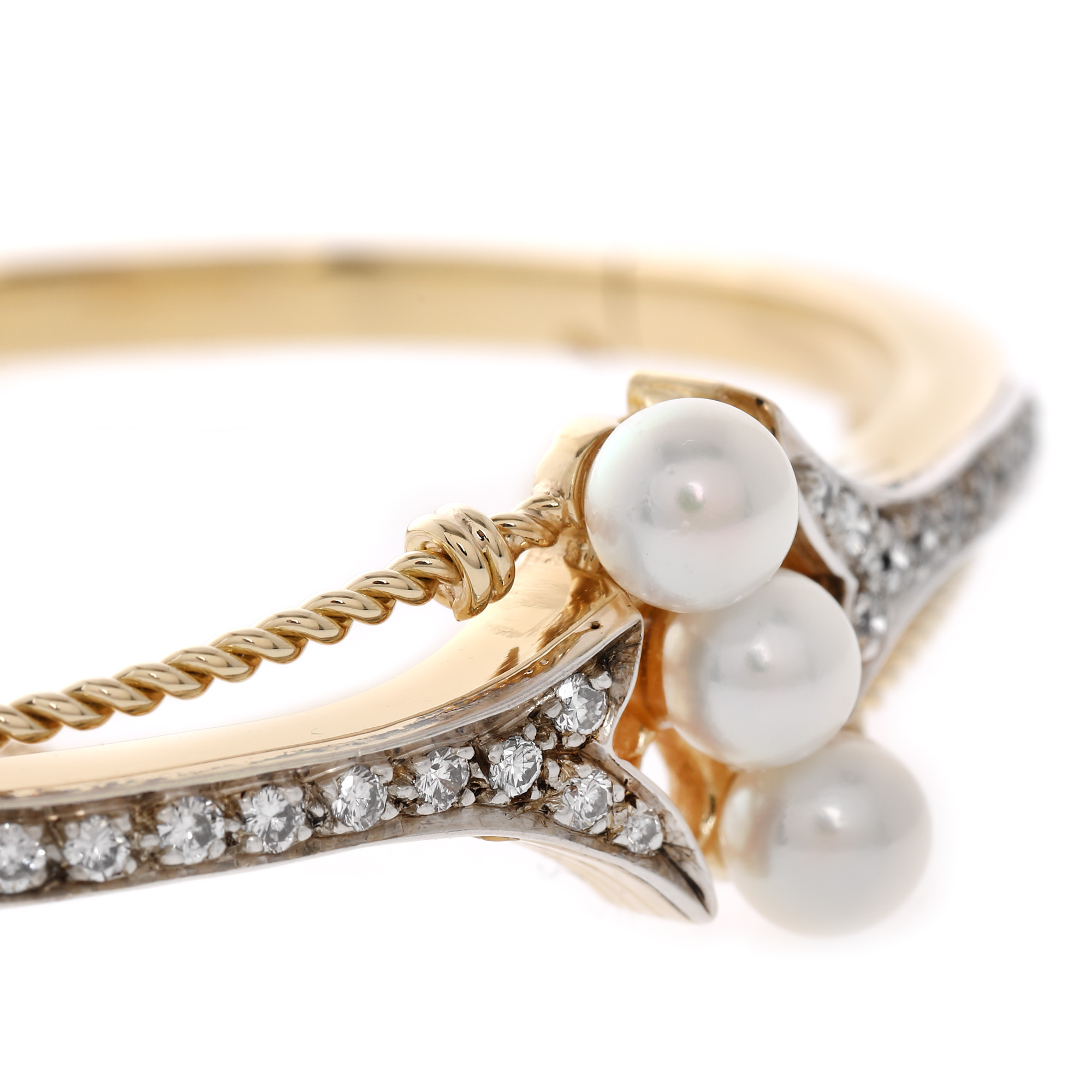 23. Brățară din aur, decorată cu perle Akoya și diamante