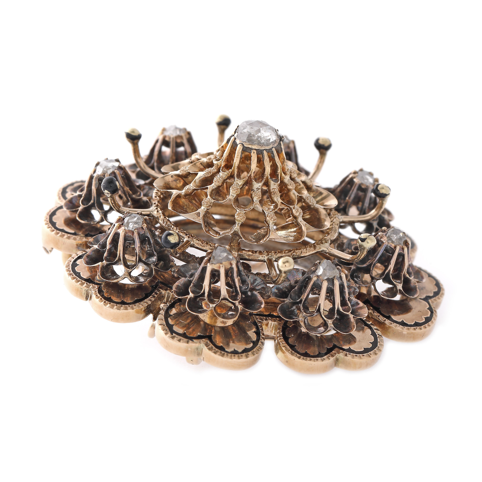 29. Broșă Victoriană din aur, decorată cu email și diamante, cca. 1880-1900