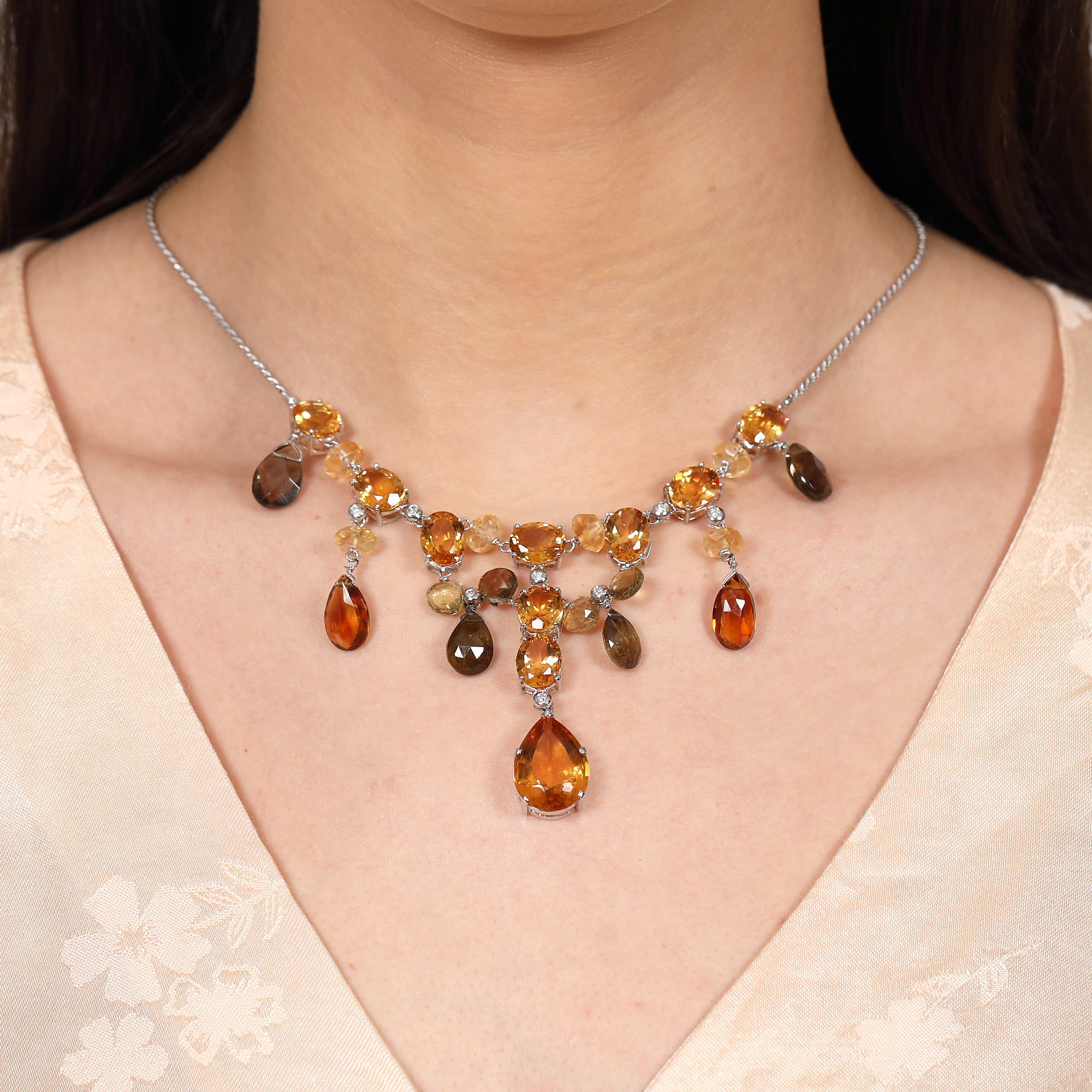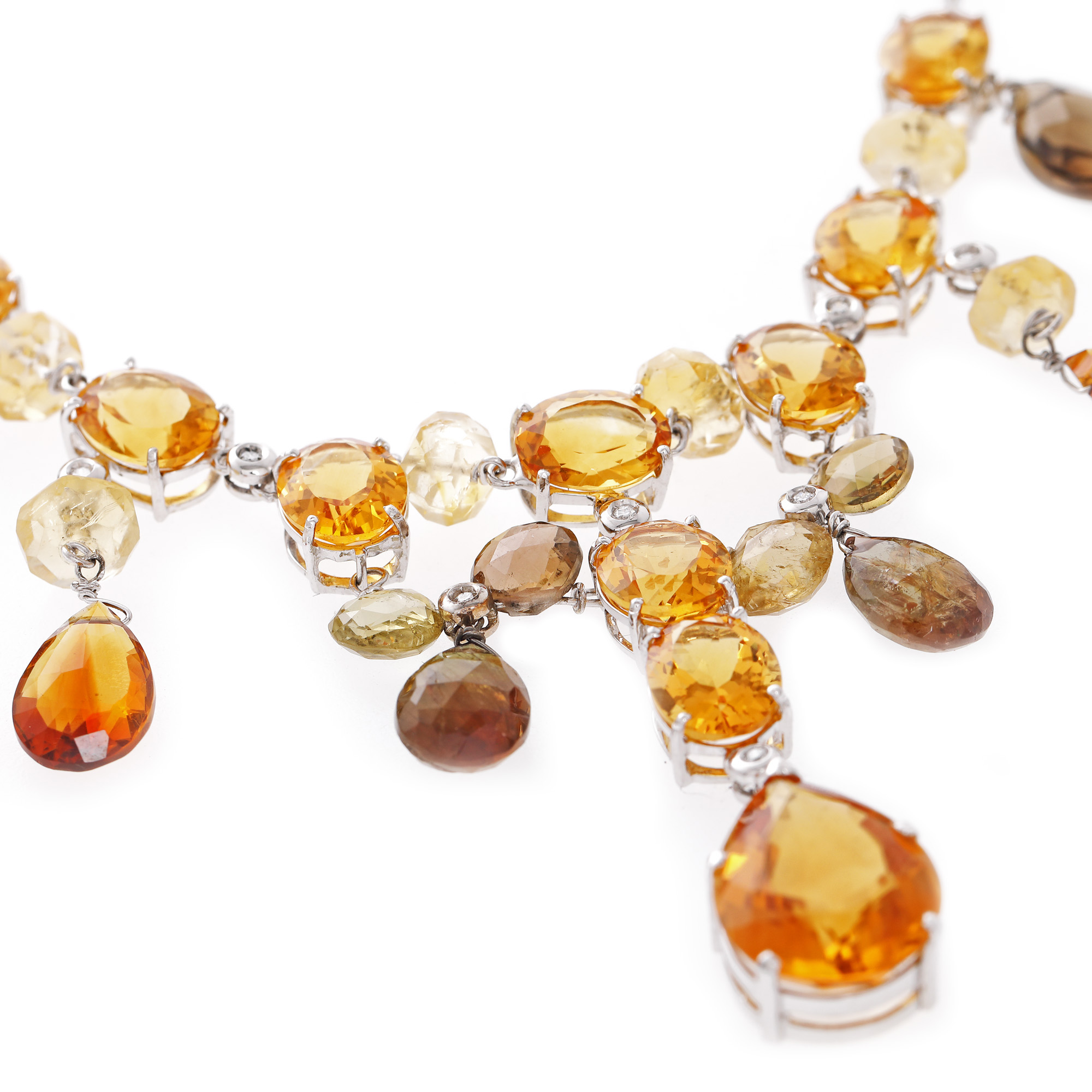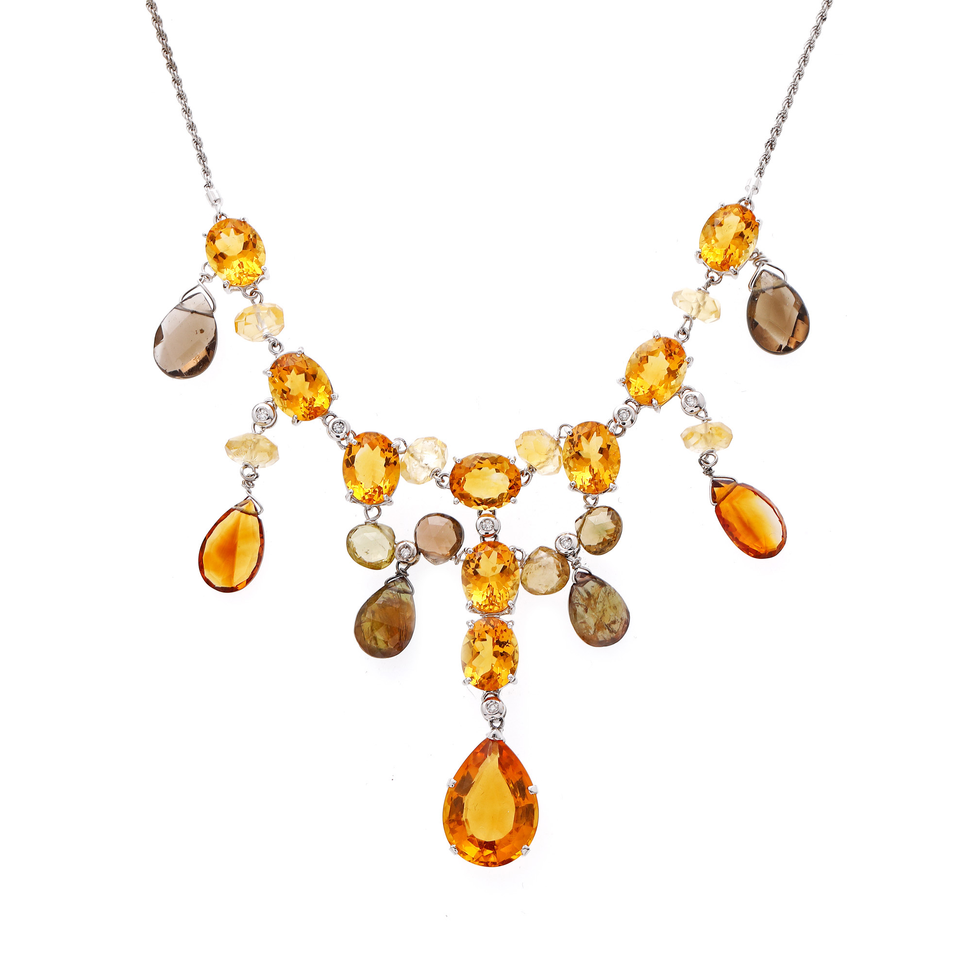 50. Colier din aur alb, decorat cu citrine, cuarțuri și briliante