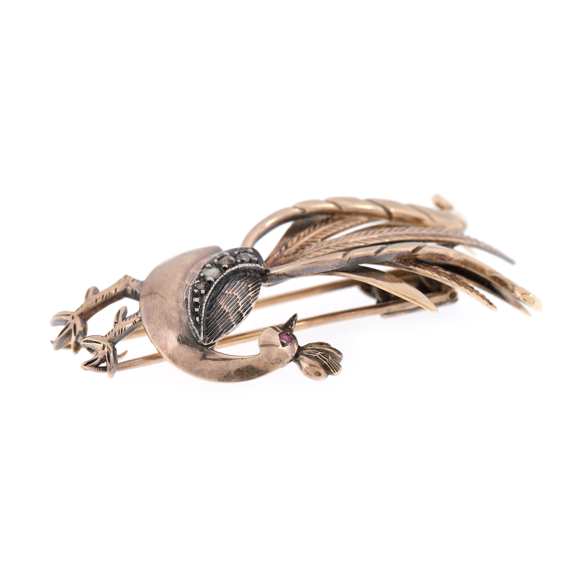 33. Dress clip din aur și argint, în forma unui păun, decorat cu diamante, cca. 1900
