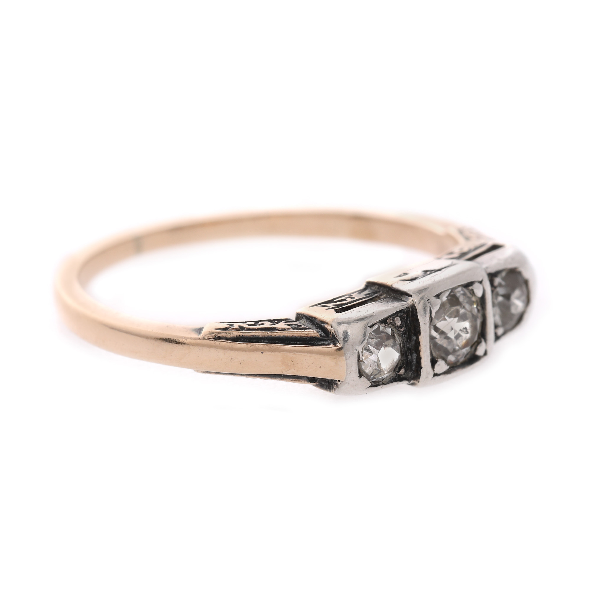 32. Inel Art Deco din aur și argint, decorat cu triadă de diamante, cca. 1920-1940