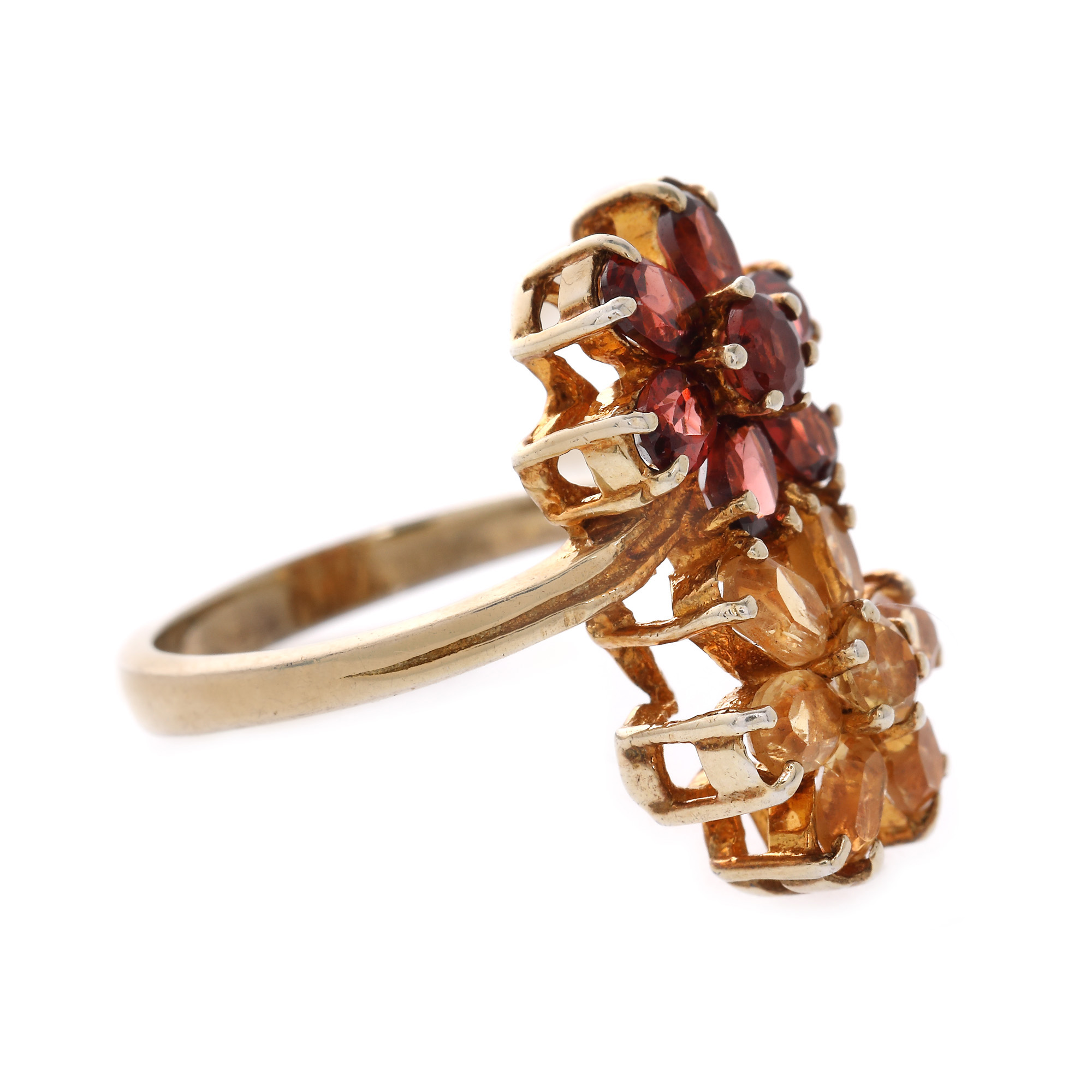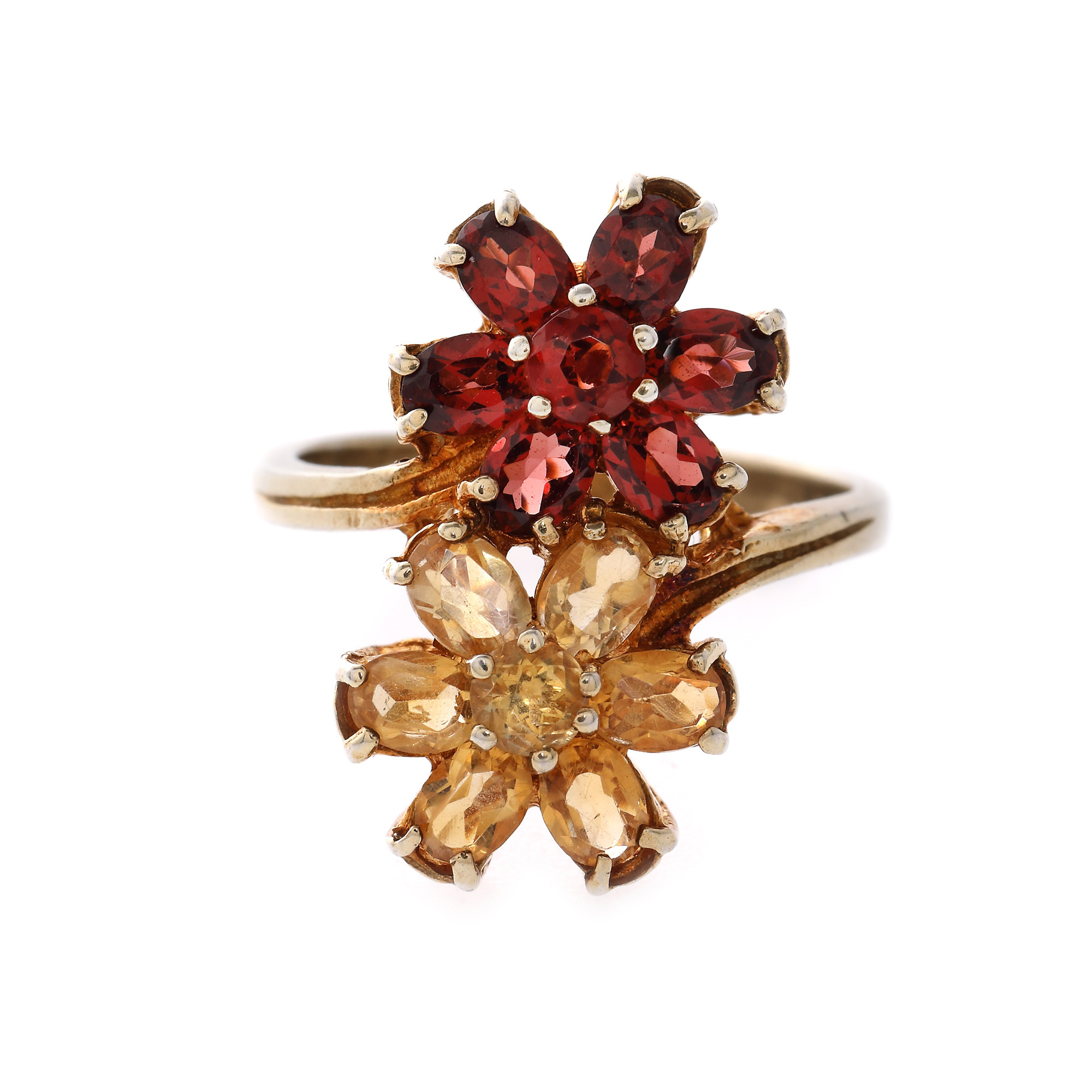 41. Inel din argint aurit, decorat cu granate și citrine