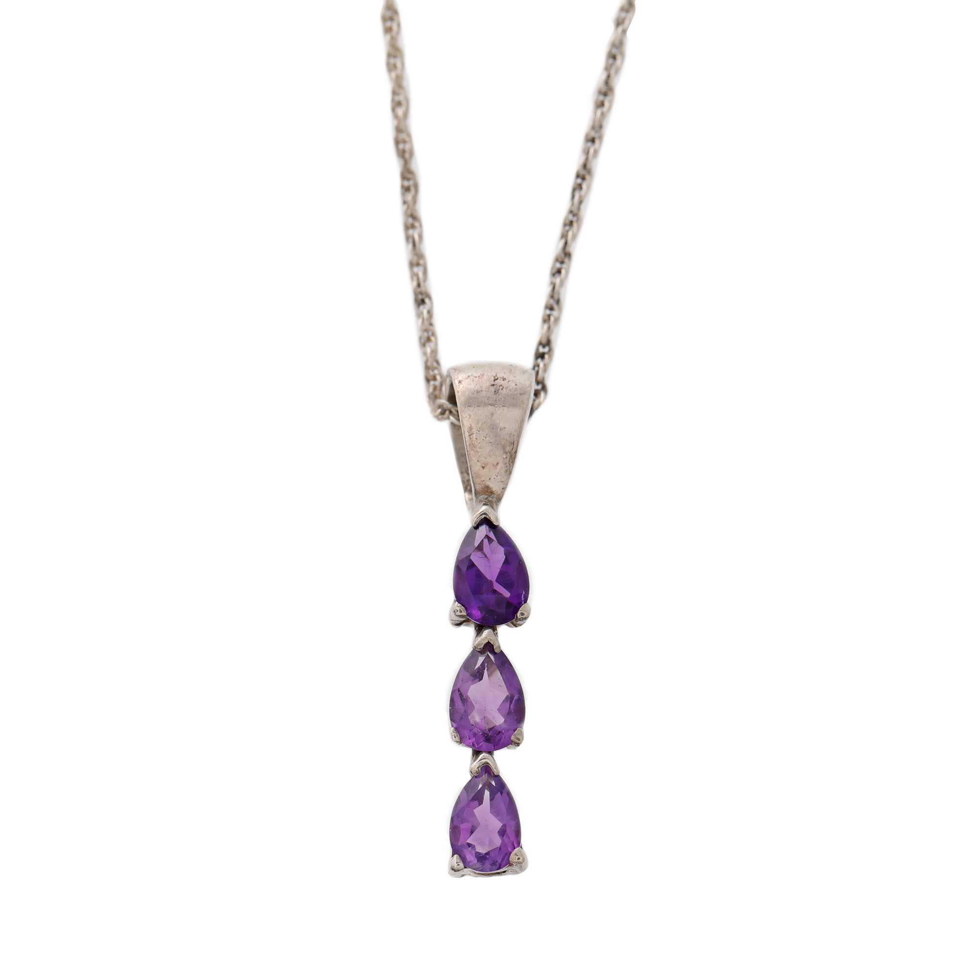 37. Lanț cu pandantiv din argint, decorat cu ametiste