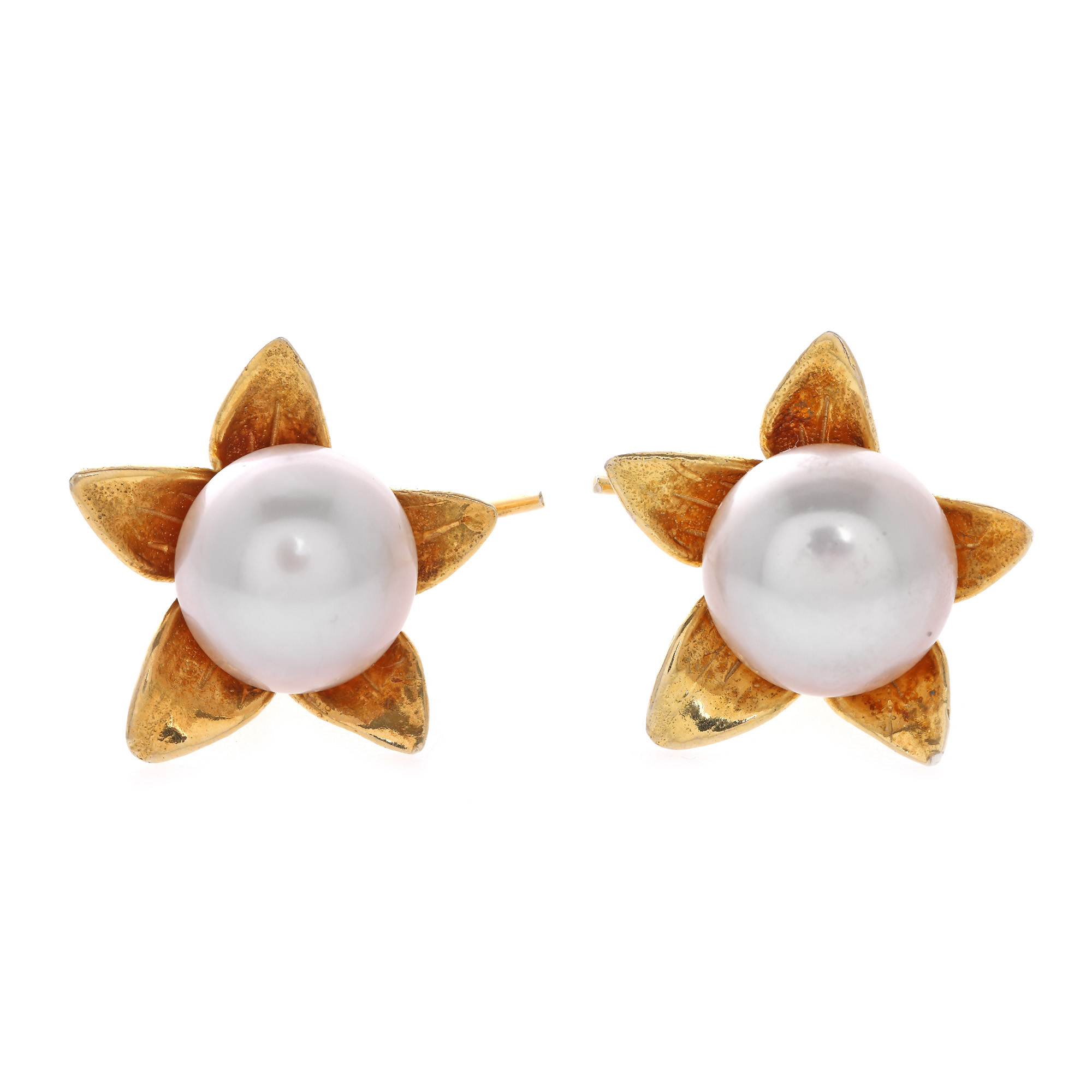 35. Pereche de cercei din argint aurit, ornată central cu perle