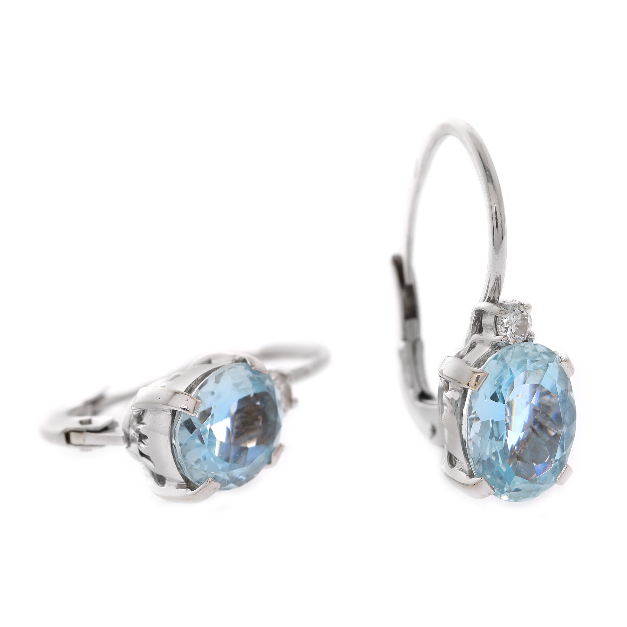 11. Pereche de cercei din aur alb, decorată cu acvamarine și diamante