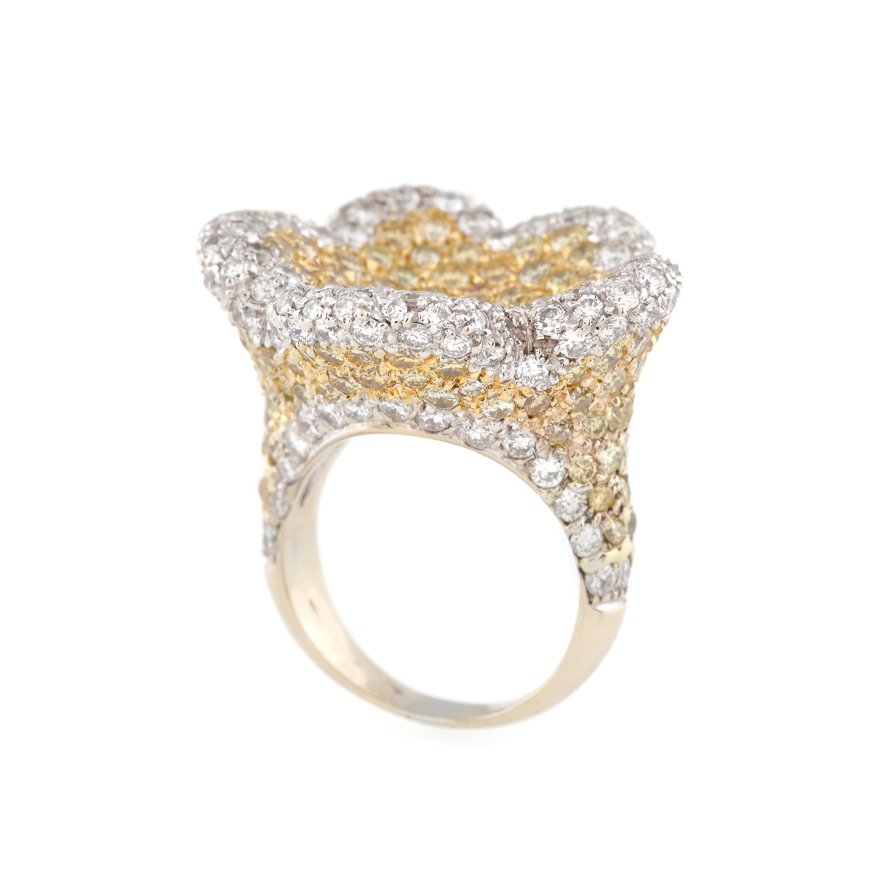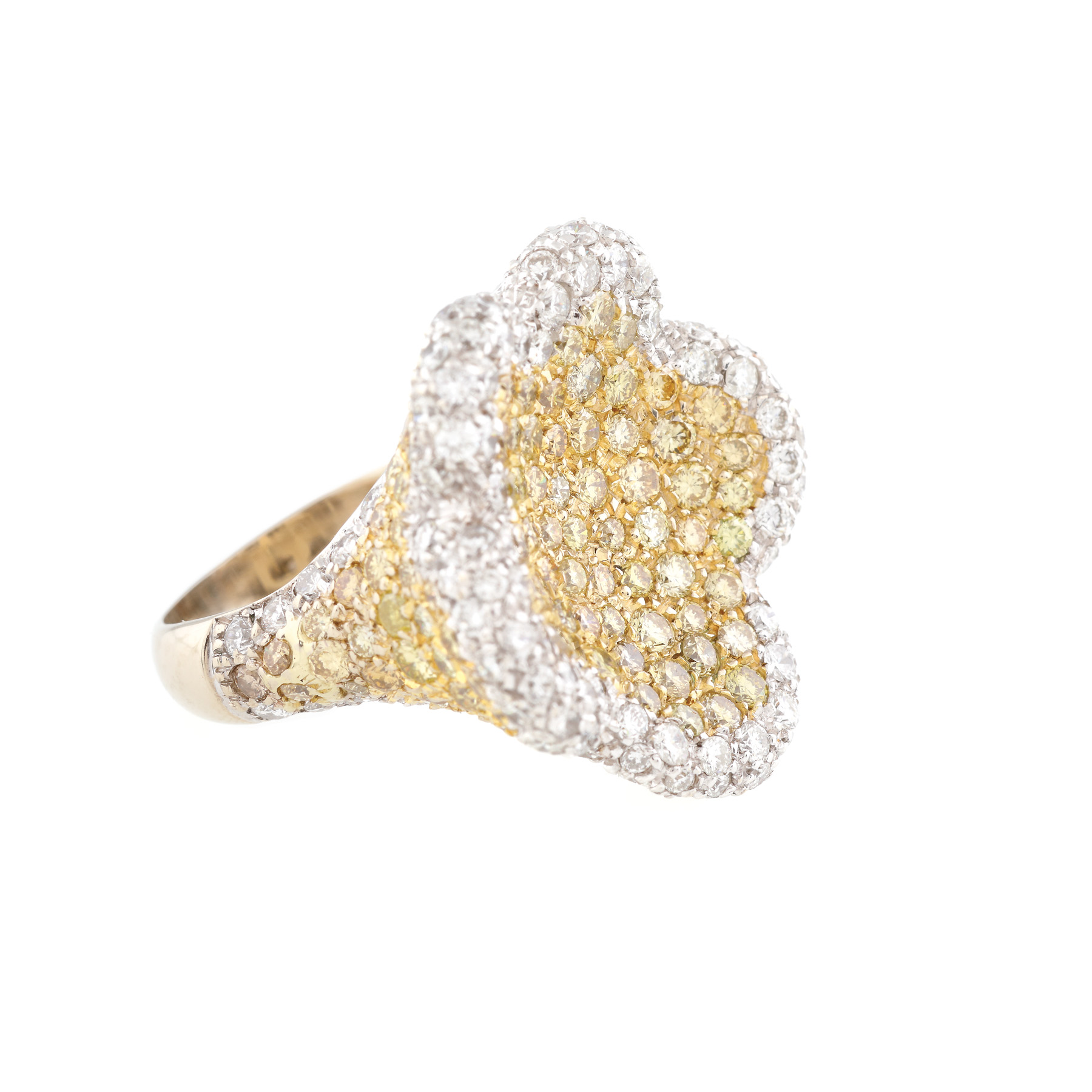 196. ”Fancy yellow” - inel din aur alb, pavat cu diamante albe și diamante galbene