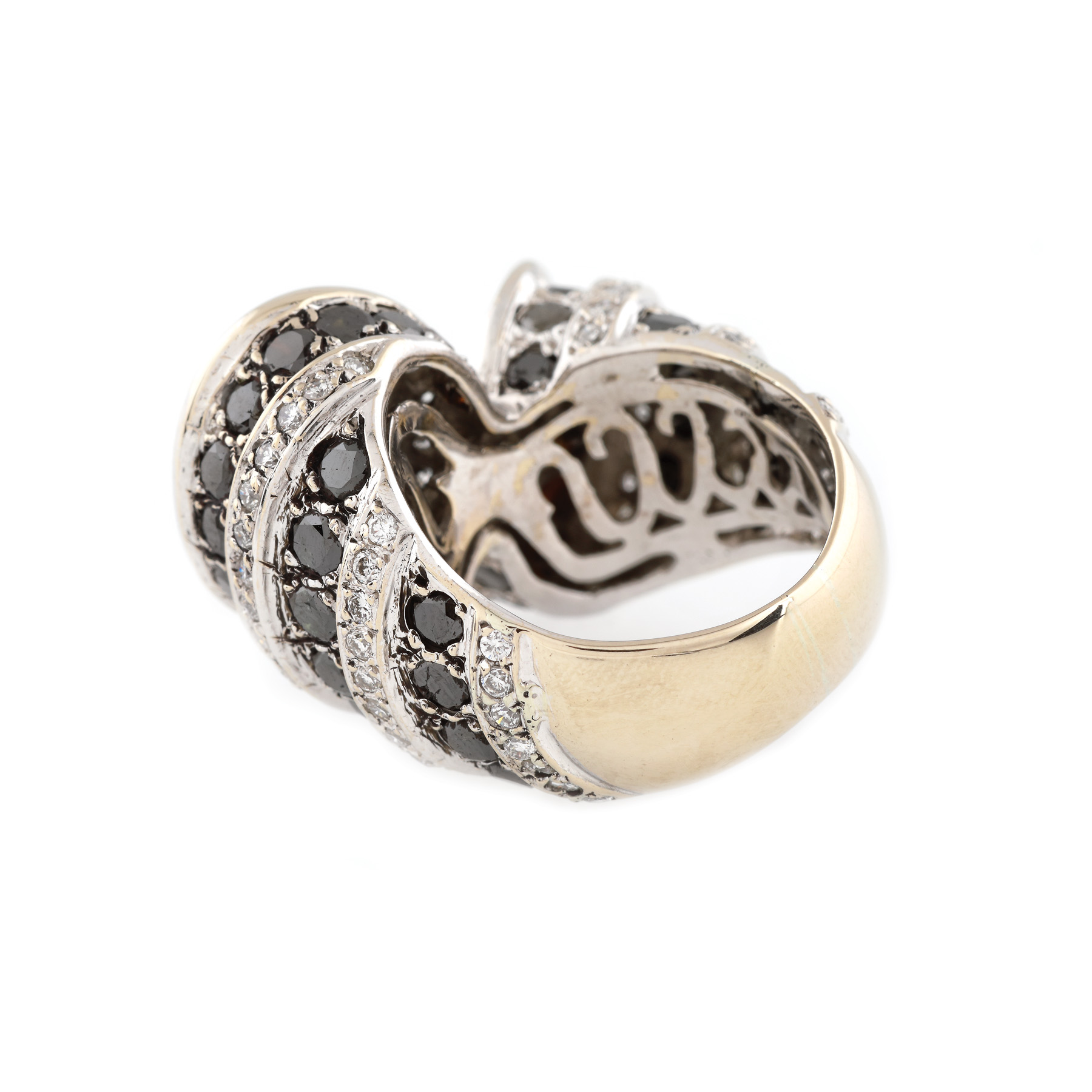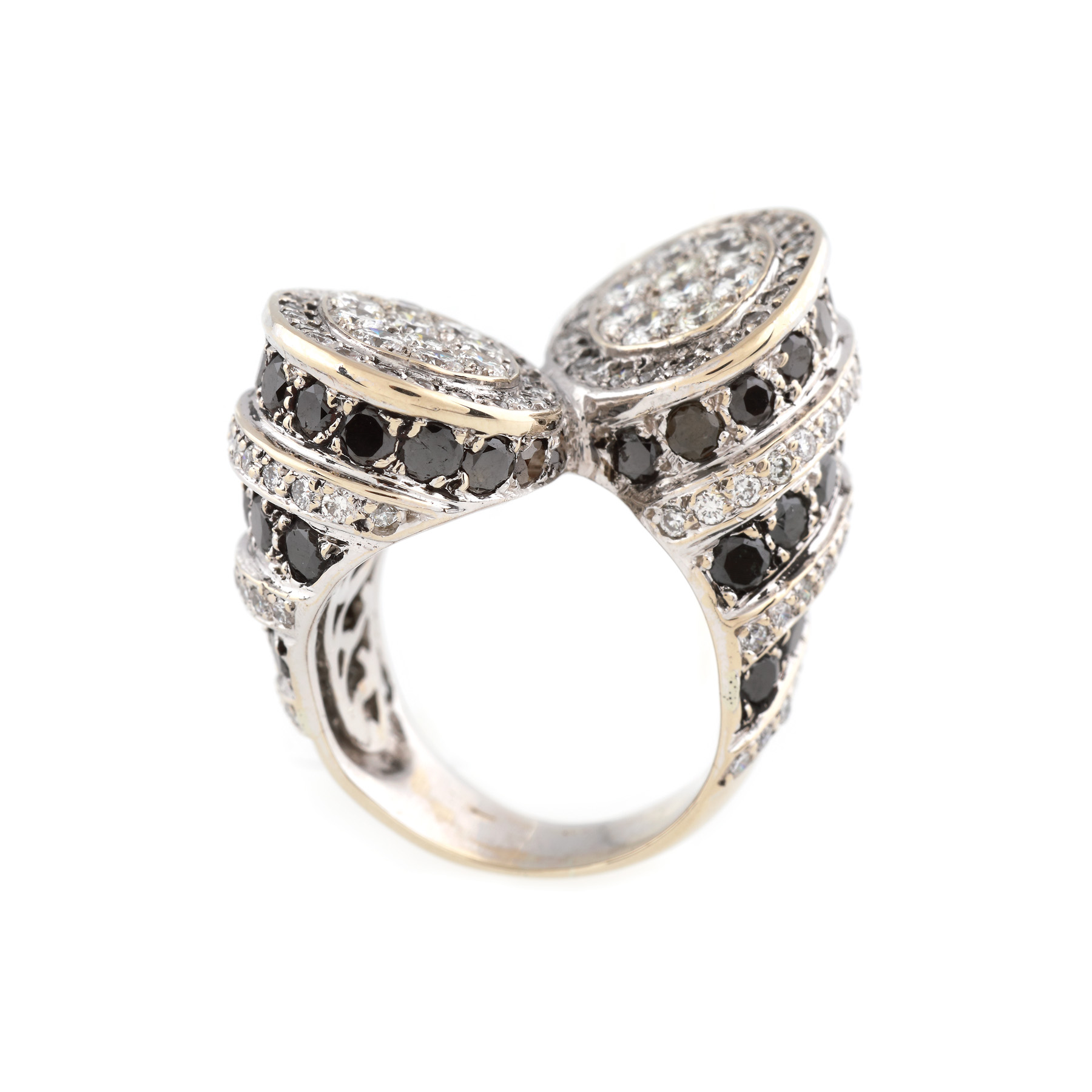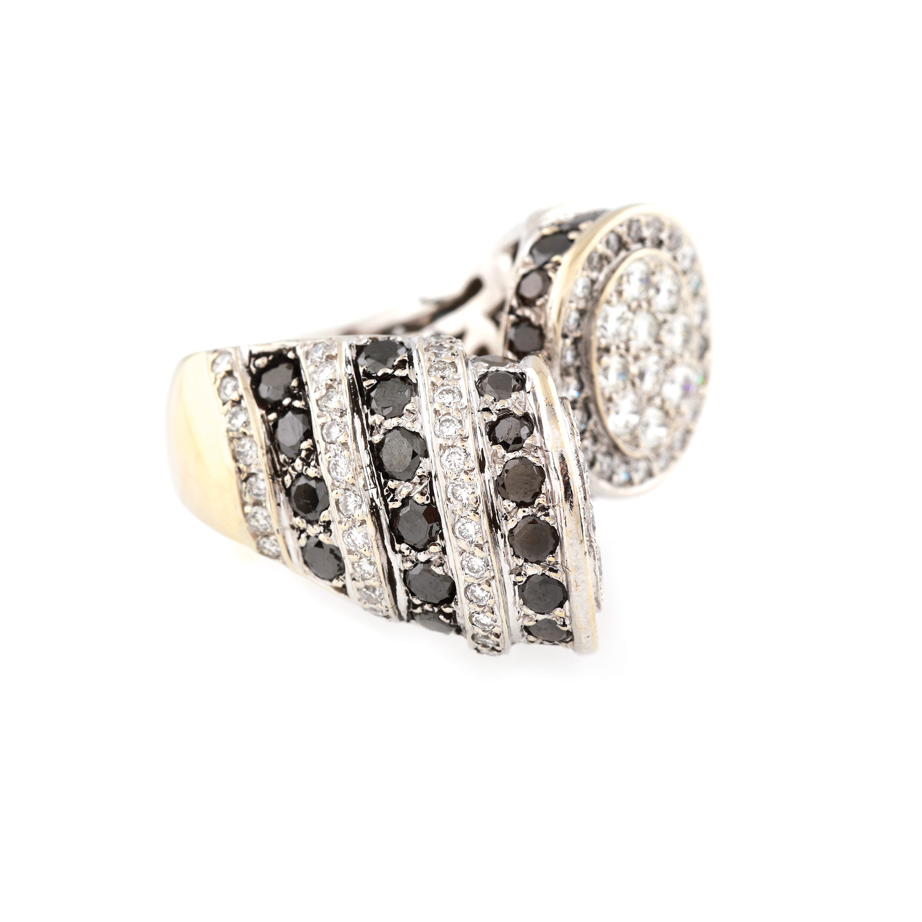 212. Inel din aur alb, decorat cu diamante albe și negre