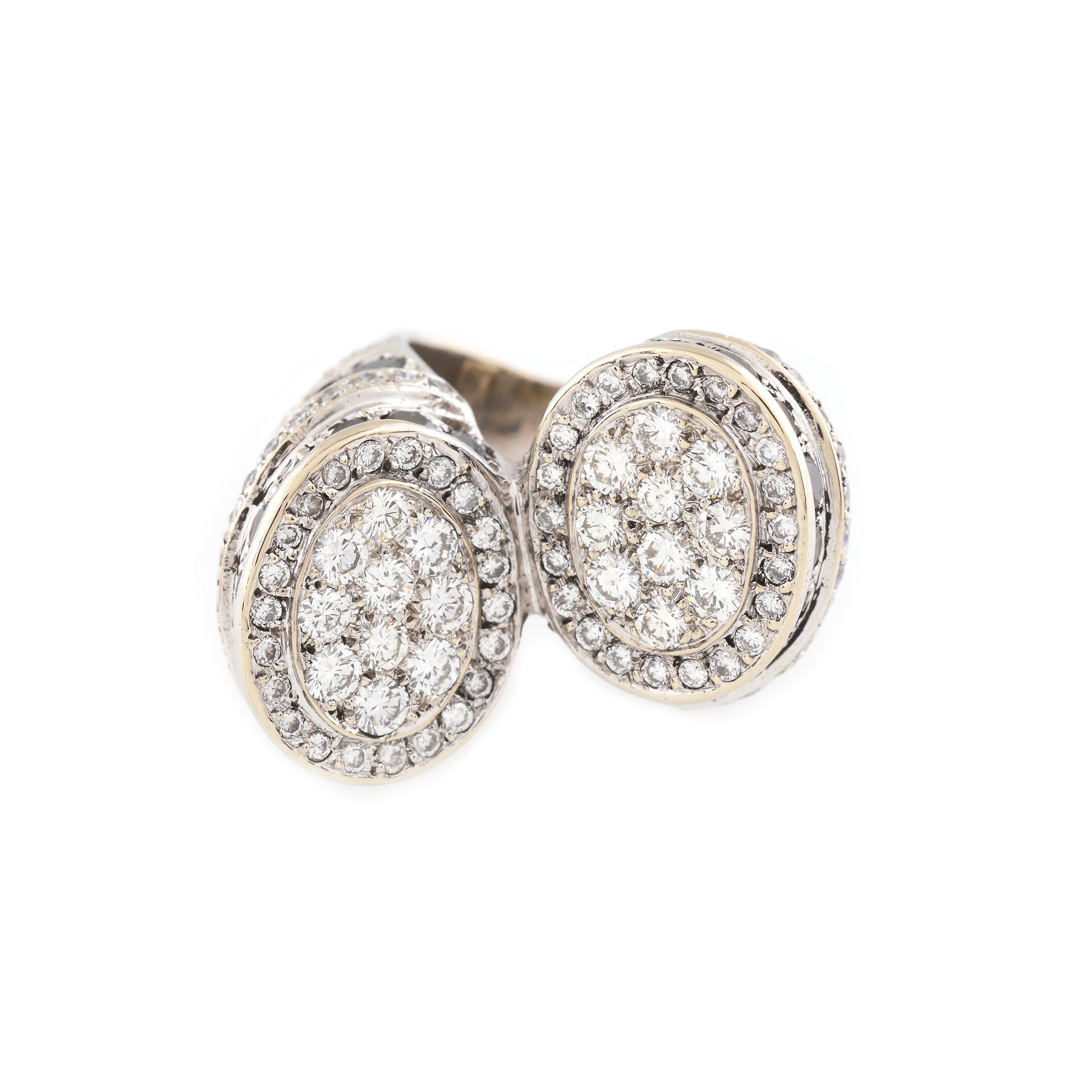 129 diamante rotunde briliant, culoare G-H, claritate VS, cca. 2,7 ct. și 46 diamante rotunde briliant, negre, cca. 4 ct.