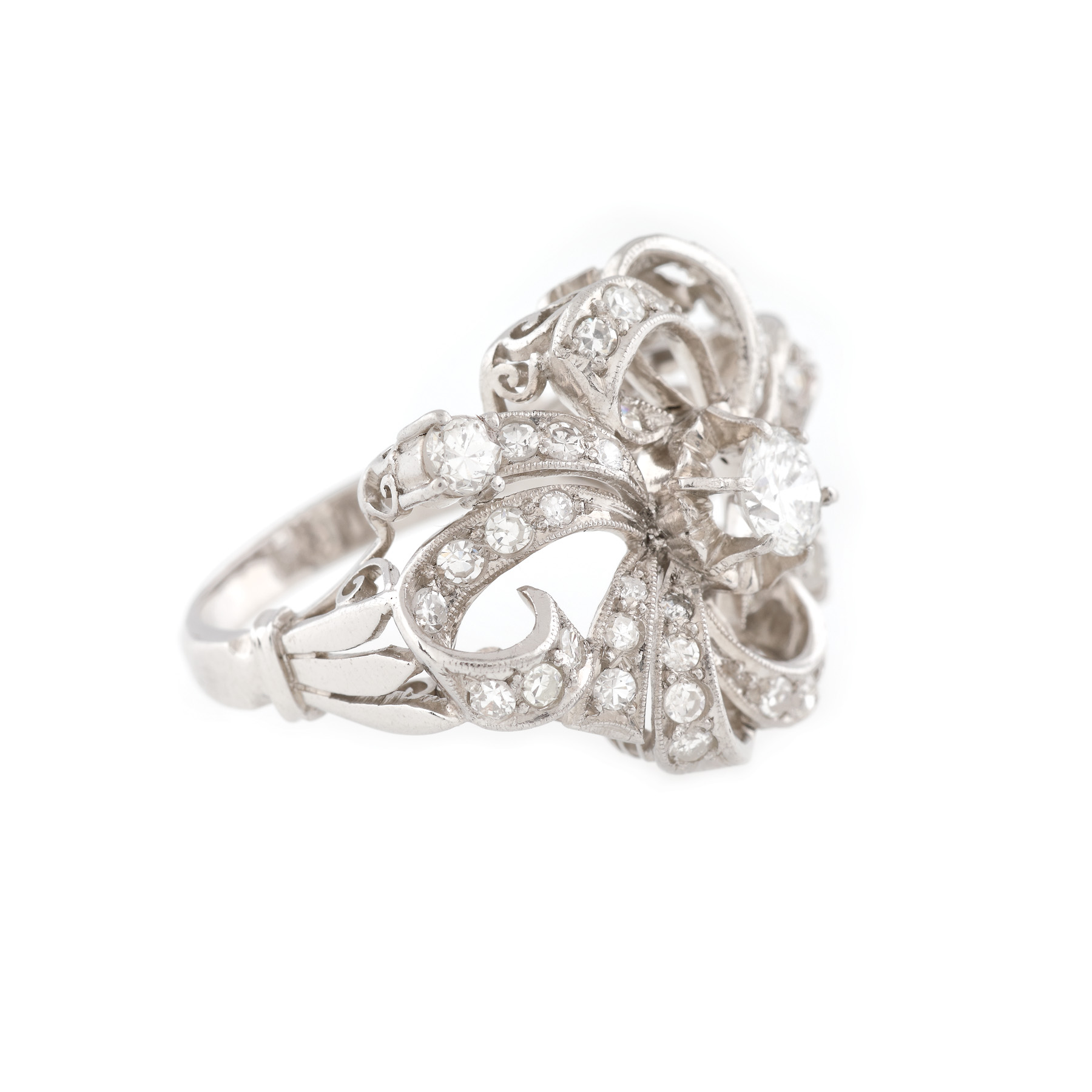 176. Inel în manieră Belle Époque, din aur alb, ornat cu diamante