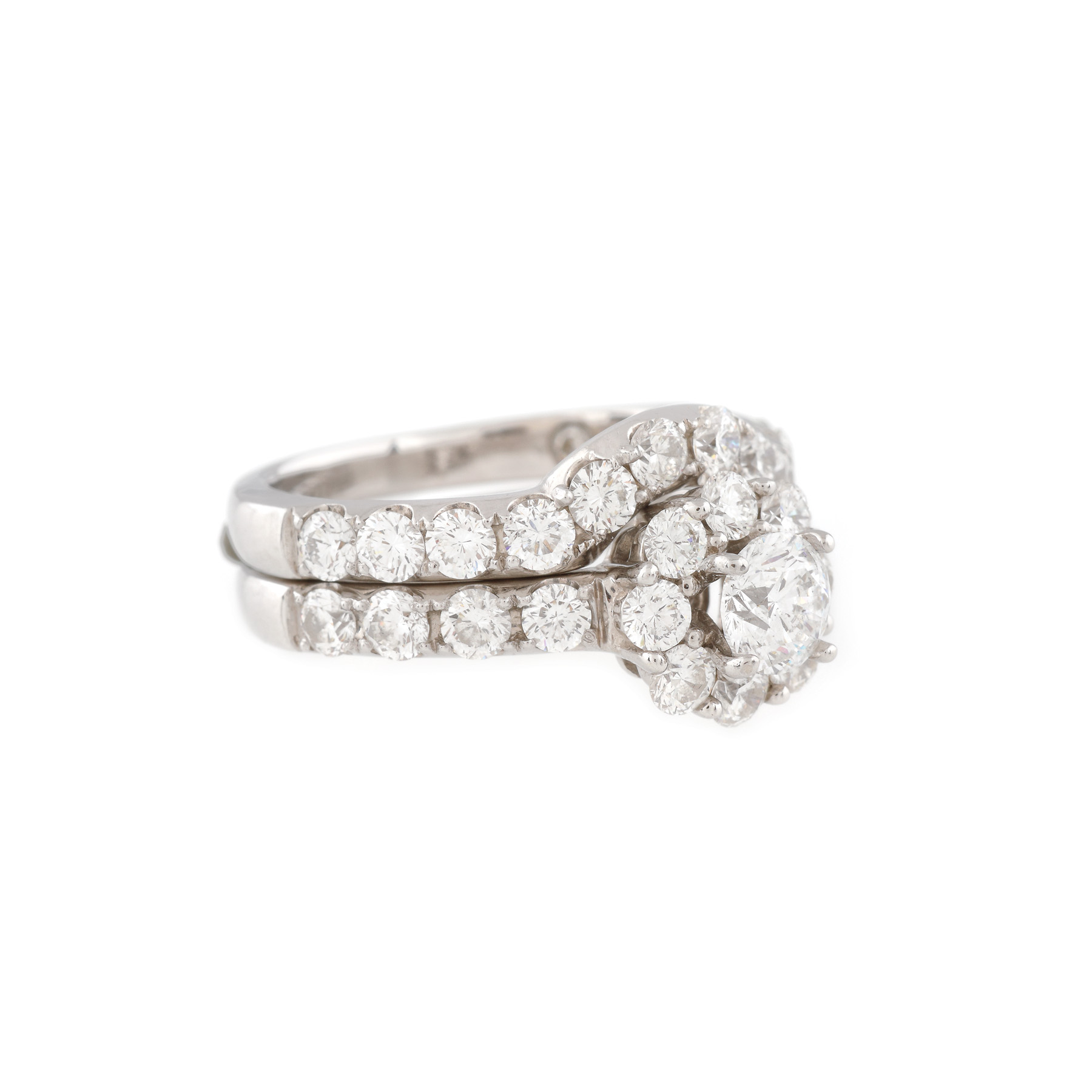 1 diamant rotund briliant, culoare H-I, claritate SI1, cca. 0,4 ct. și 28 diamante (27 rotunde briliant, 1 single cut), culoare H-I, claritate VS-SI, cca. 1,6 ct.