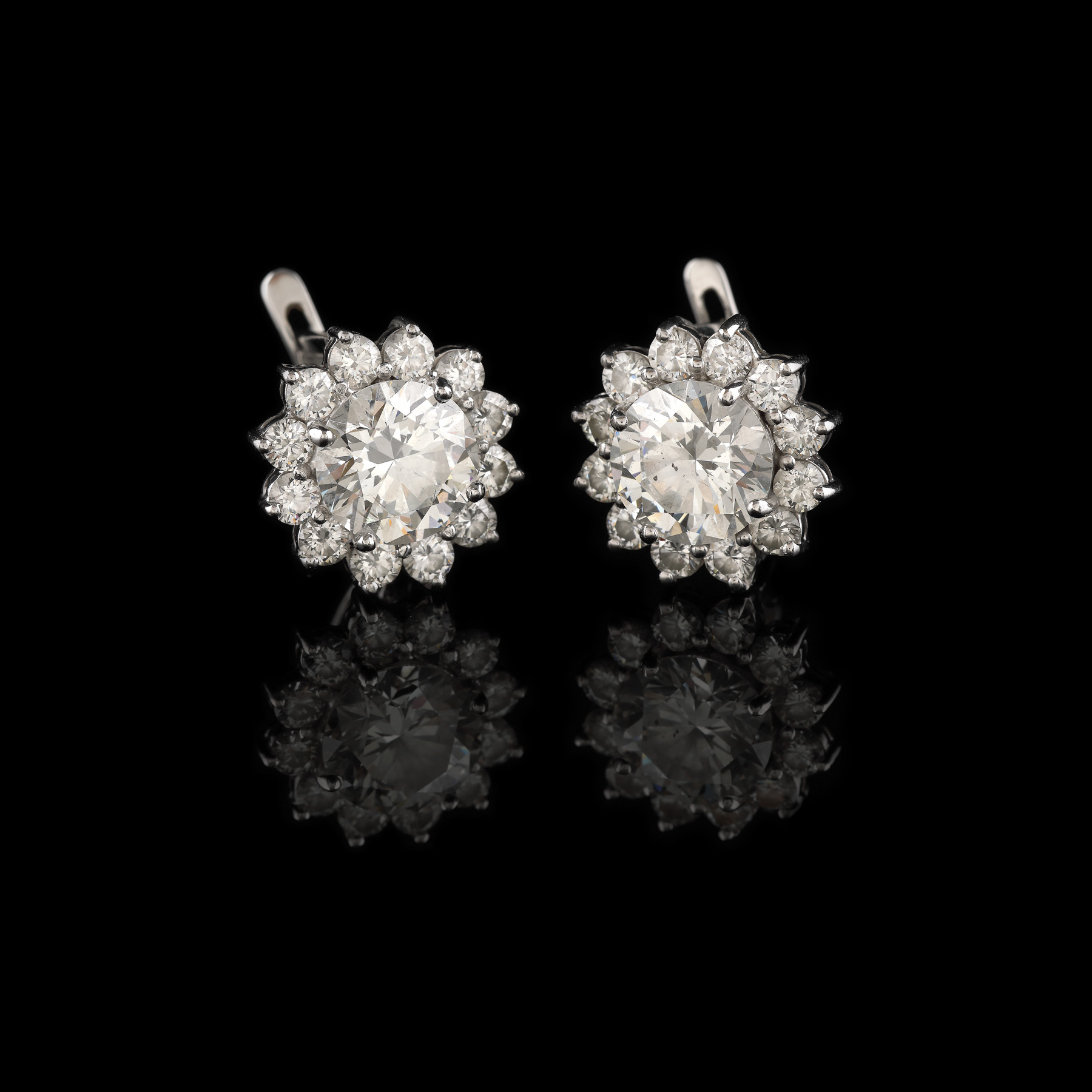 185. Remarcabilă pereche de cercei din aur alb, decorată cu diamante, însoțită de certificate GIA