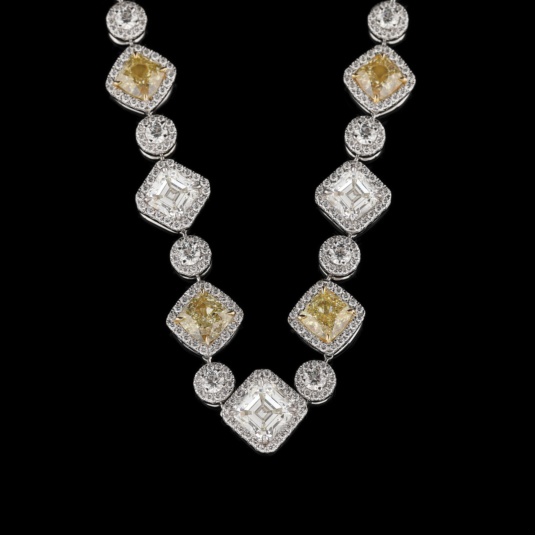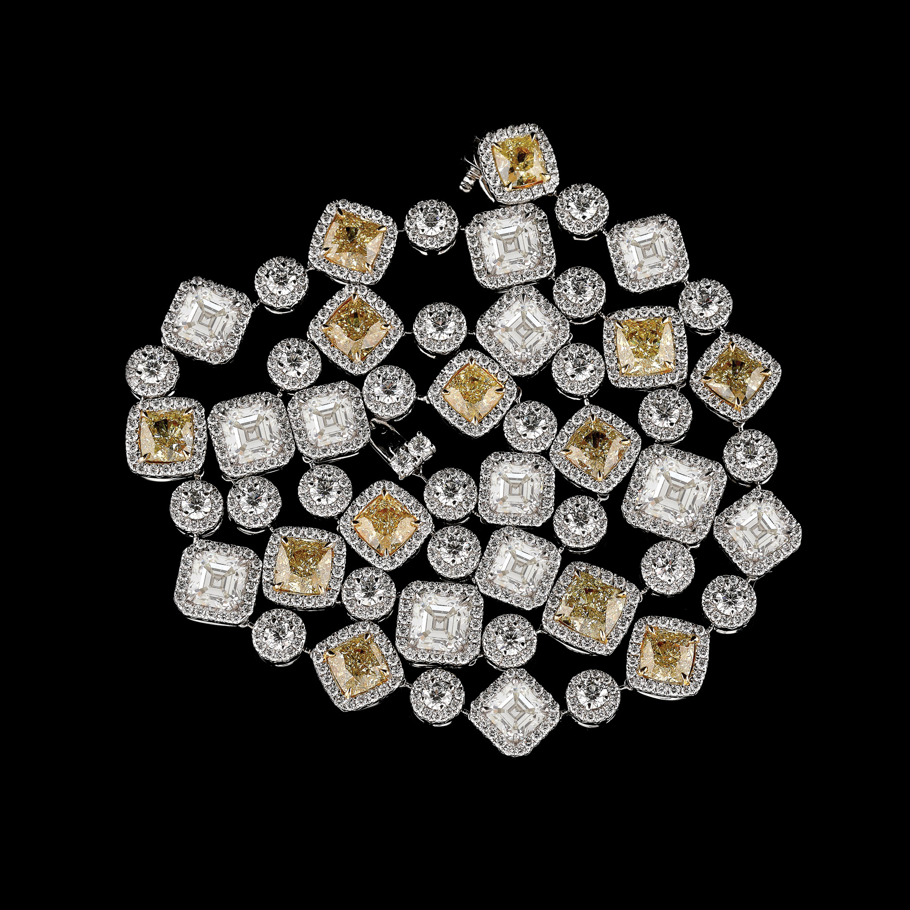 201. Superb colier din aur alb, pavat cu diamante albe și fancy yellow, piesă rară de colecție, însoțit de certificat GIA