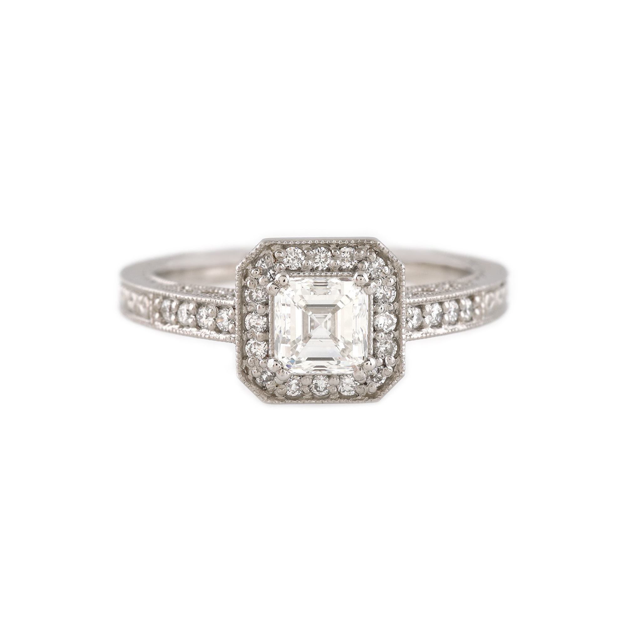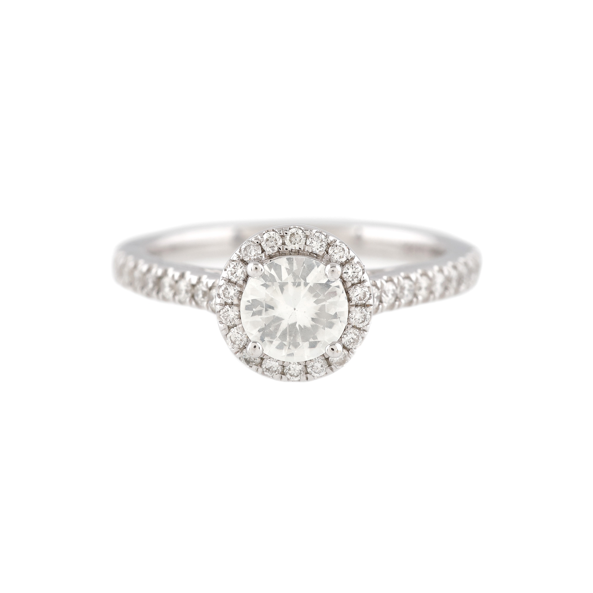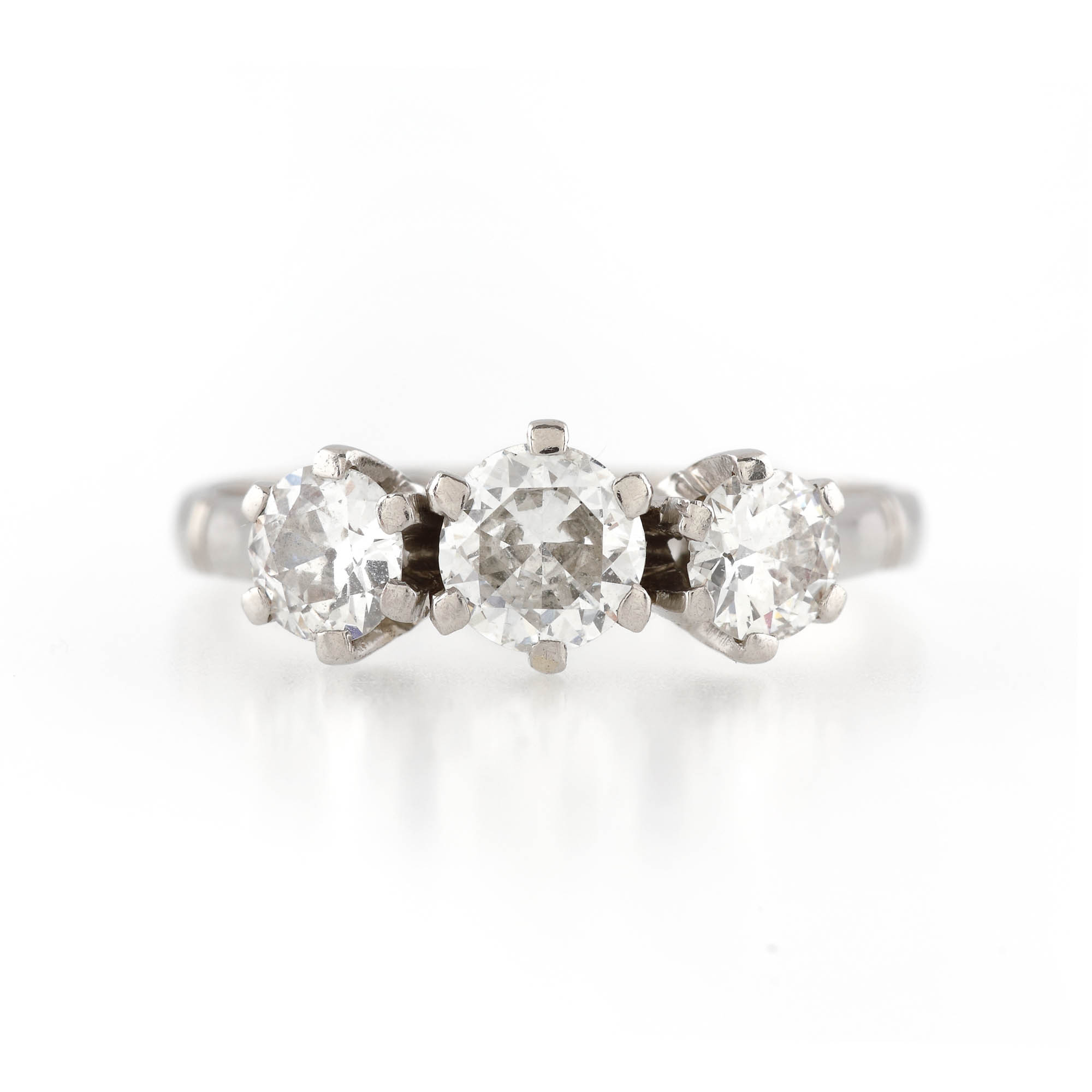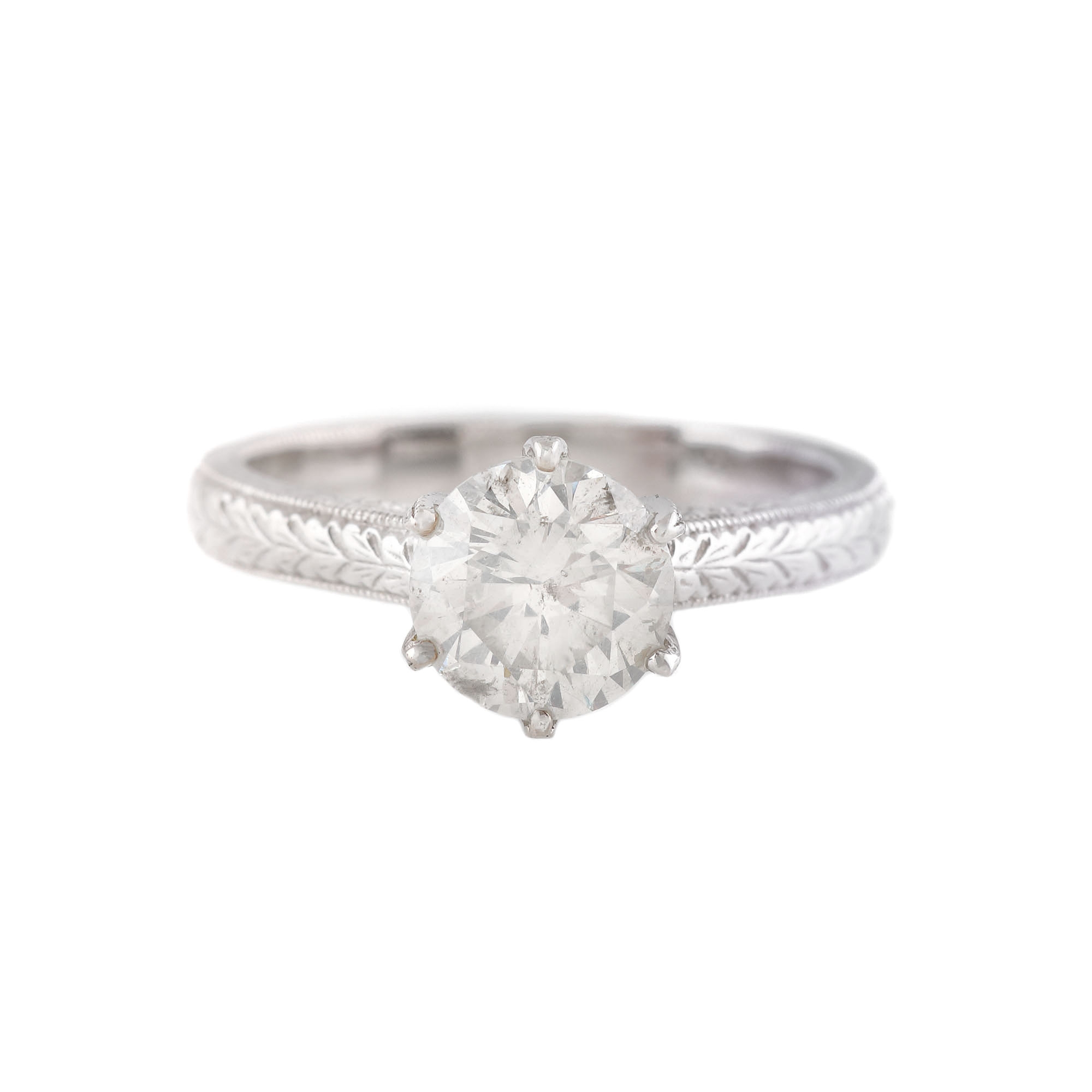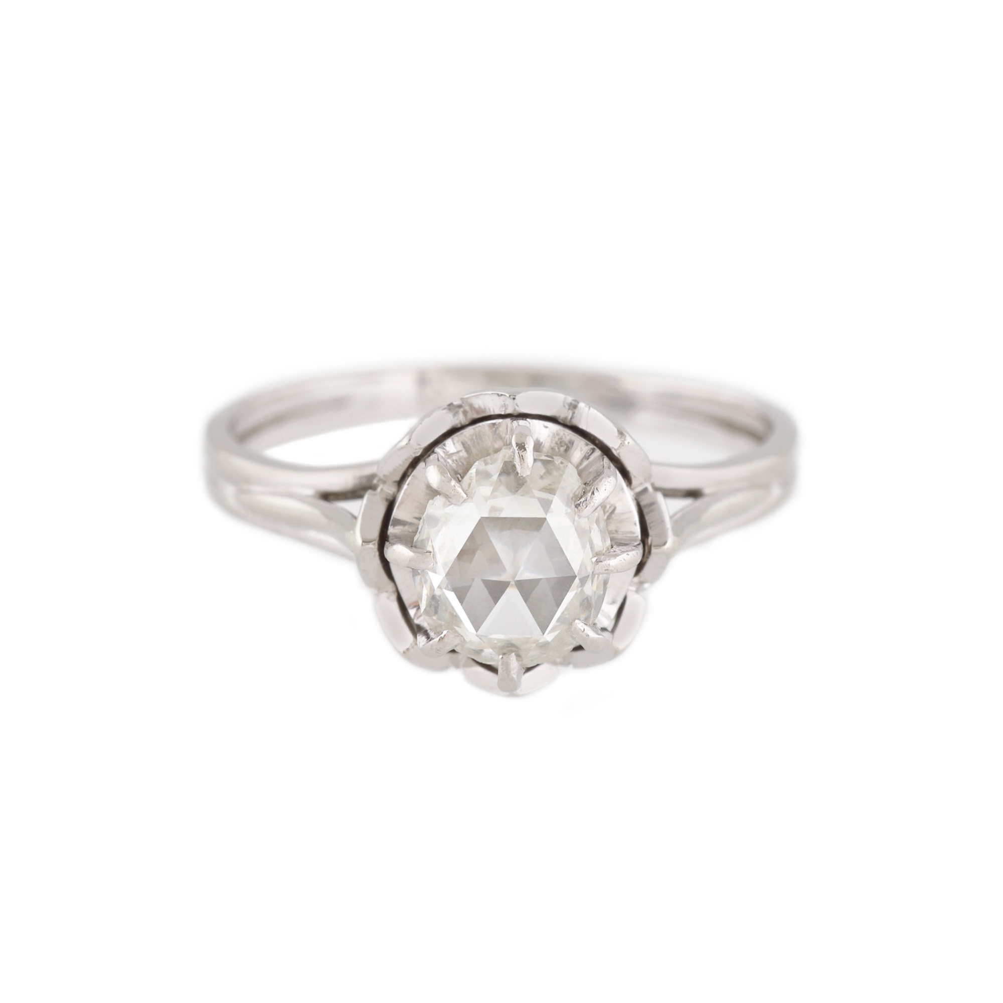 36. Inel Art Deco platină, ornat cu diamant central și briliante