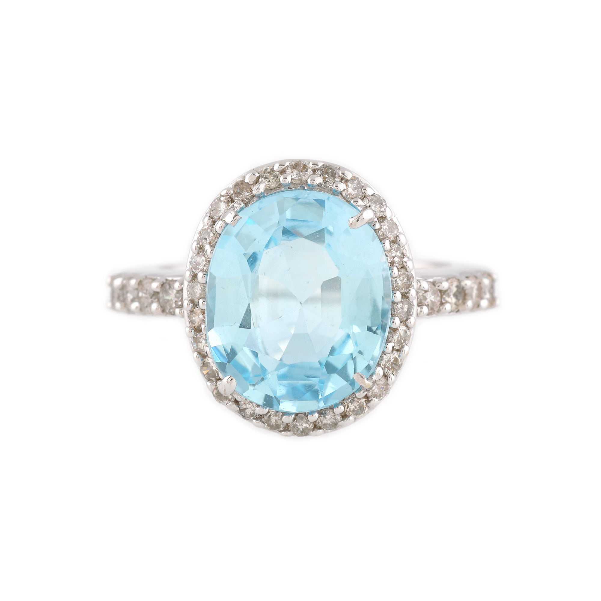 8. Inel din aur alb, decorat central cu topaz anturat de diamante