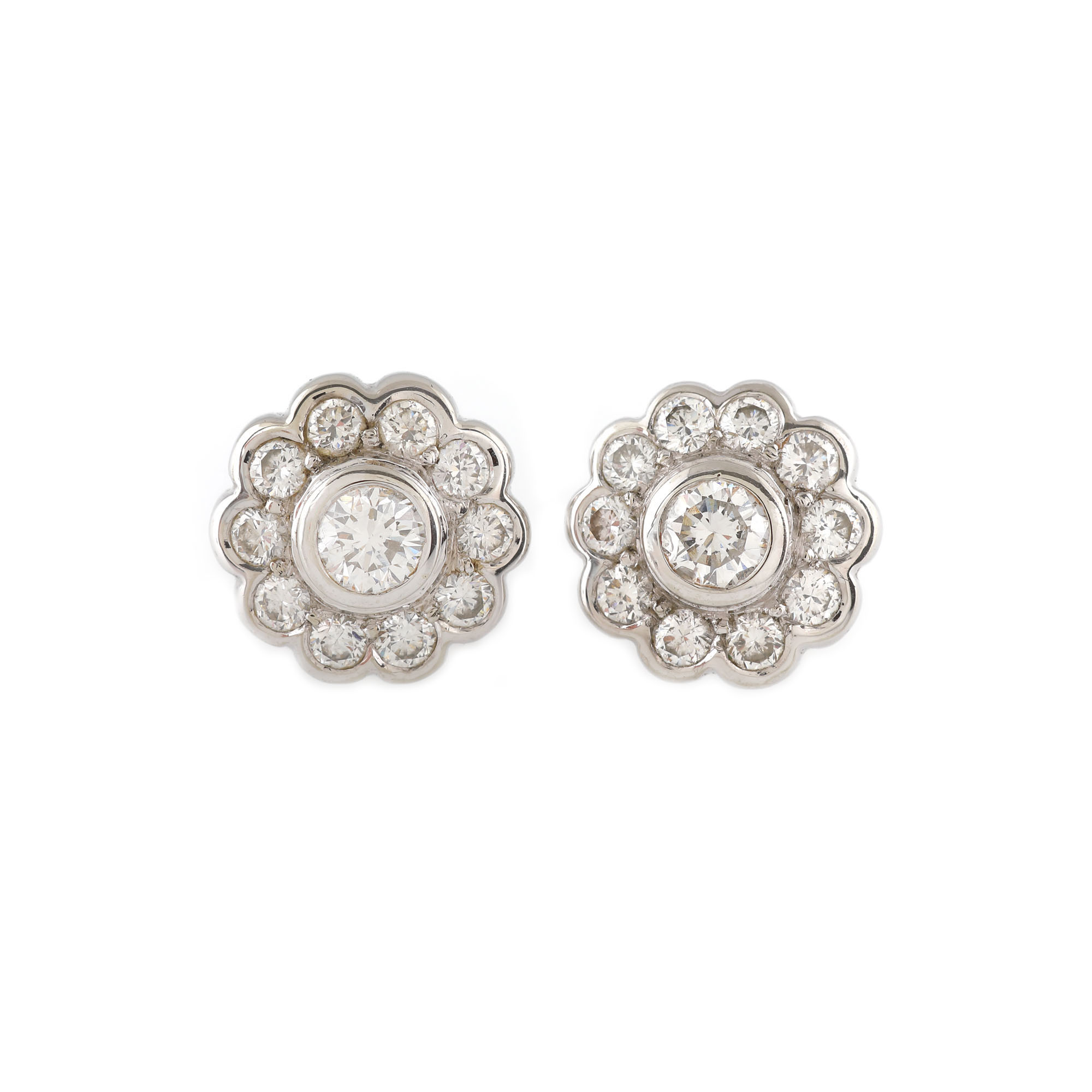 6. Pereche de cercei din aur alb, decorată cu flori de diamante
