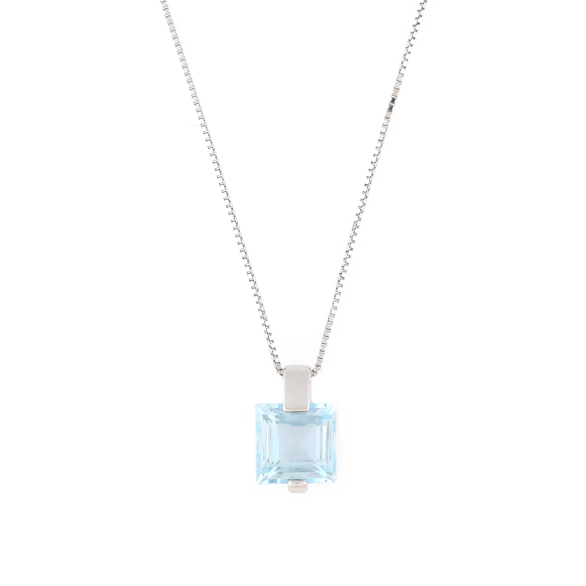 16. Lanț cu pandantiv din aur alb, decorat cu topaz