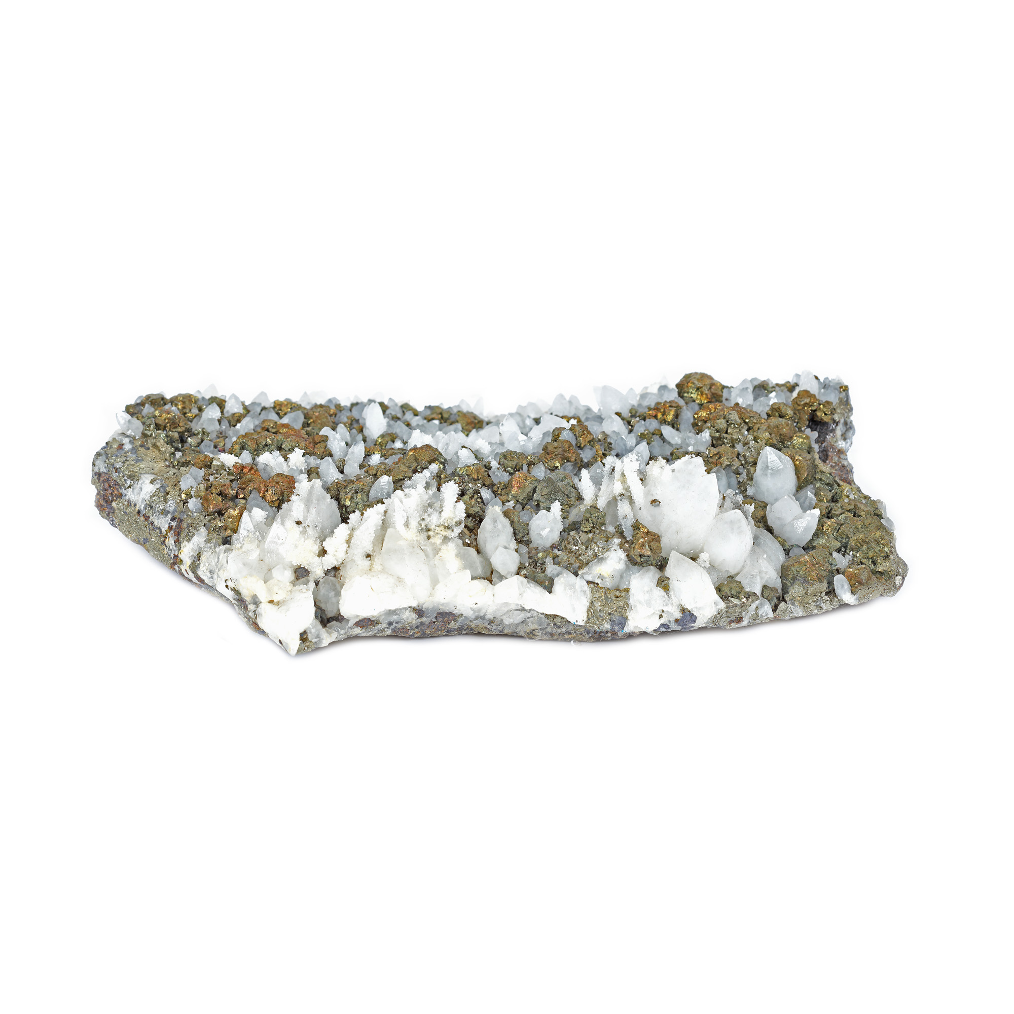 30. Cuarț cu cuarțit în frunză pe calcopirită și pirită, sector Bolduț, mina Cavnic