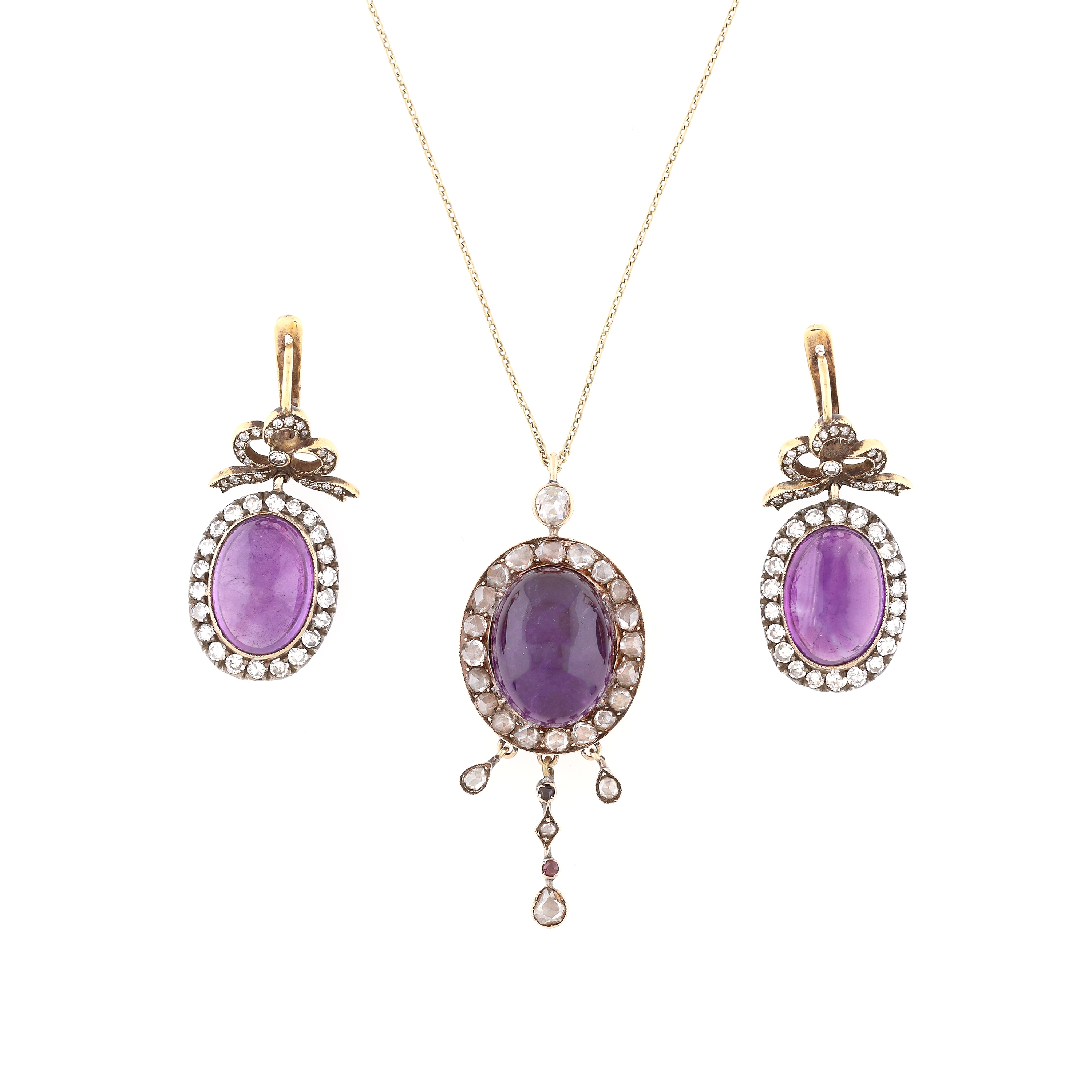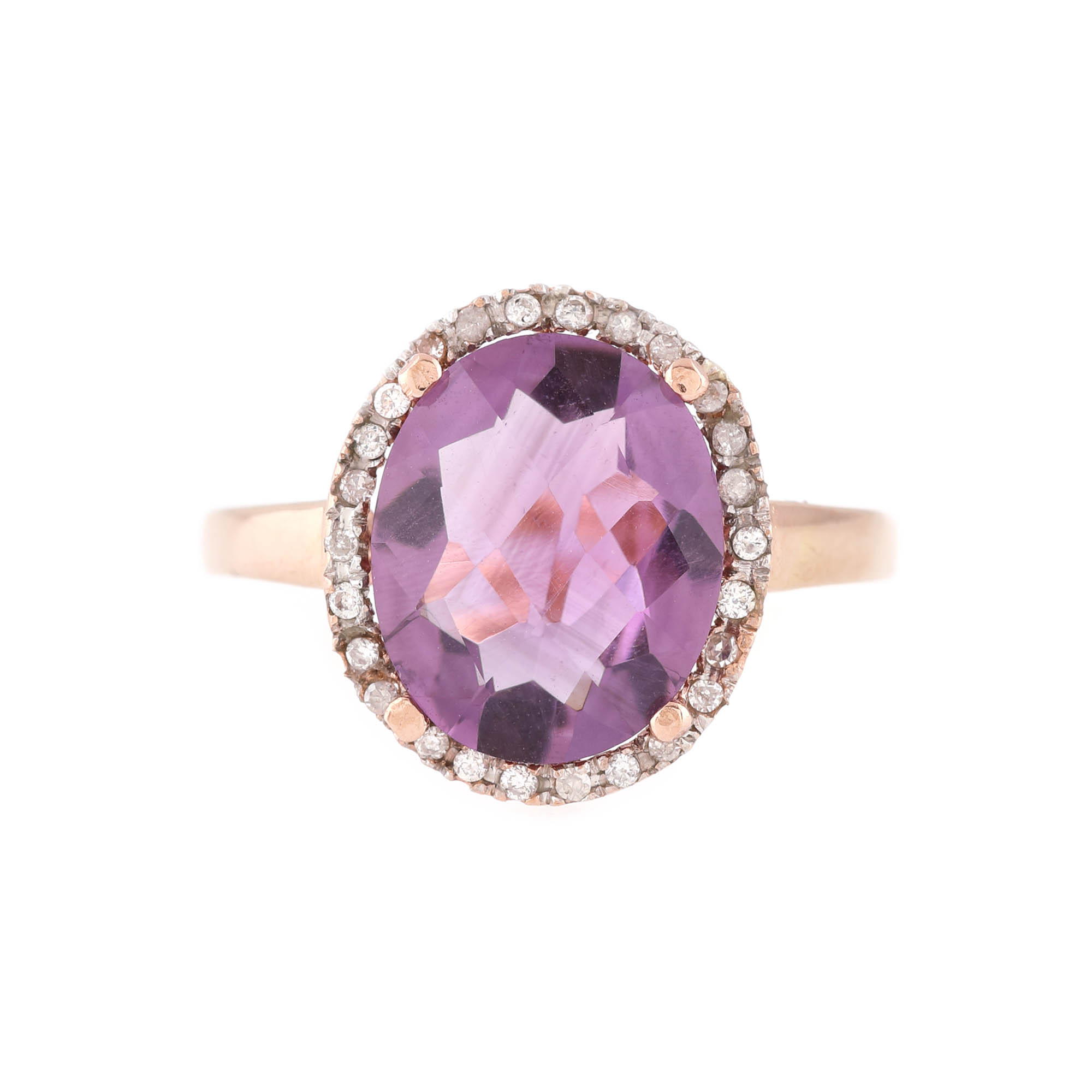 13. Inel din aur roz, decorat cu un ametist central, anturat de diamante