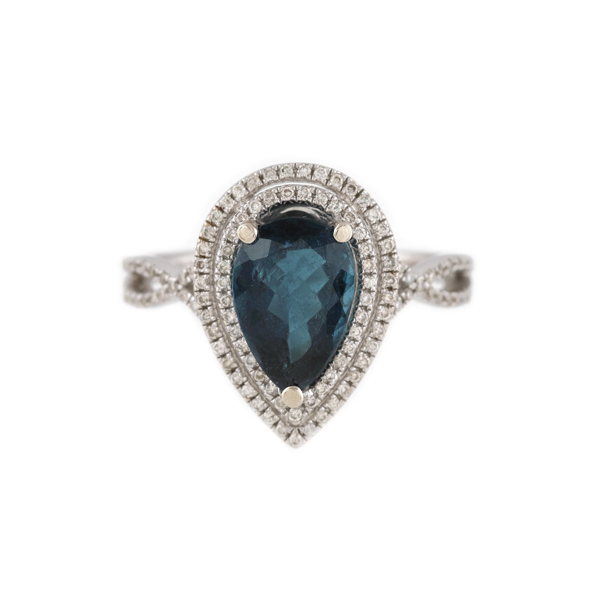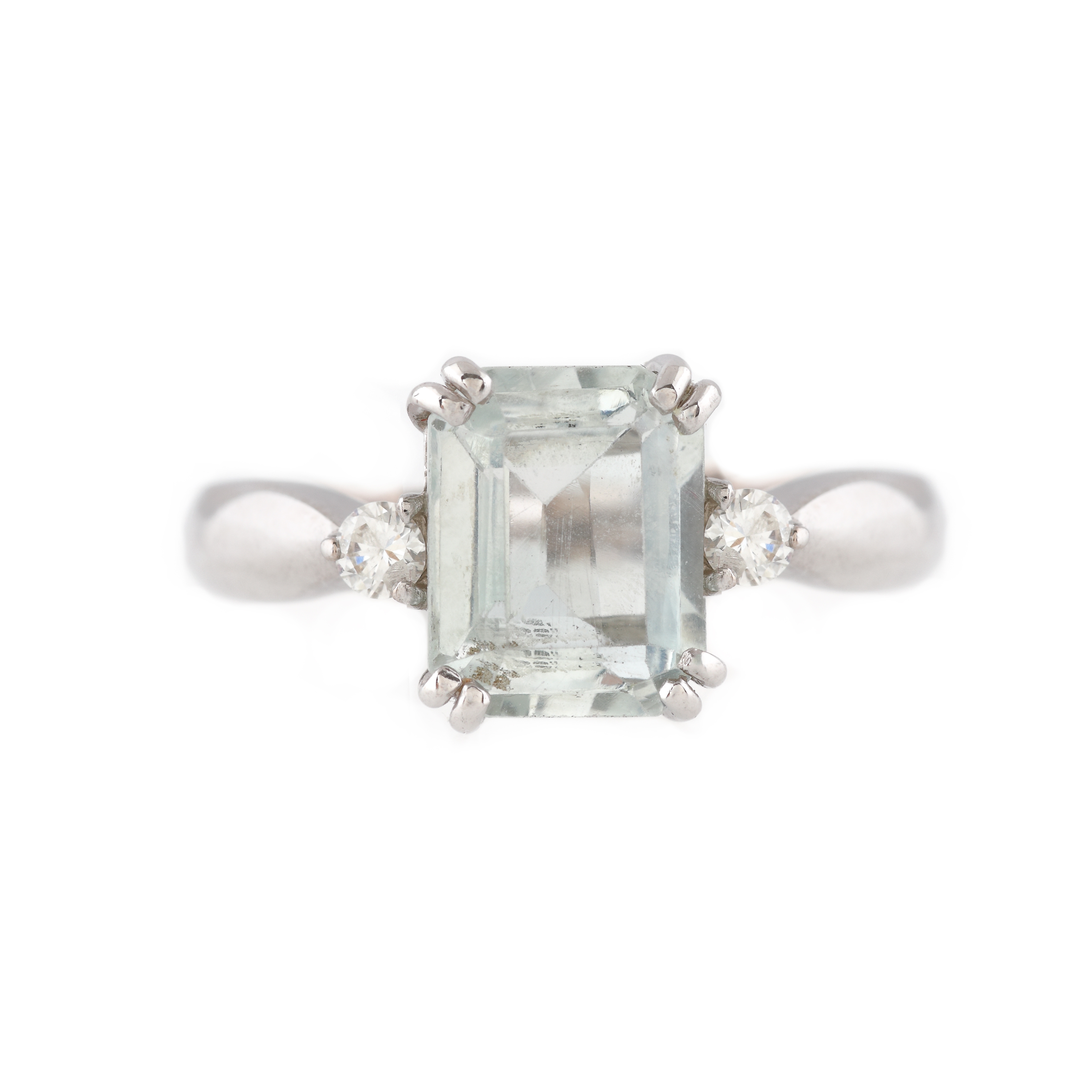 18. Inel din aur alb, decorat cu topaz și două diamante alăturate