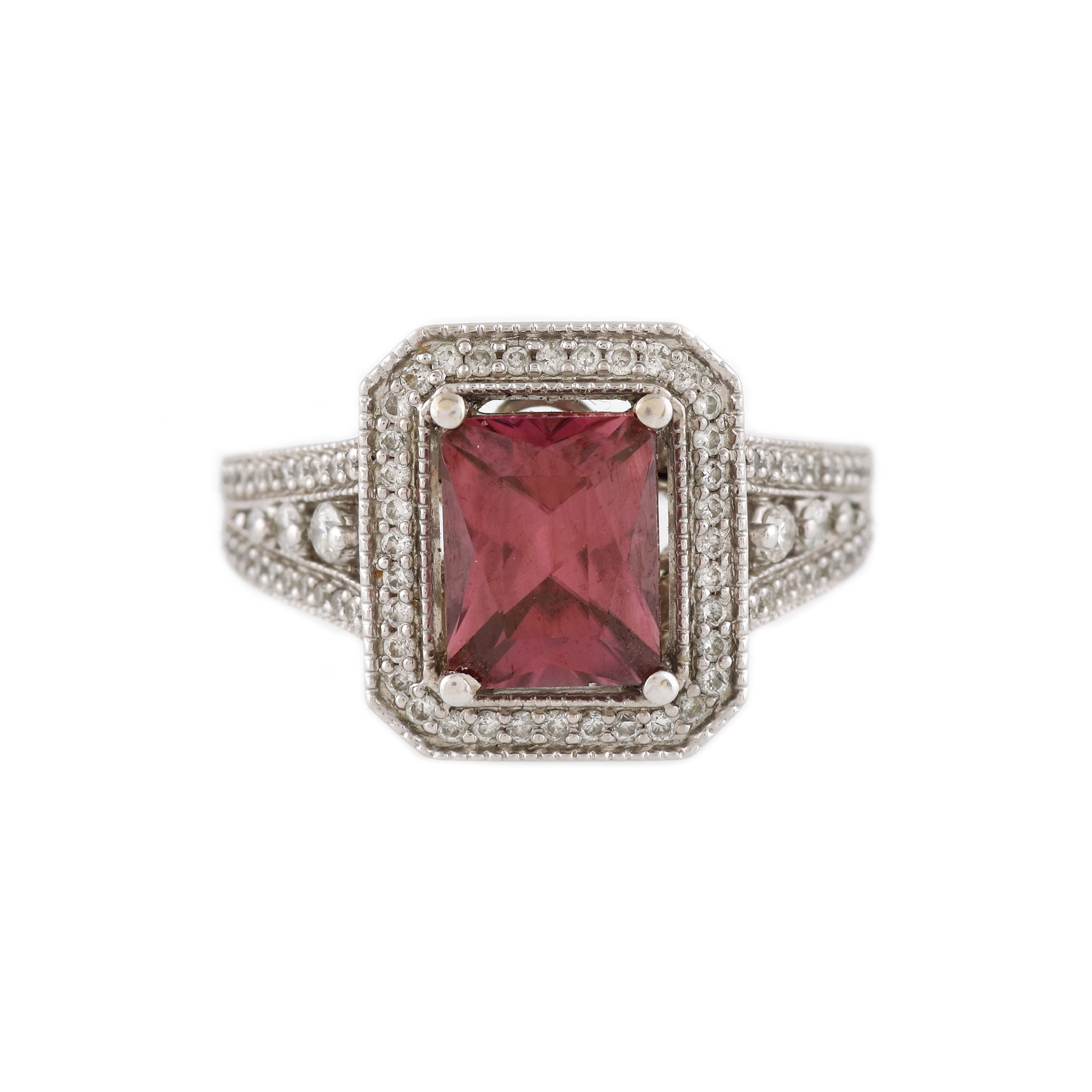 22. Inel din aur alb, decorat cu turmalină și diamante