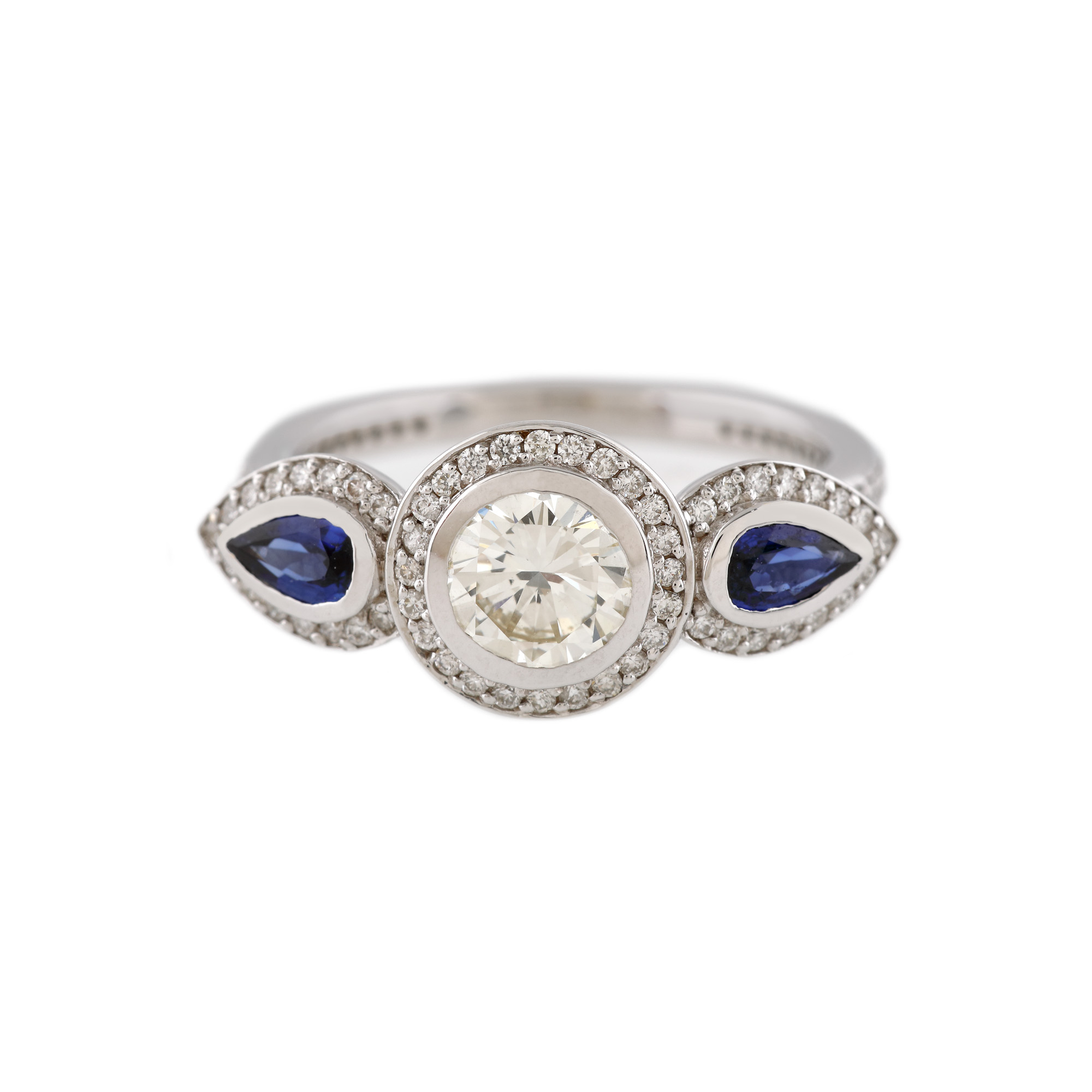 5. Inel Abelstedt din aur alb, decorat cu diamante și safir alb