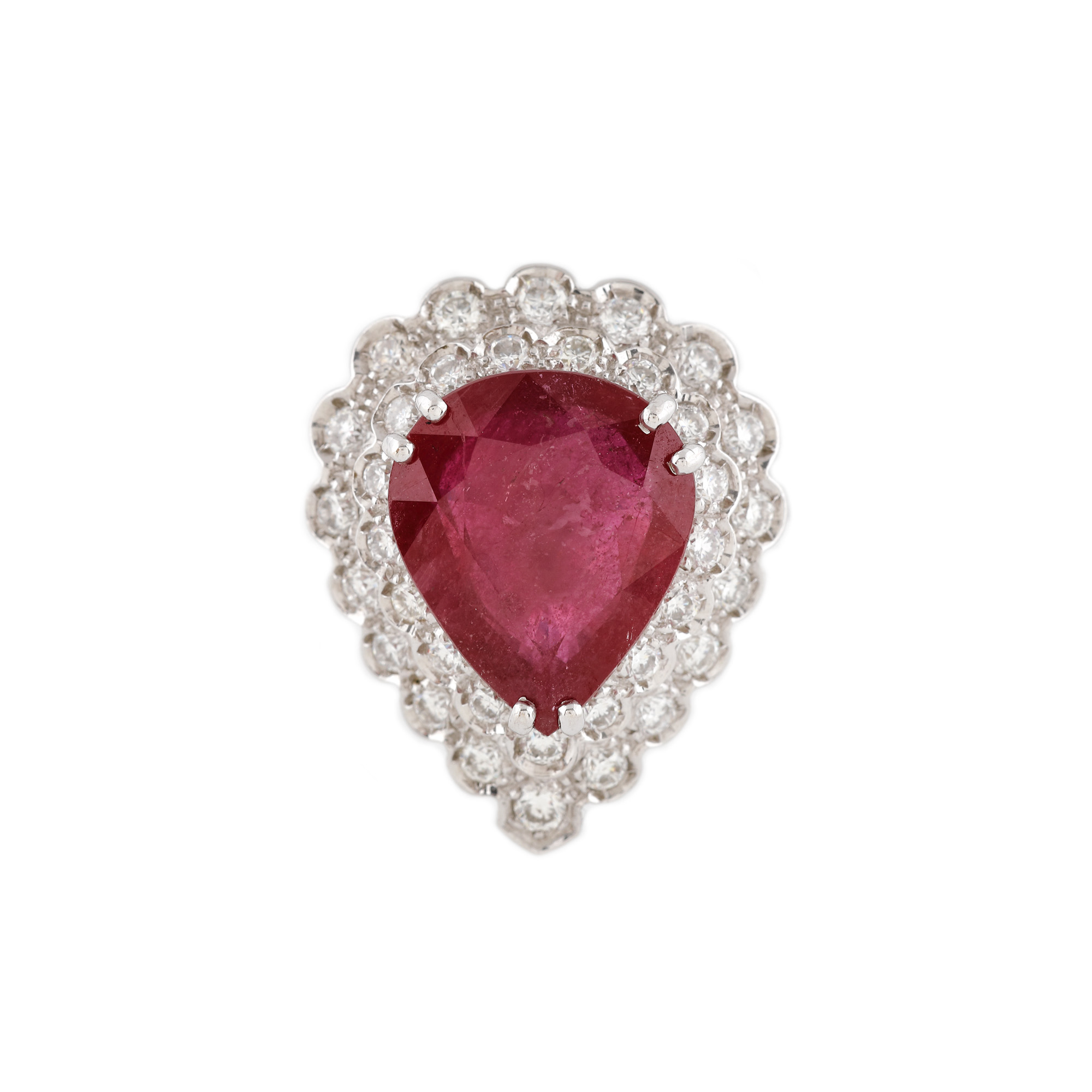 24. Inel din aur alb, decorat cu rubin și coroană de diamante