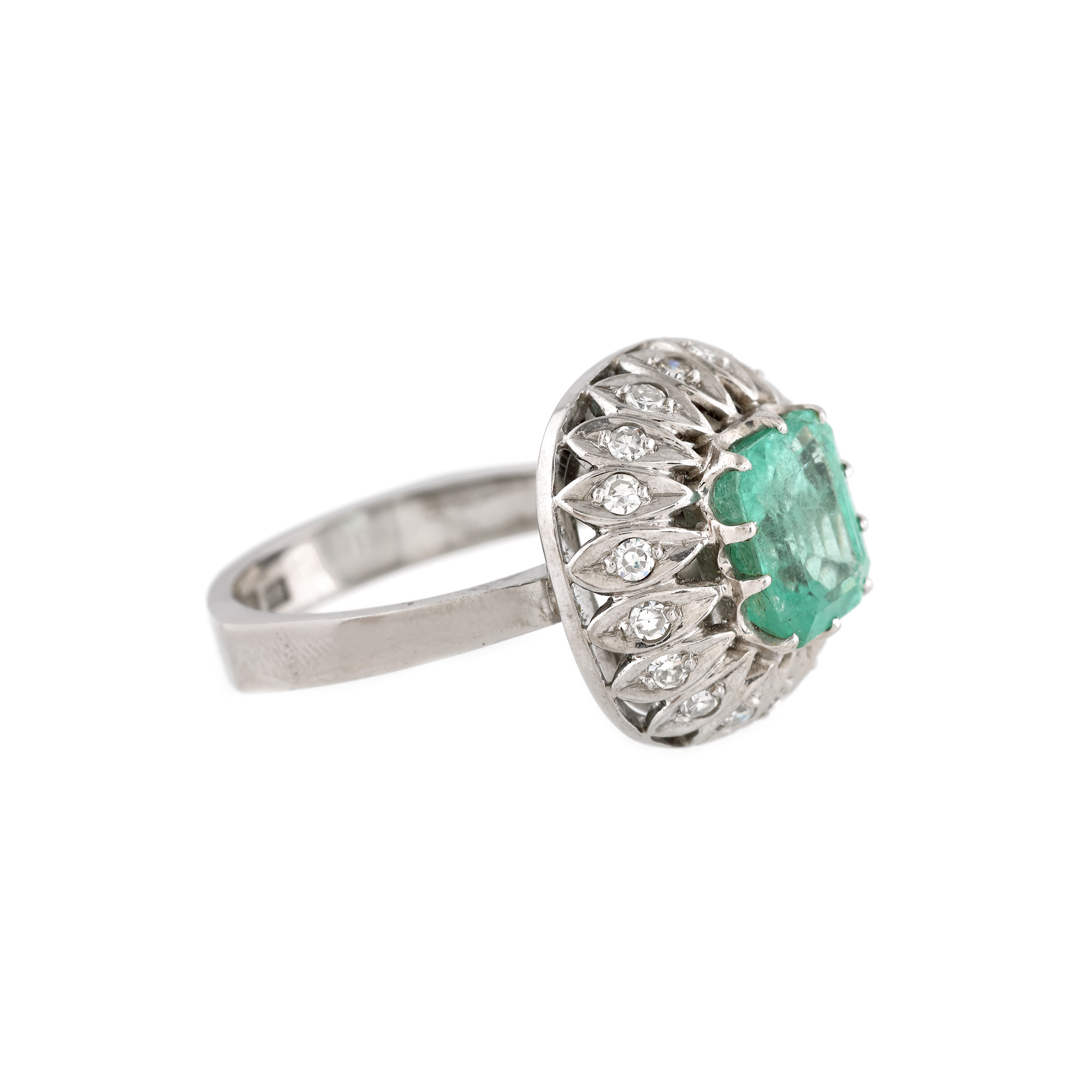 9. Inel din aur alb, decorat central cu smarald si diamante