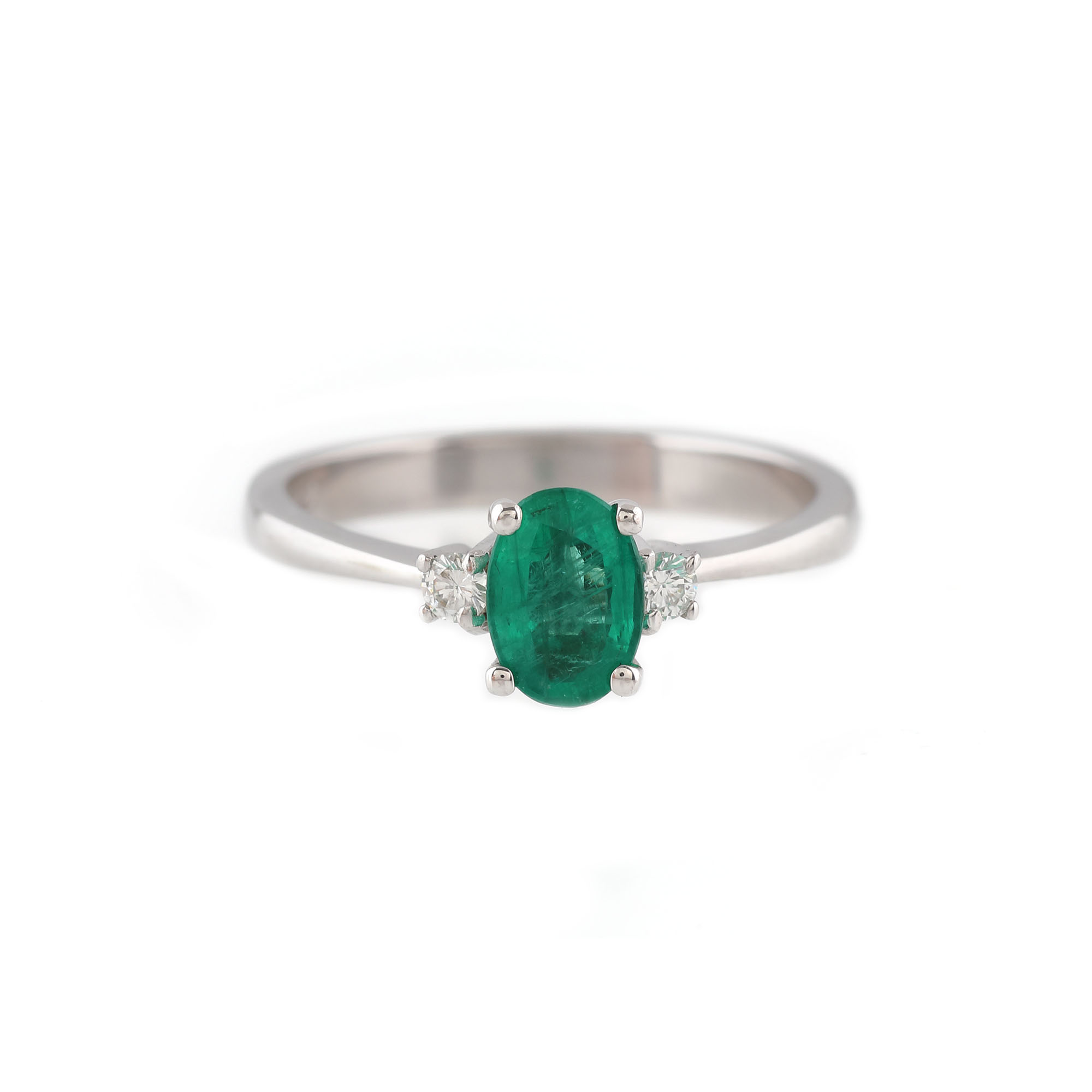 38. Inel din aur alb, decorat cu smarald și două diamante
