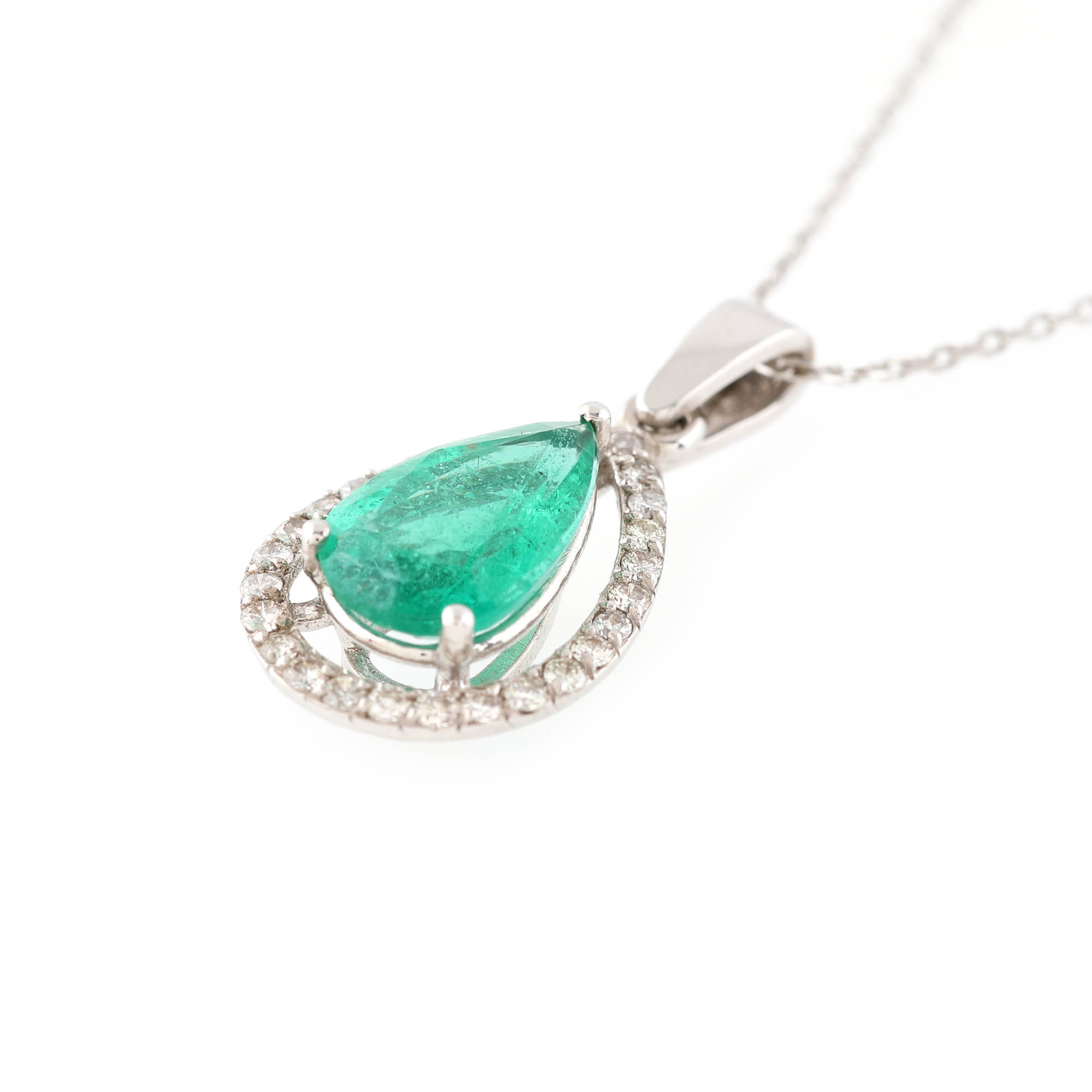 1 smarald pară fațetat, culoare verde, claritate SI, cca. 1,25 ct. și 27 diamante rotunde briliant, culoare G-H, claritate VS-SI1, cca. 0,19 ct.