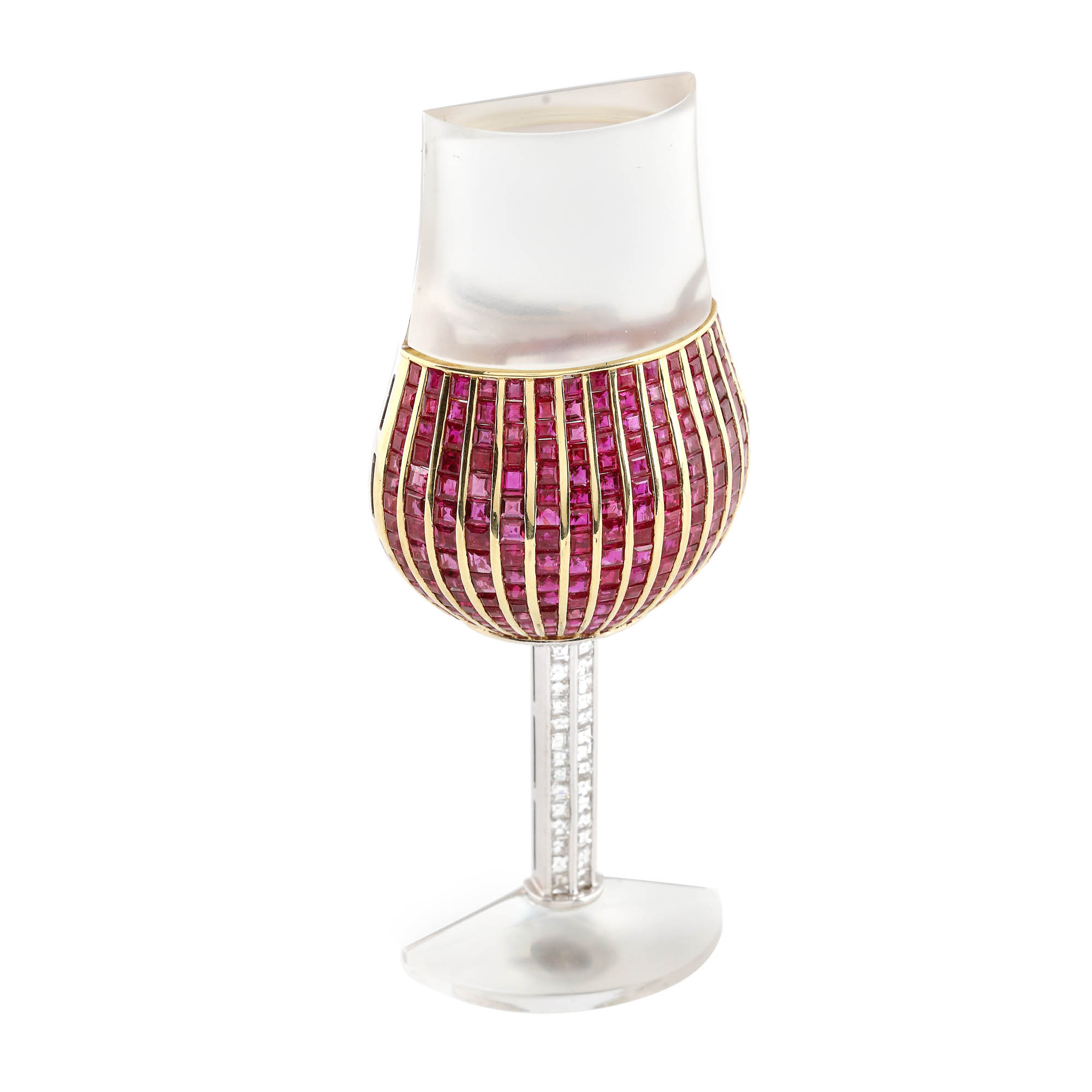 181. "Verre de vin" - broșă din aur în două culori, pavată cu rubine și diamante