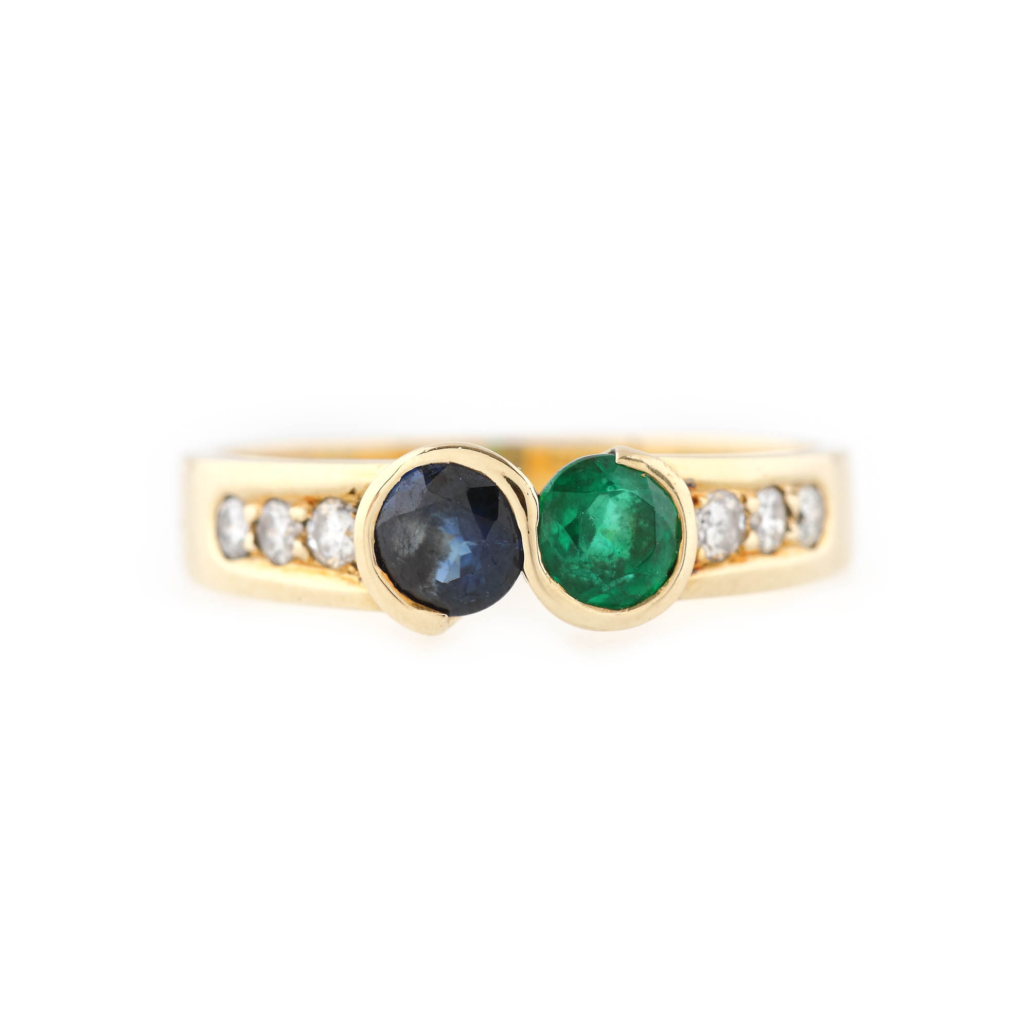 154. Inel din aur, decorat cu smarald, safir și diamante