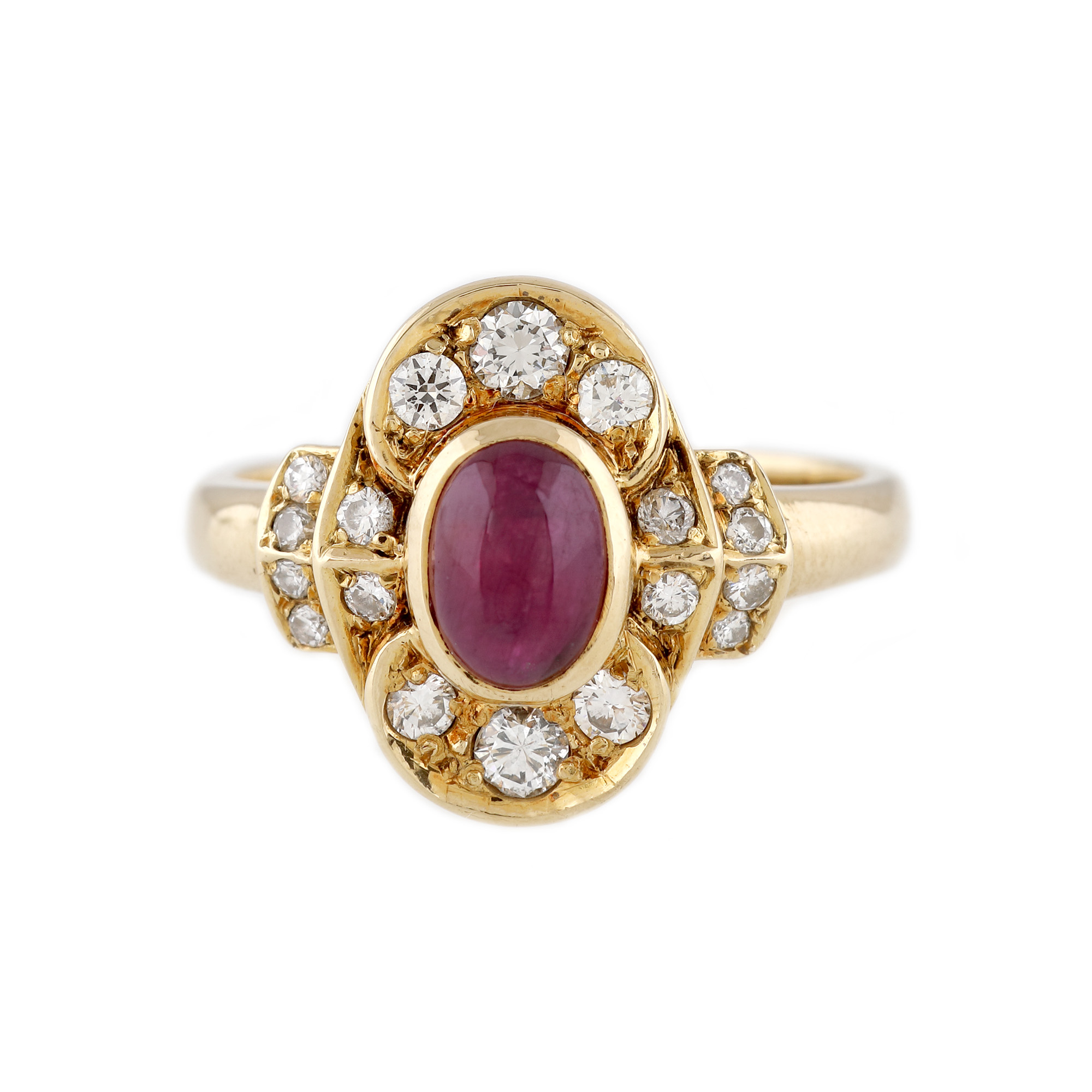 178. Inel din aur, decorat central cu rubin caboșon și diamante