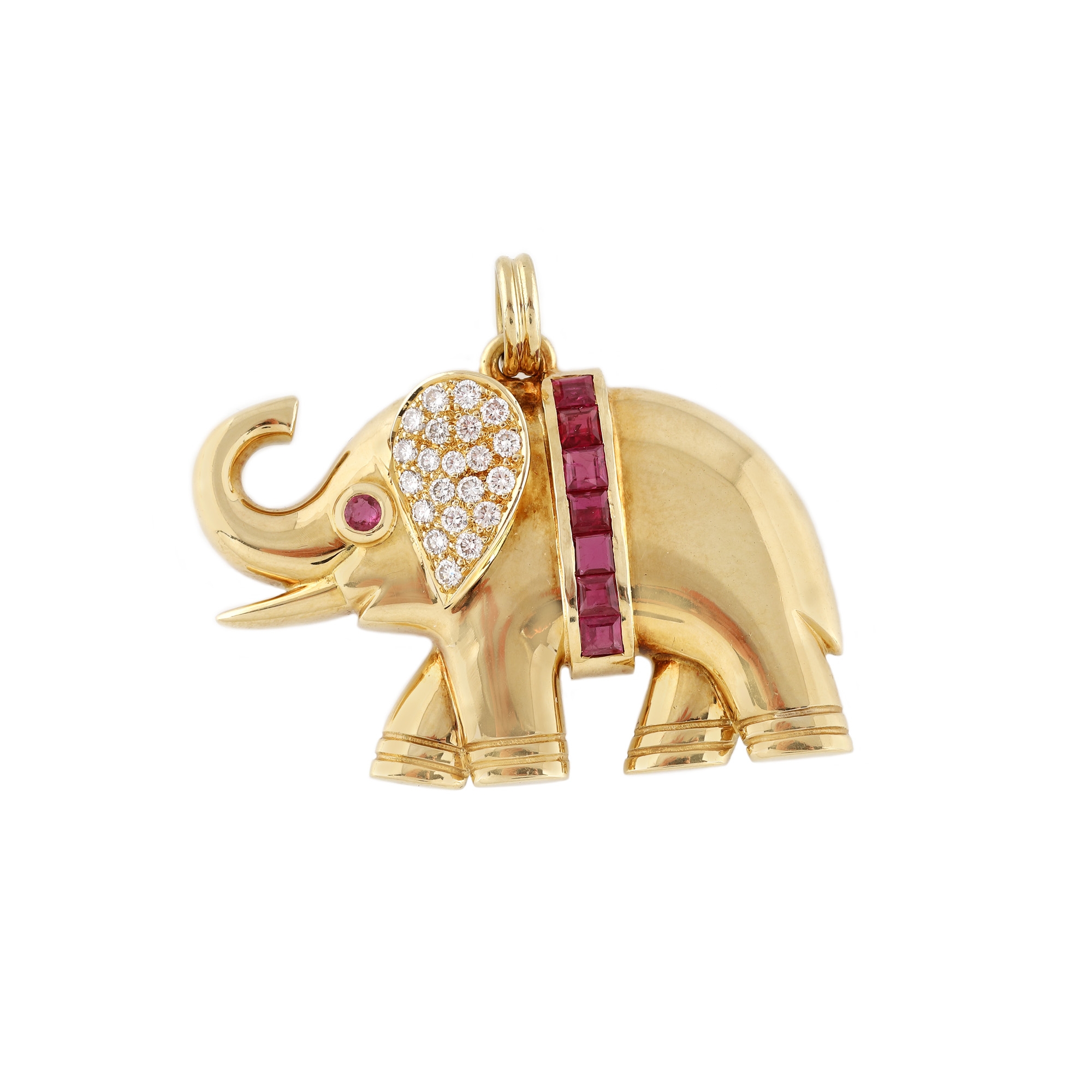 188. Pandantiv din aur, în formă de elefant, ornat cu rubine și diamante