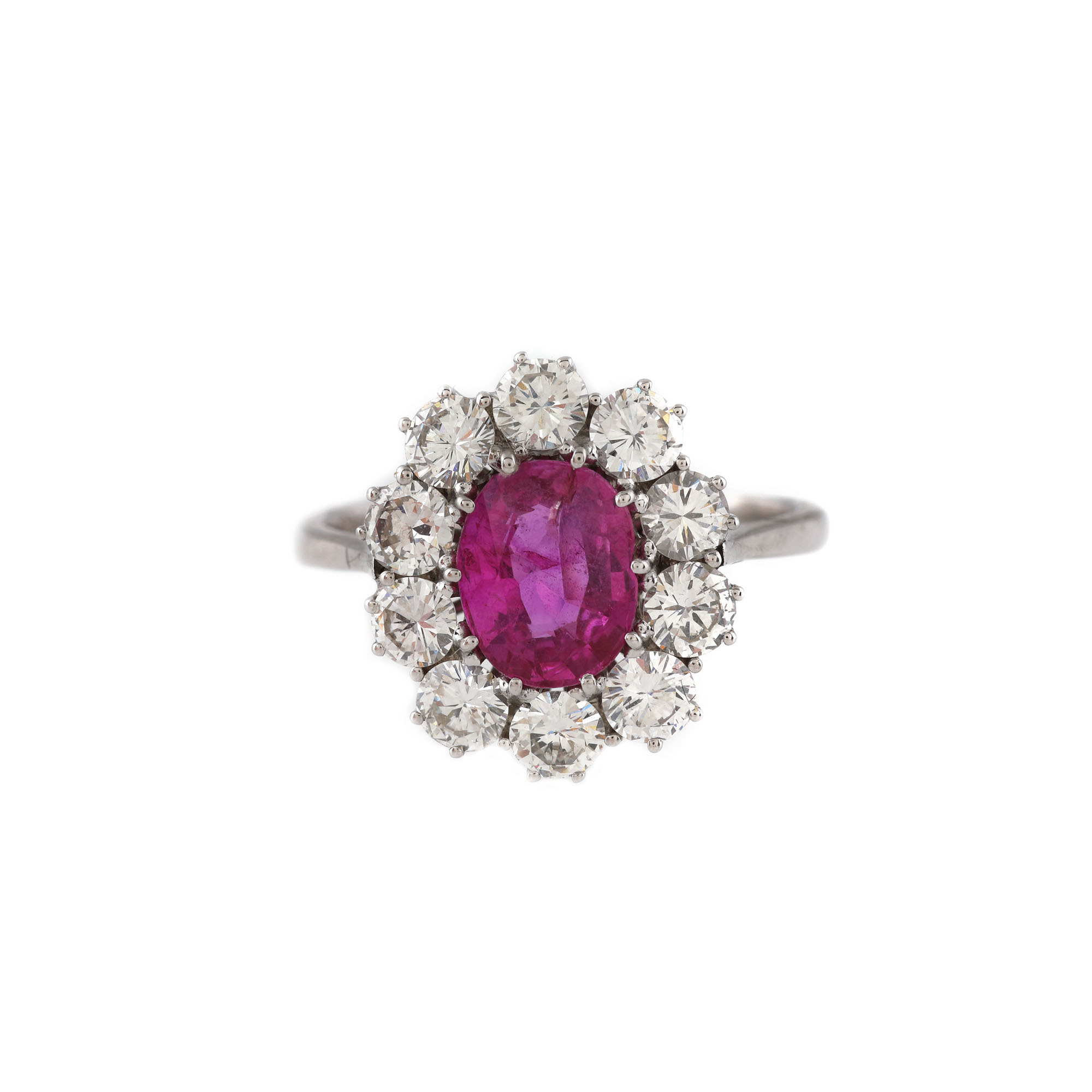 186. Inel din aur alb, decorat cu safir roz și diamante