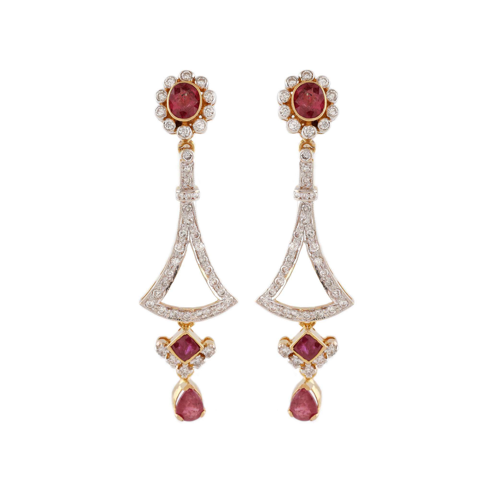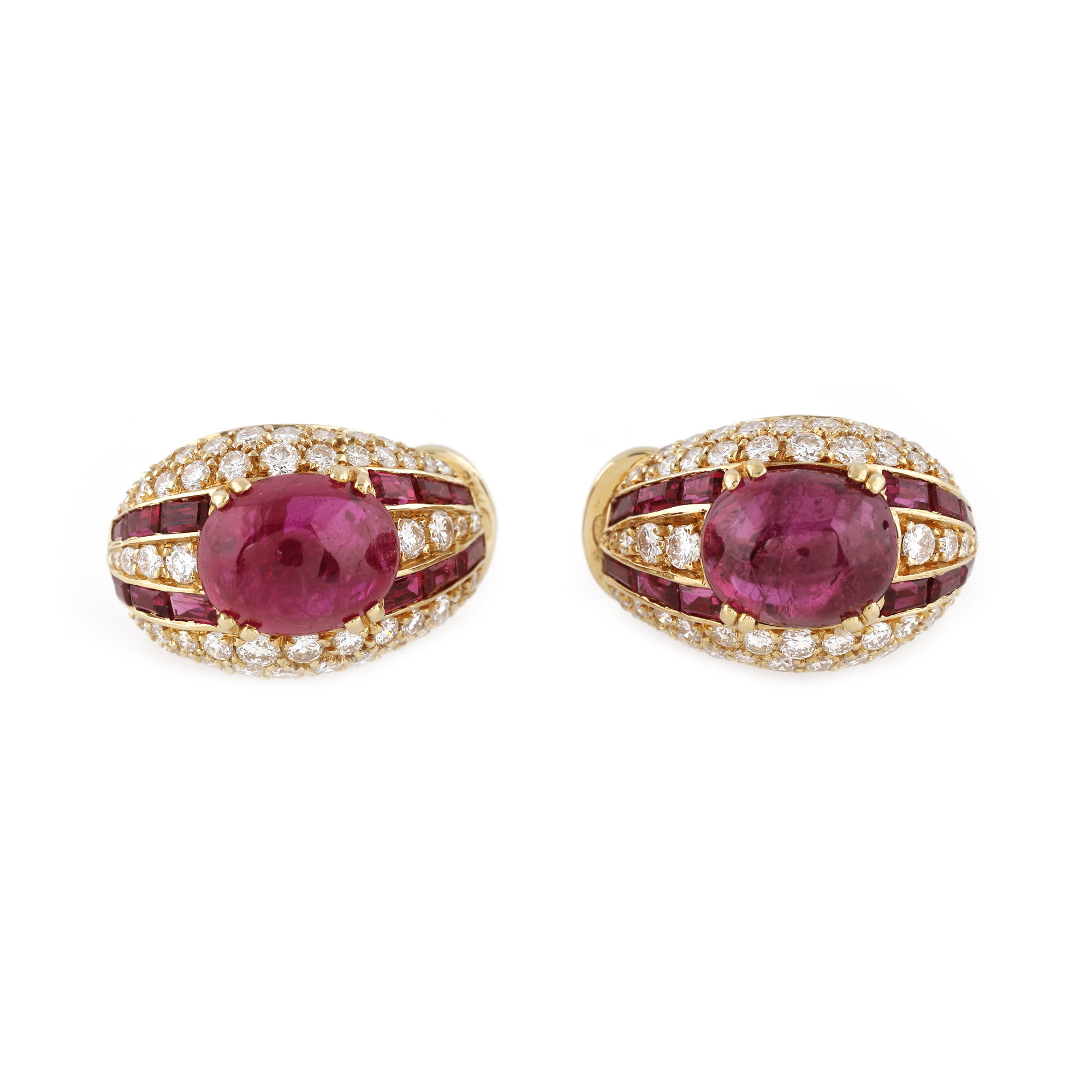 183. Pereche de cercei din aur, decorată cu rubine și diamante
