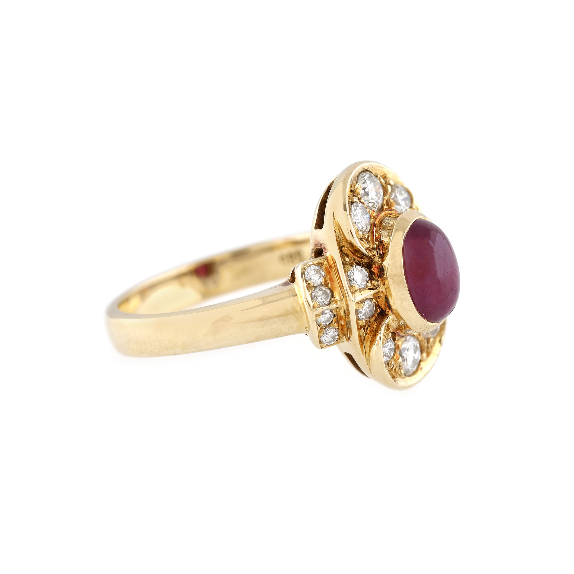 178. Inel din aur, decorat central cu rubin caboșon și diamante