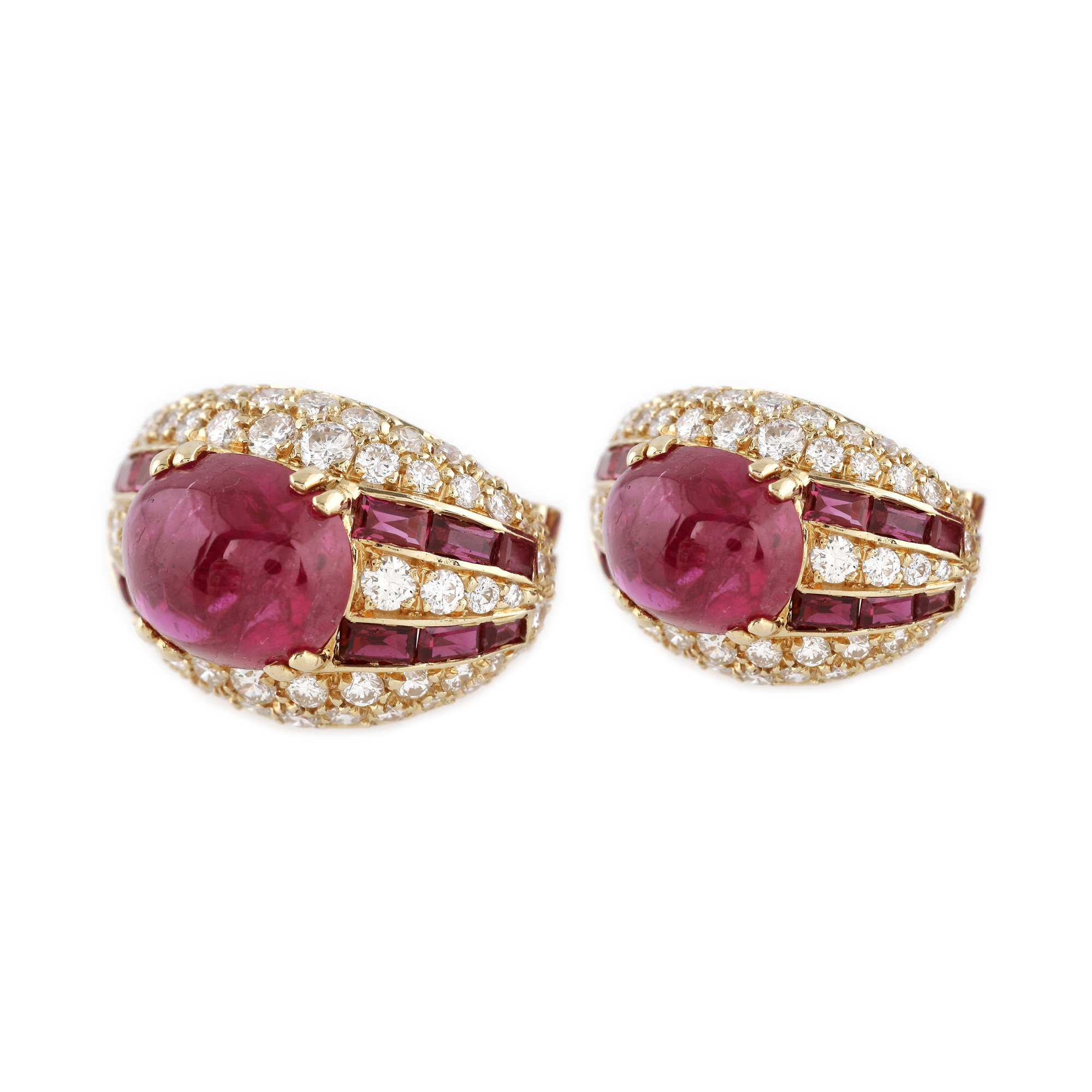 179. Pereche de cercei din aur, decorată cu rubine și diamante