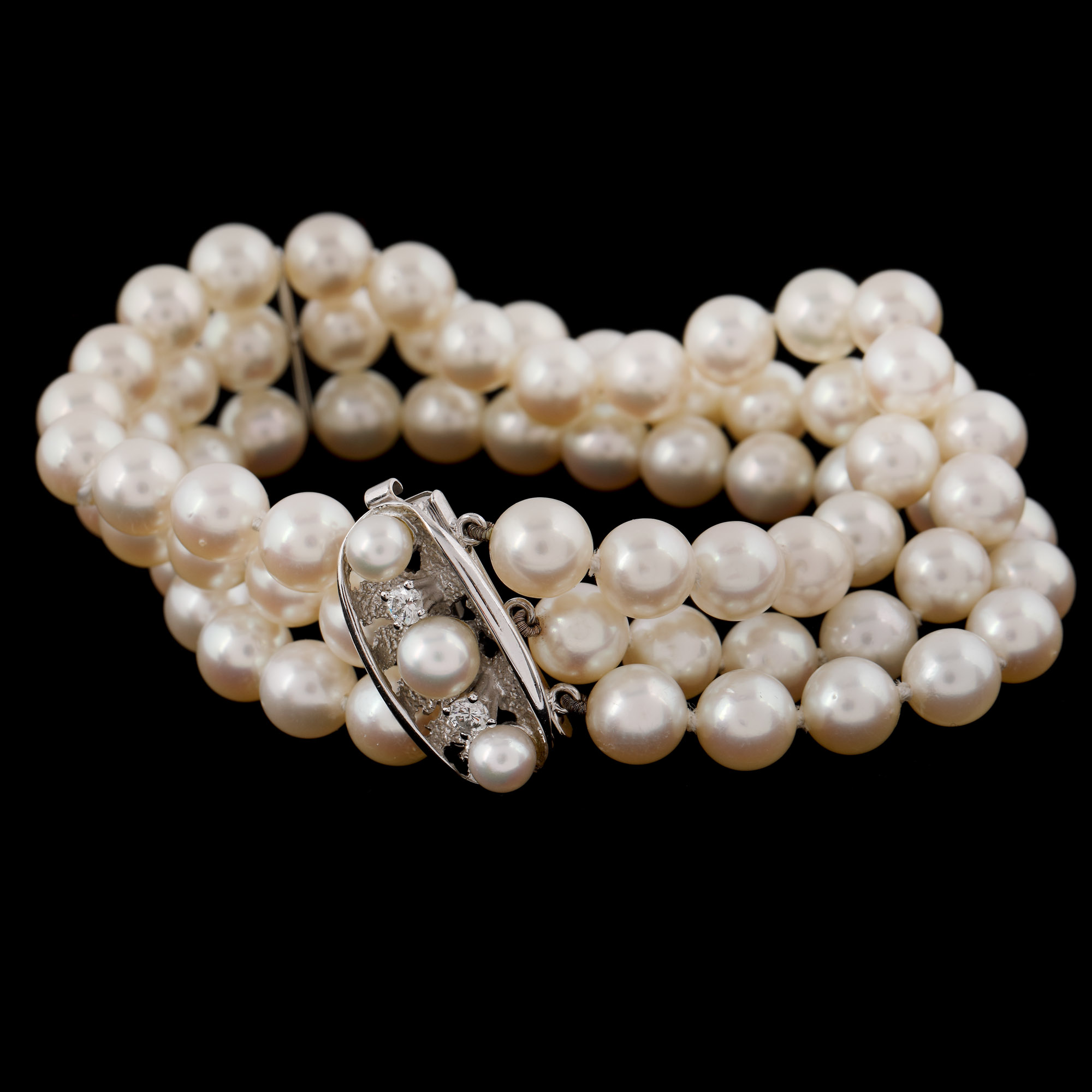 28. Brățară din perle, cu închizătoare din aur alb decorată cu perle și diamante