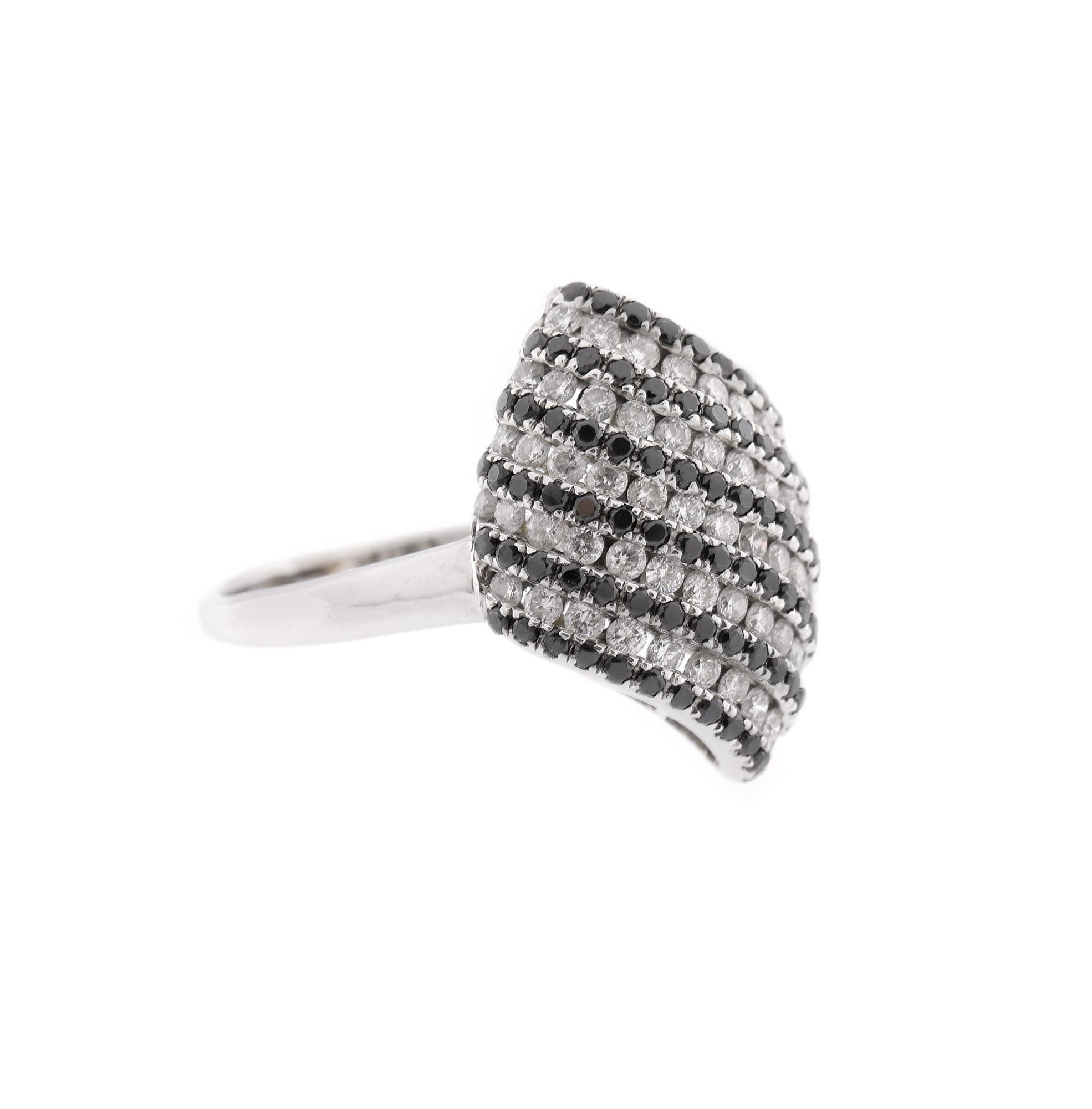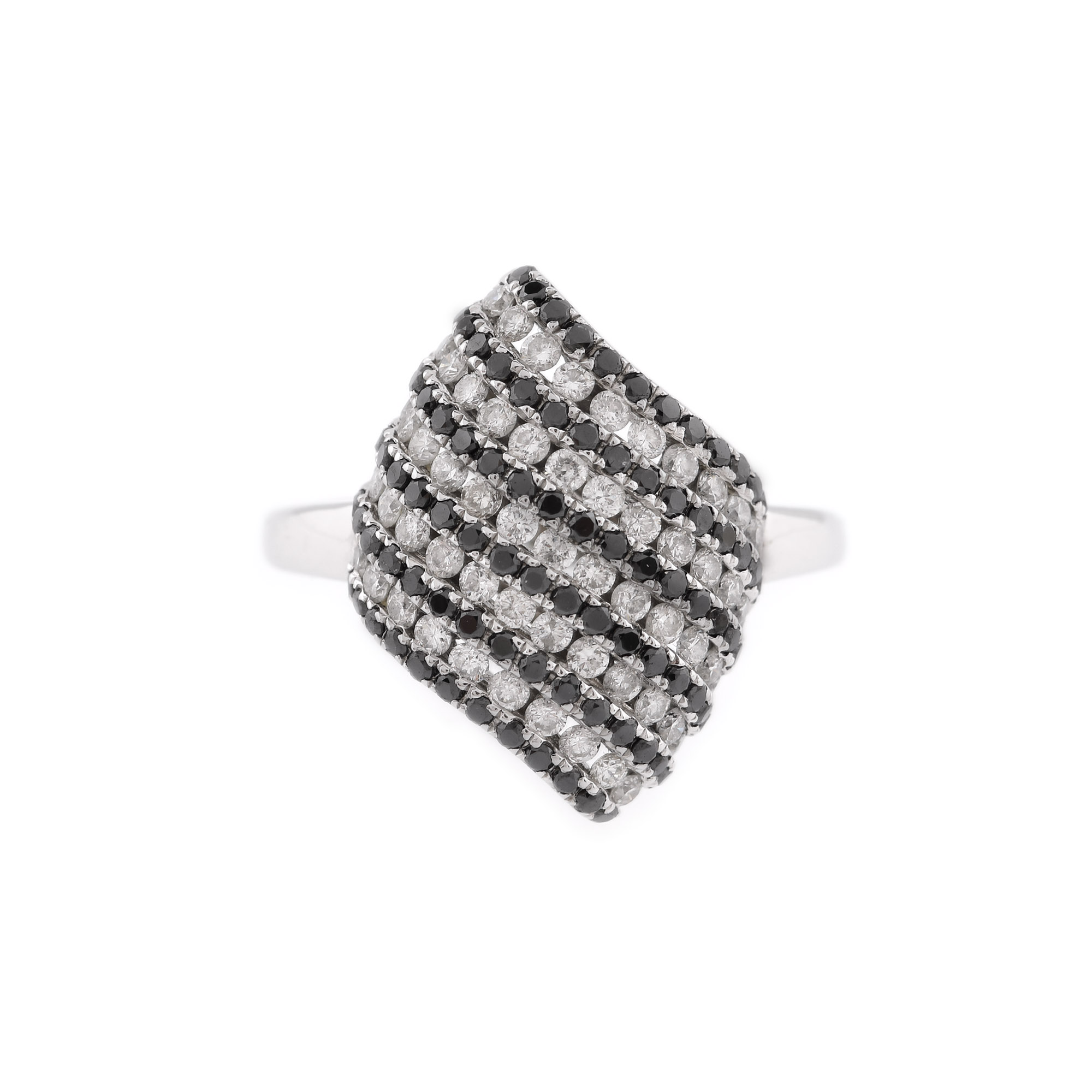 42. Inel din aur alb, ornat cu diamante albe și negre
