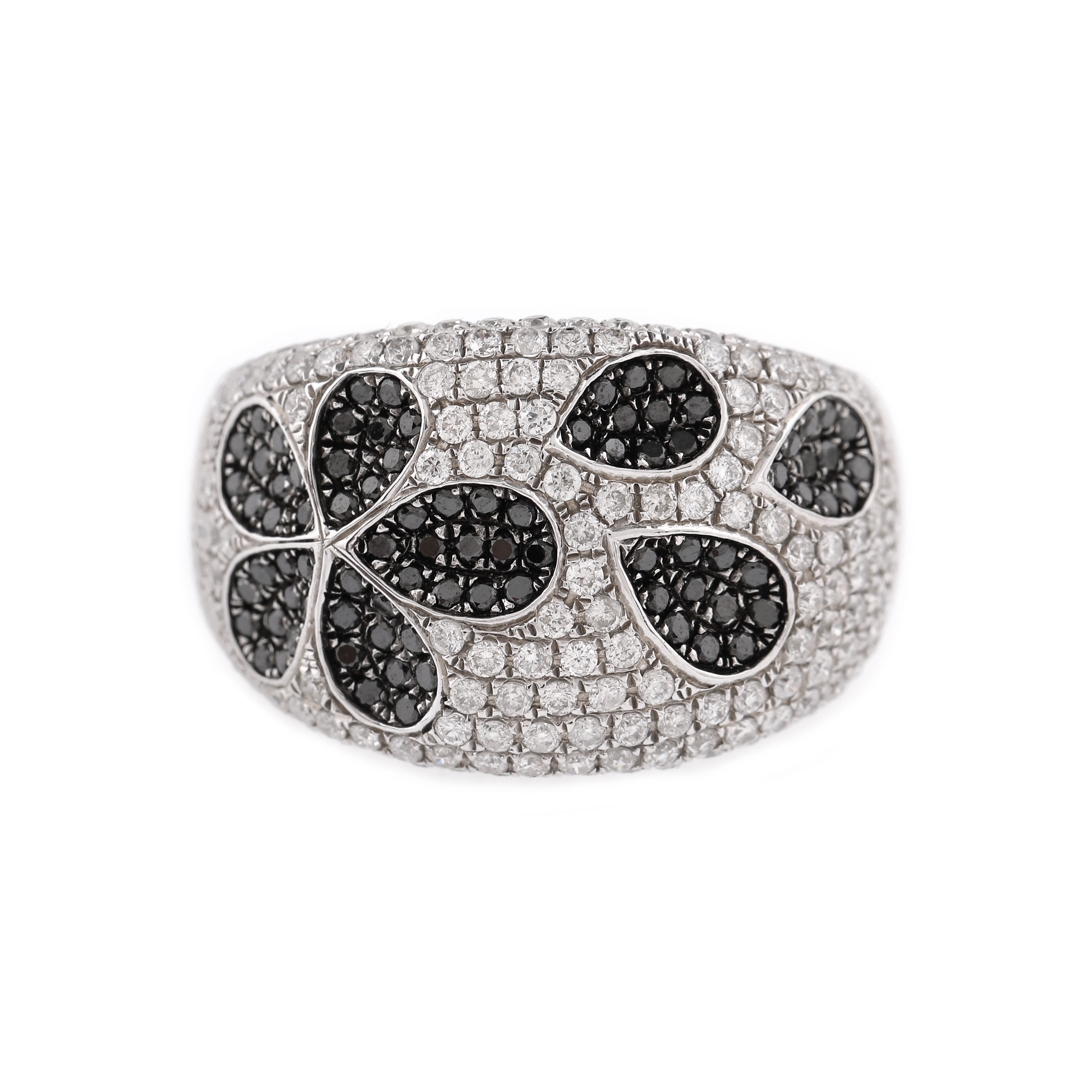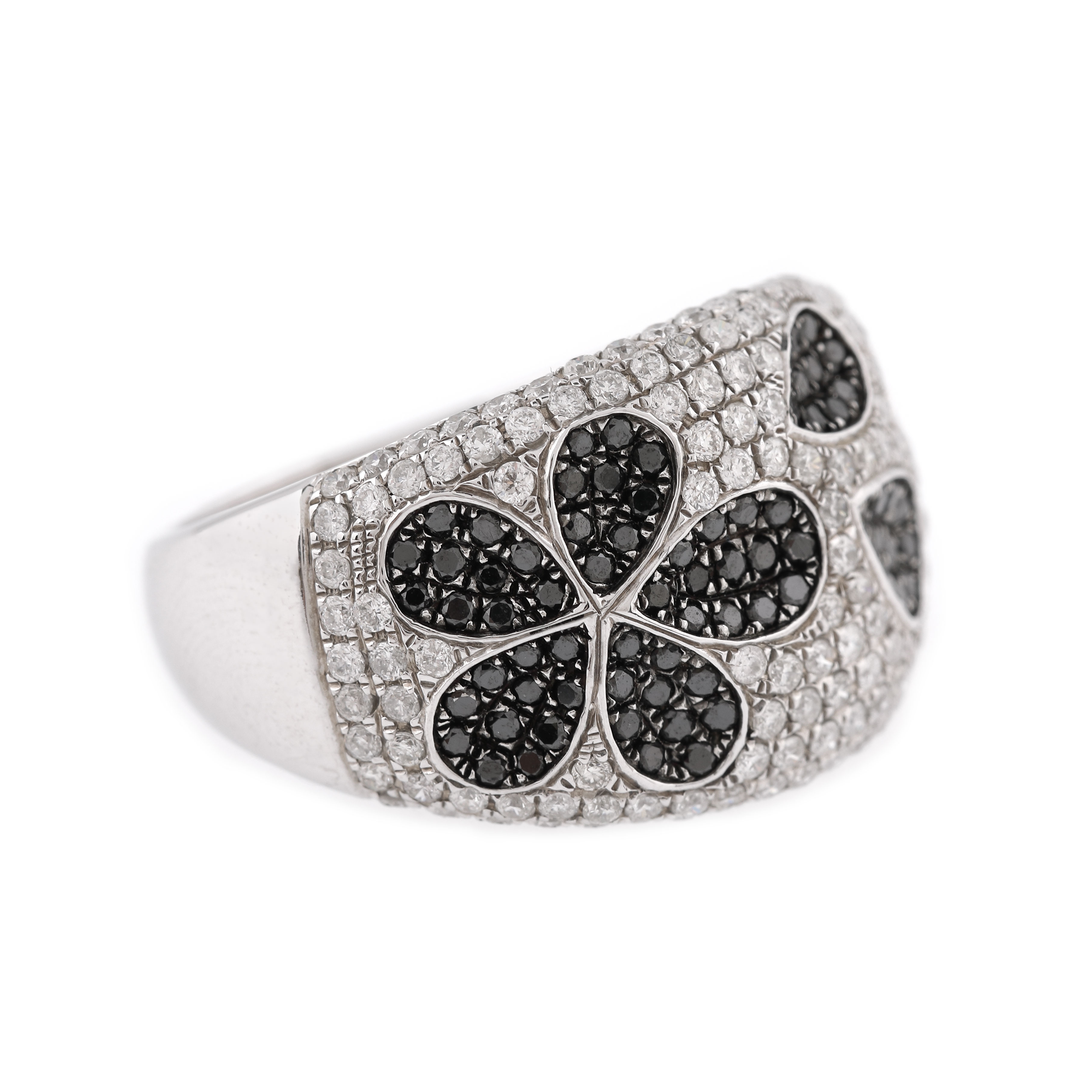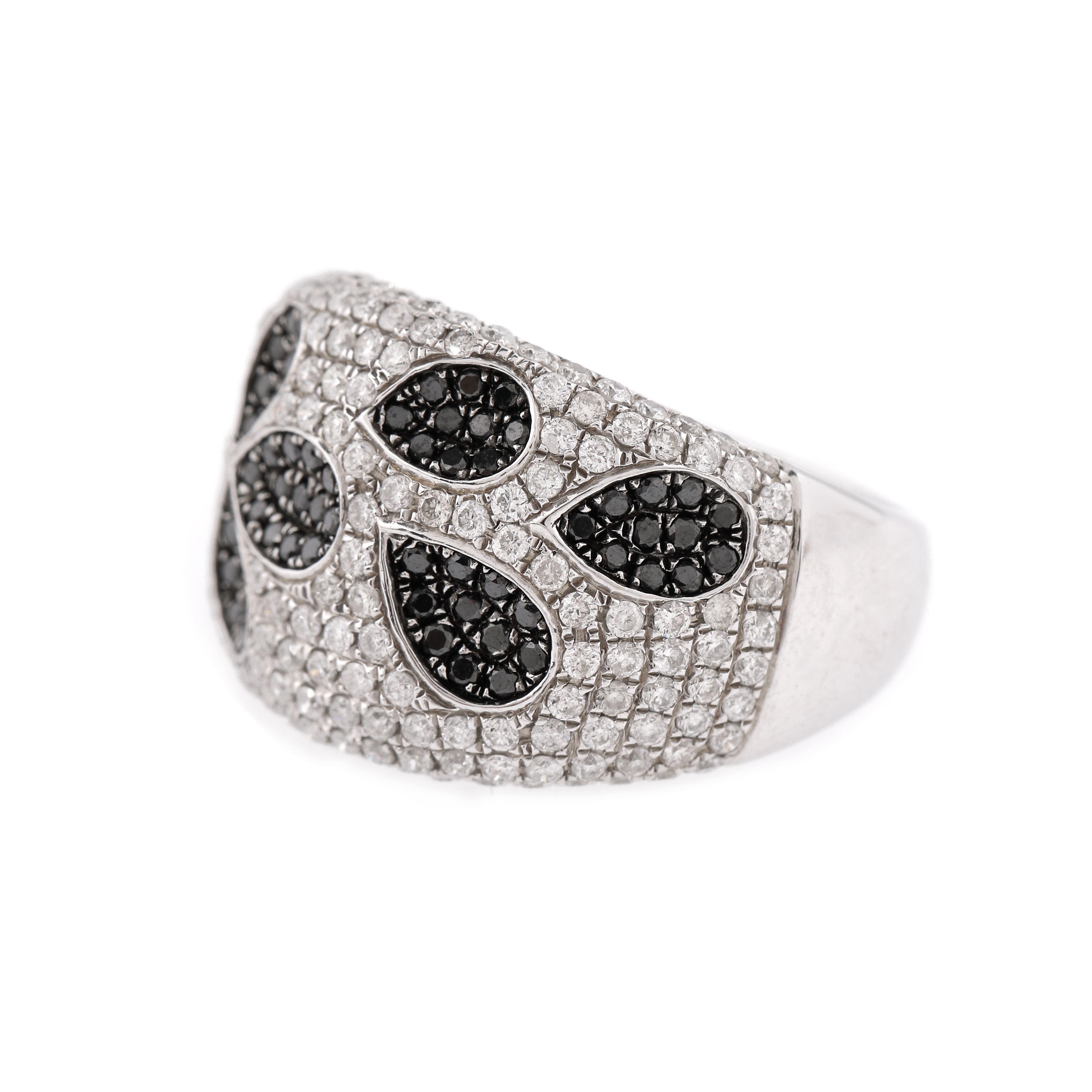 40. Inel din aur alb, pavat cu diamante albe și negre