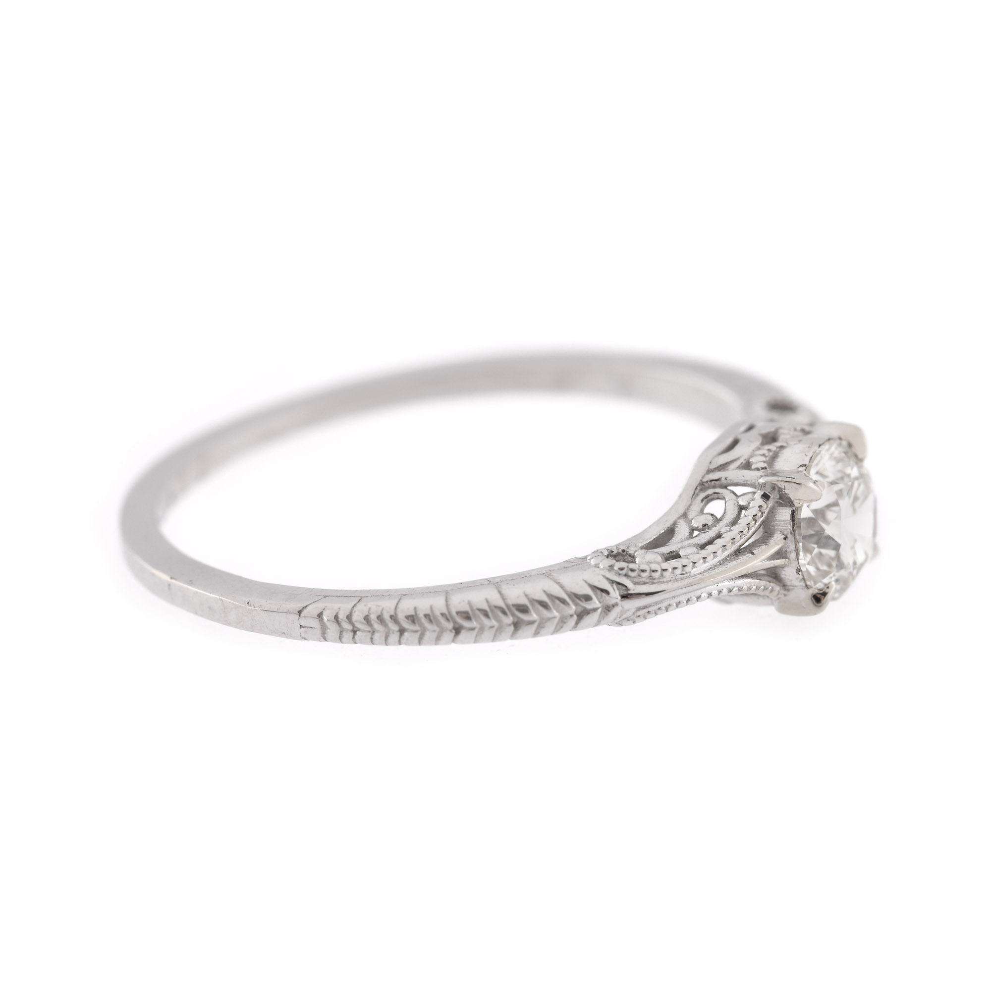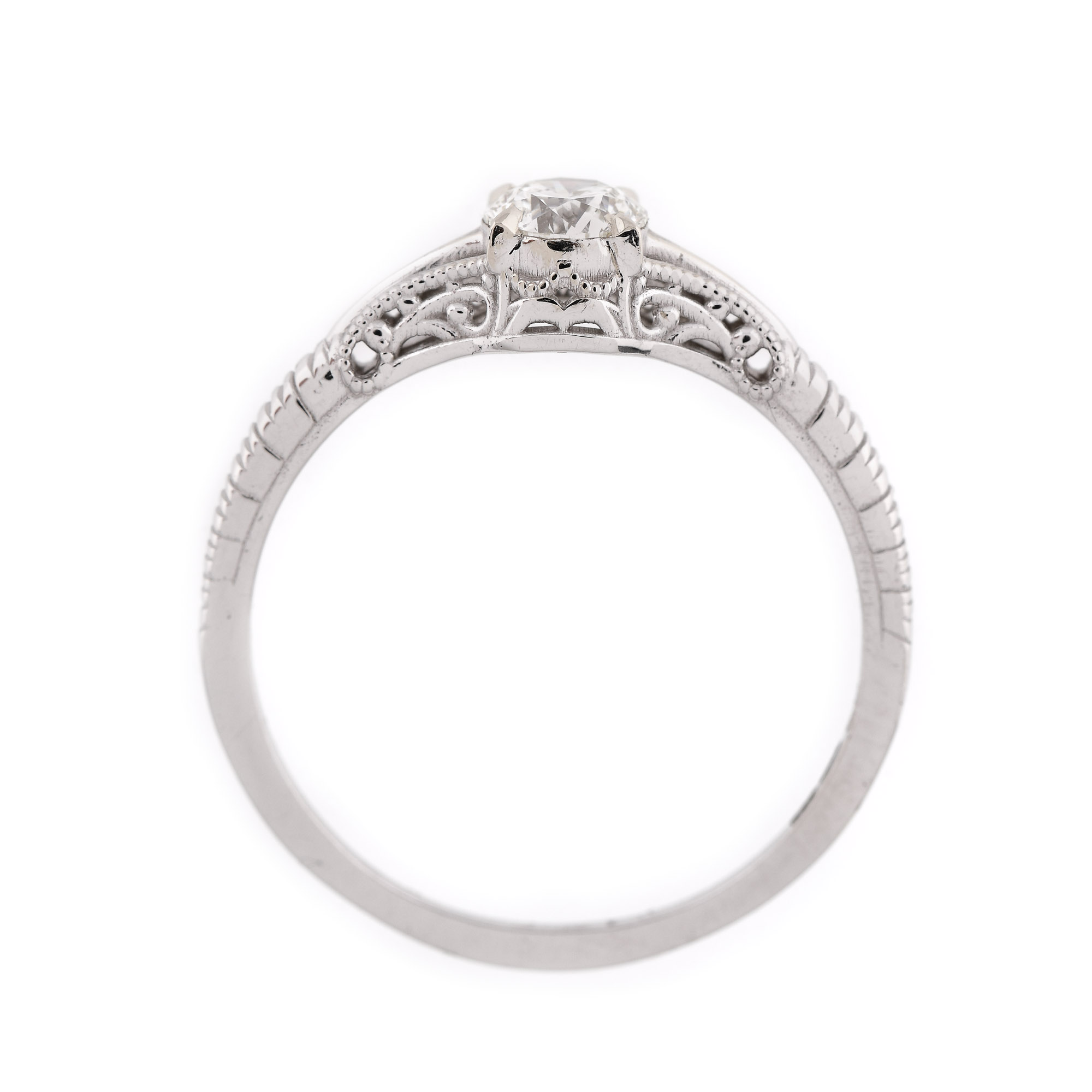 46. Inel în manieră edwardiană din aur alb, decorat cu un diamant