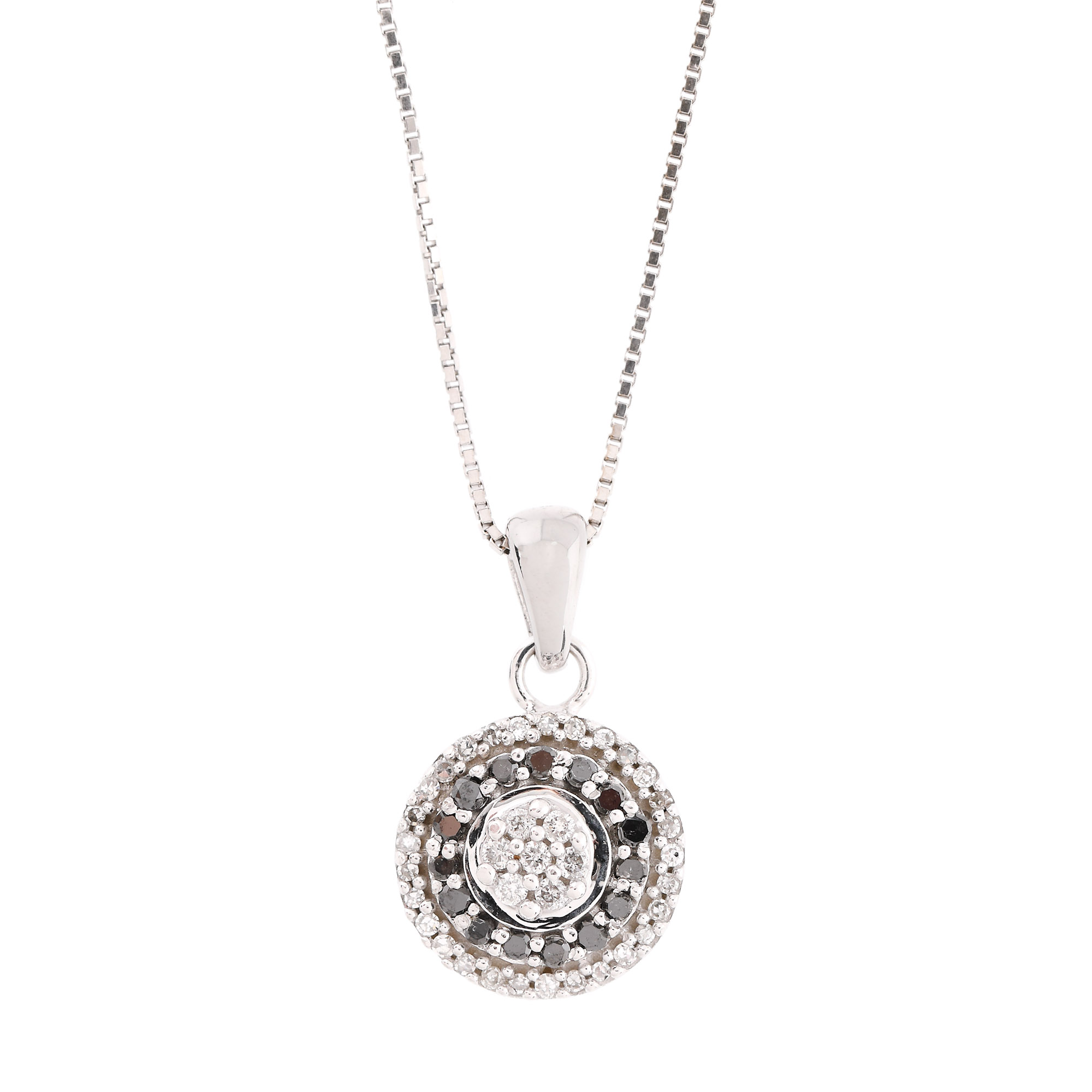 41. Lanț cu pandantiv din aur alb, decorat cu diamante albe și negre