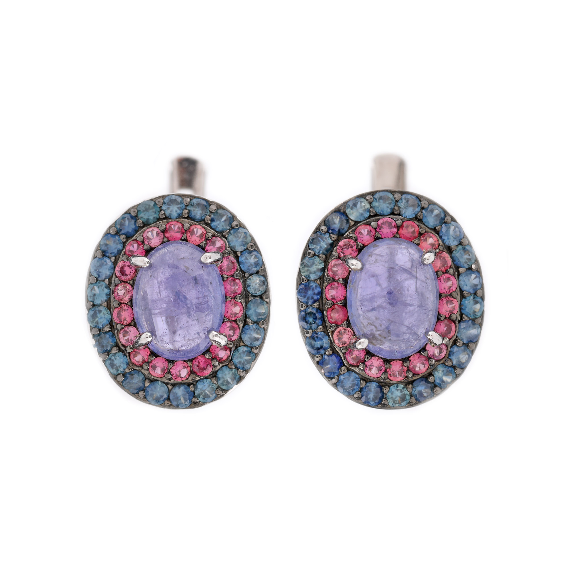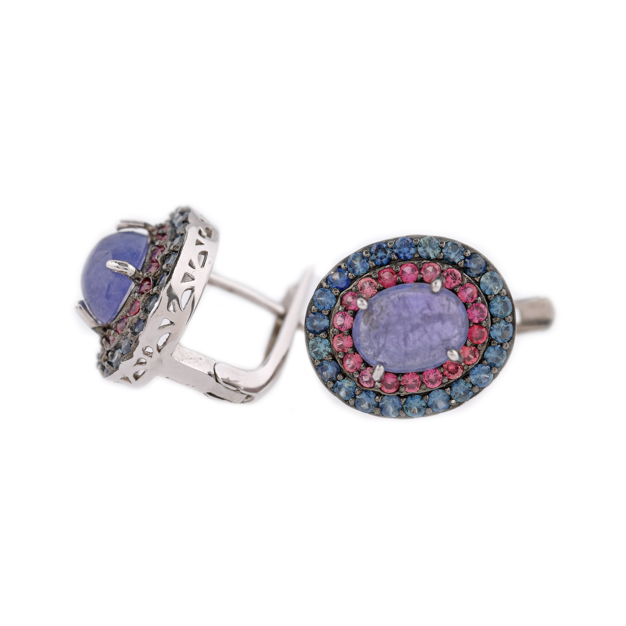 37. Pereche de cercei din argint, decorată cu tanzanite, rubine și safire