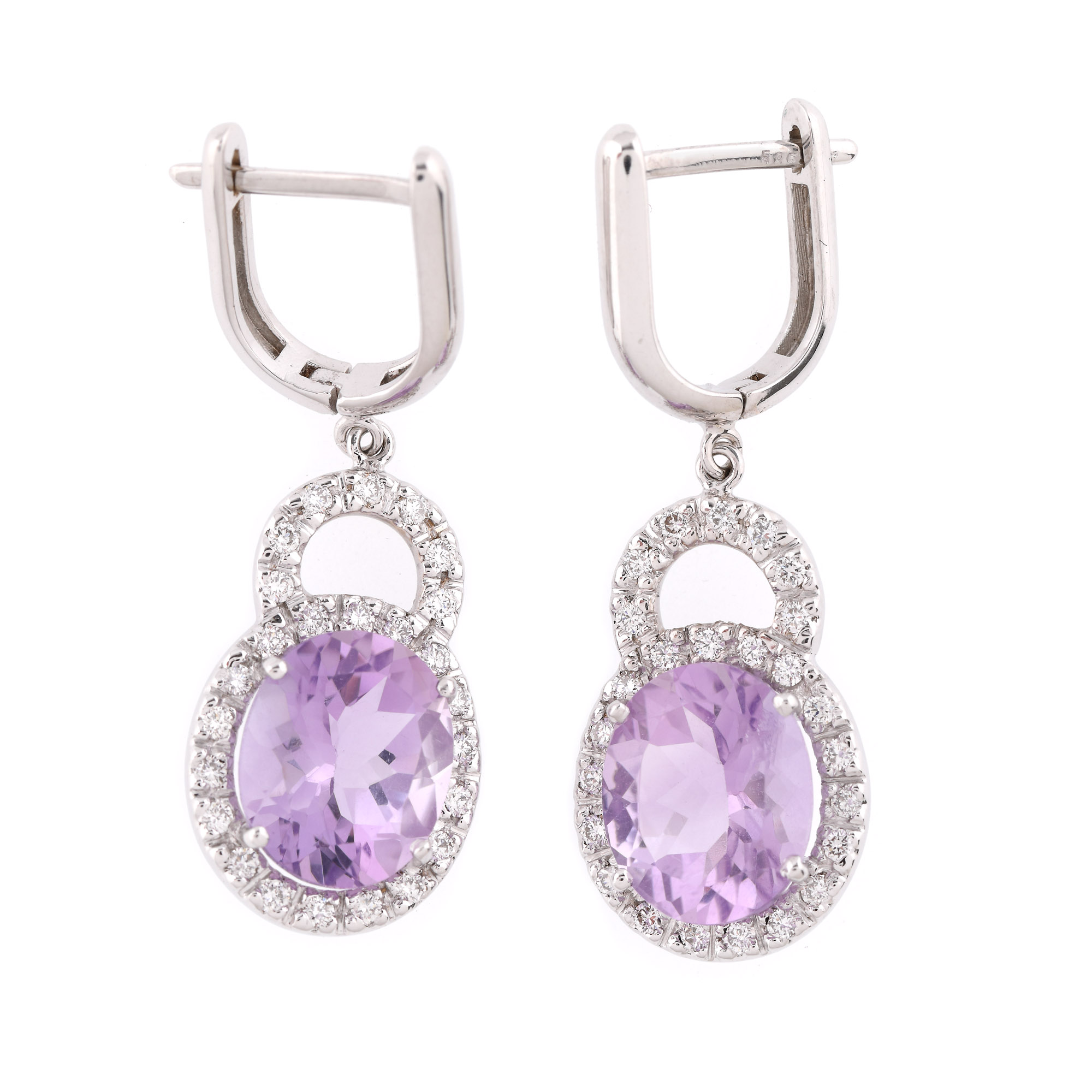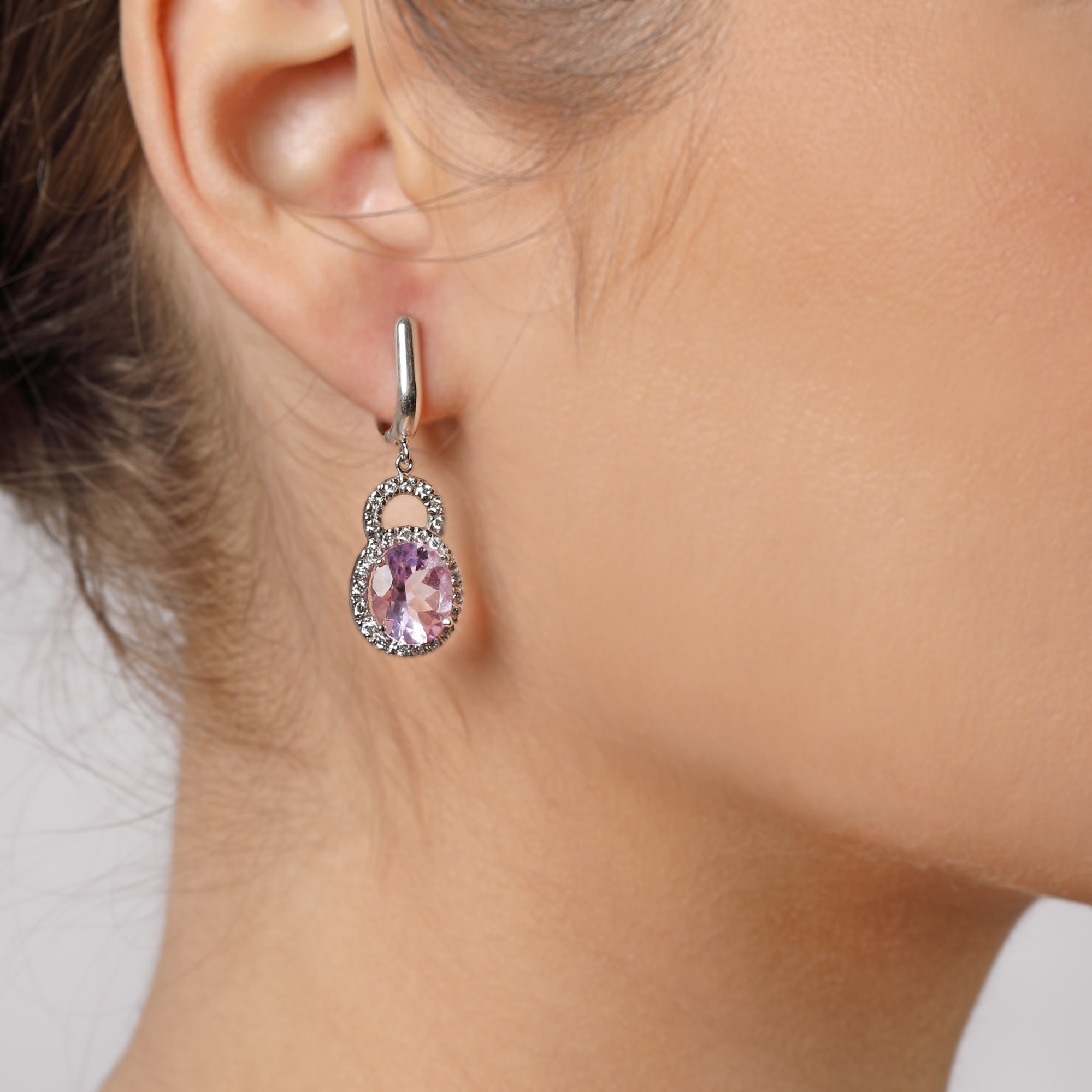 6. Pereche de cercei din aur alb, decorată cu ametiste și diamante